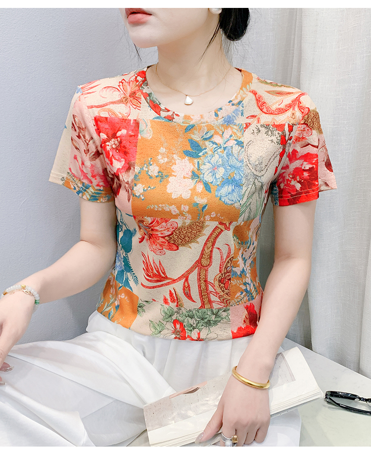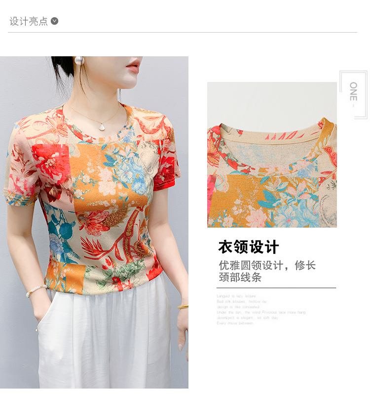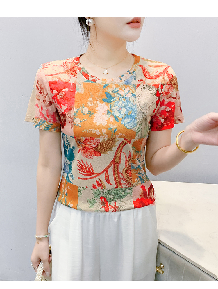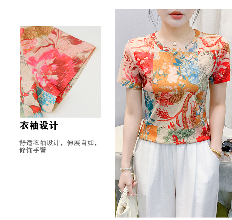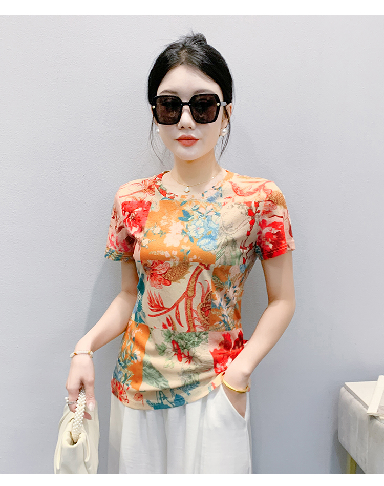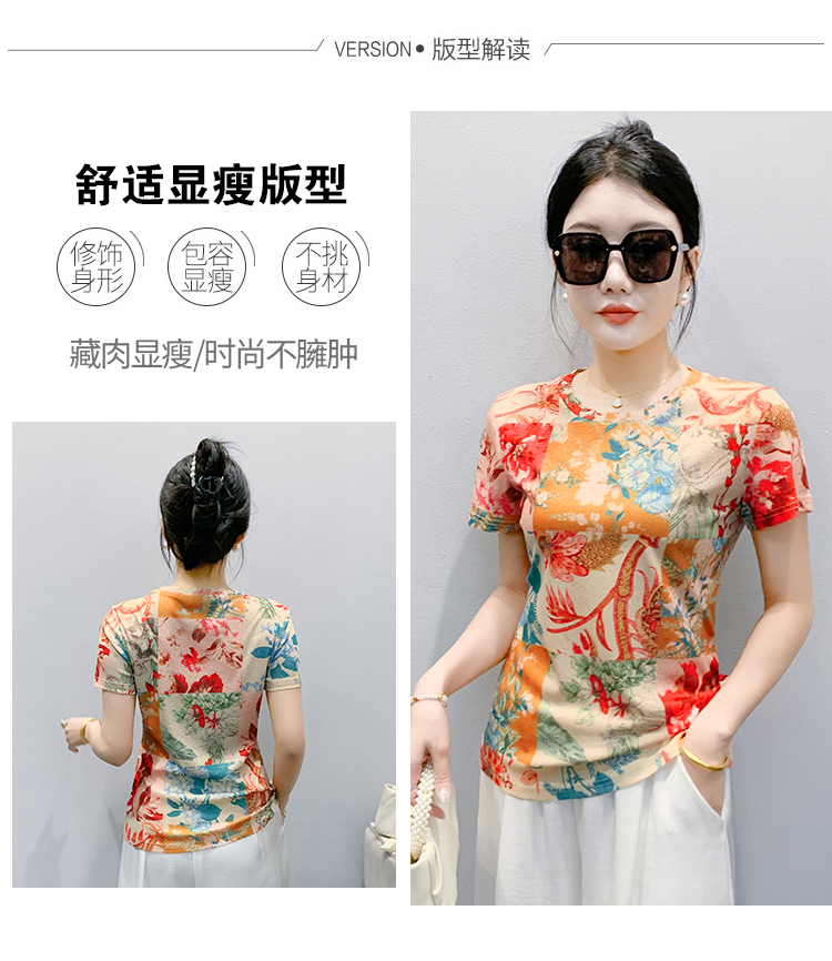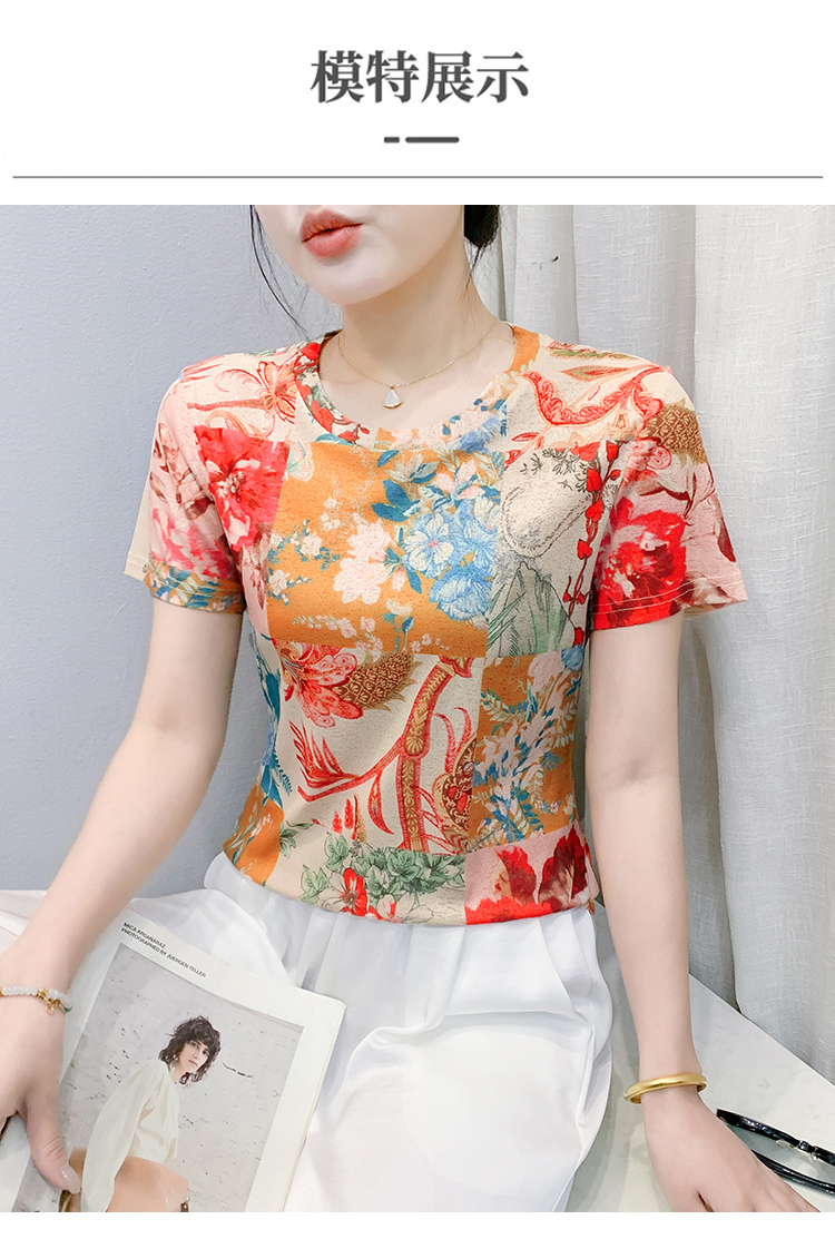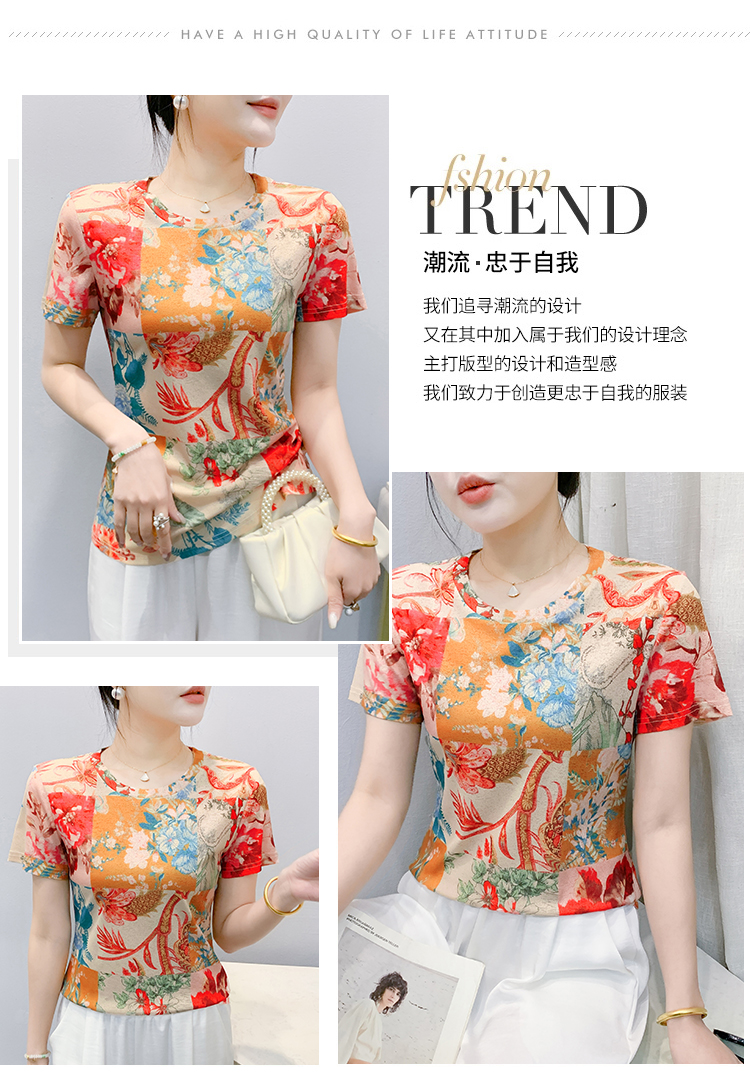 MY17504# 新款时尚定位印花短袖T恤打底衫修身上衣女女裝貨源服裝批發