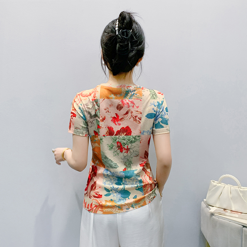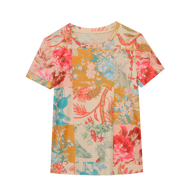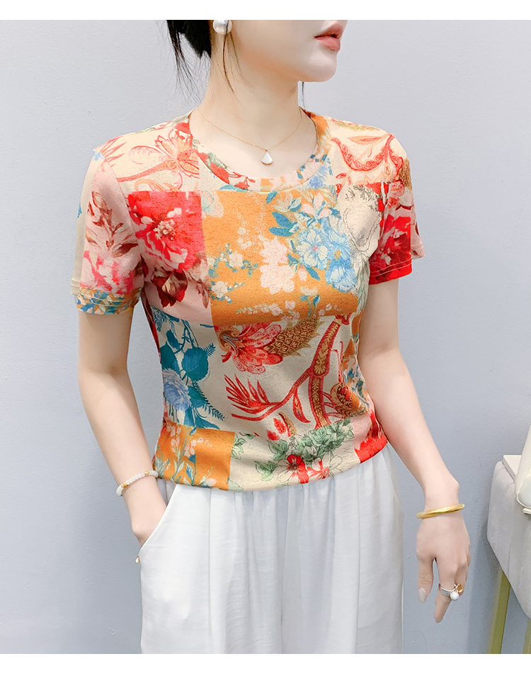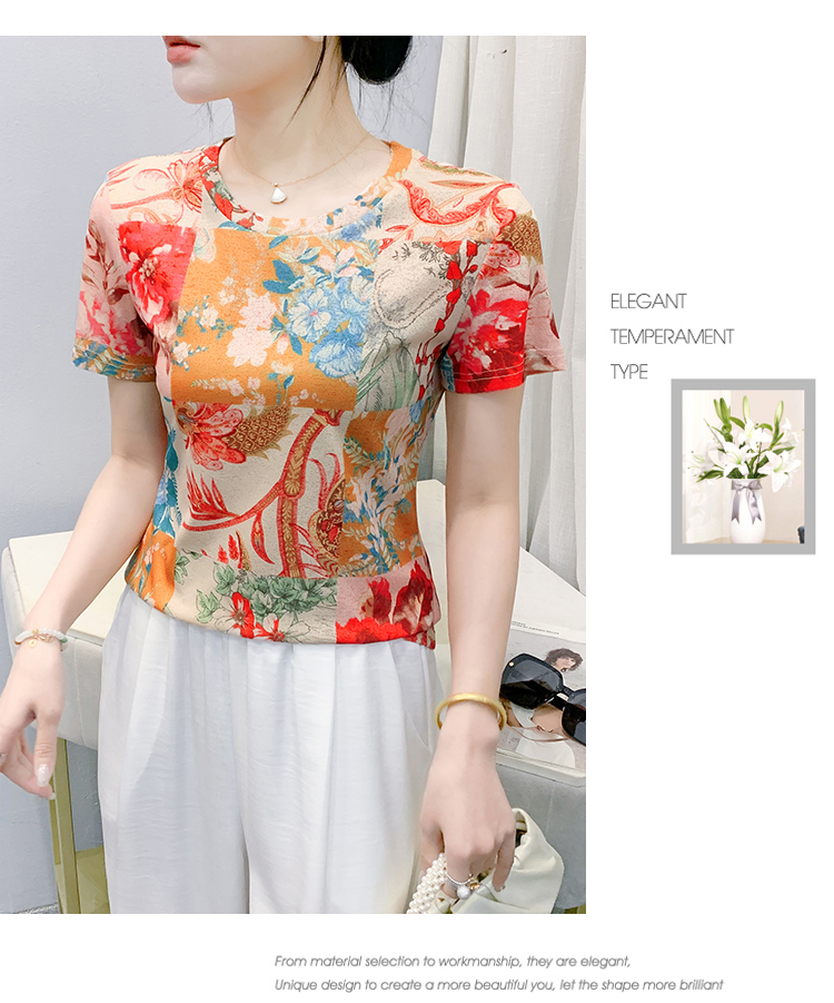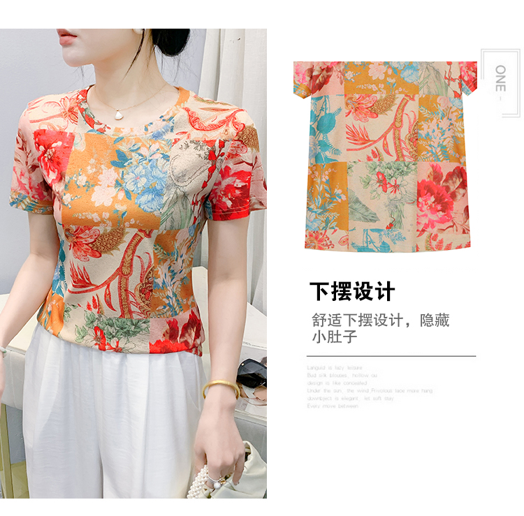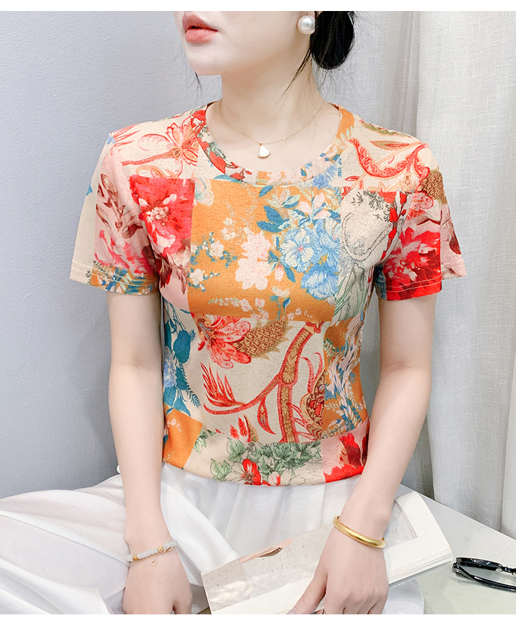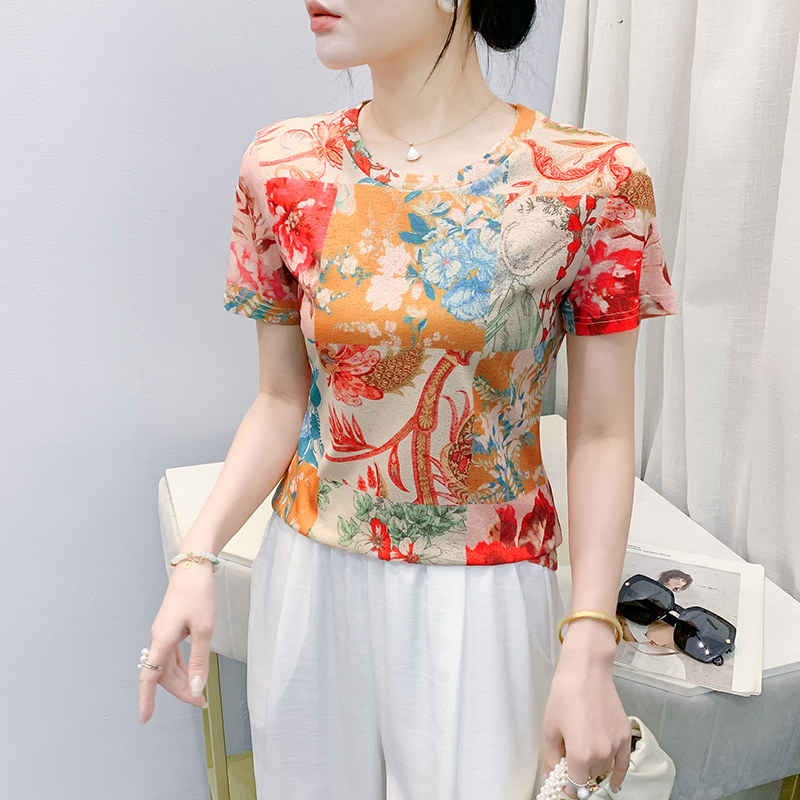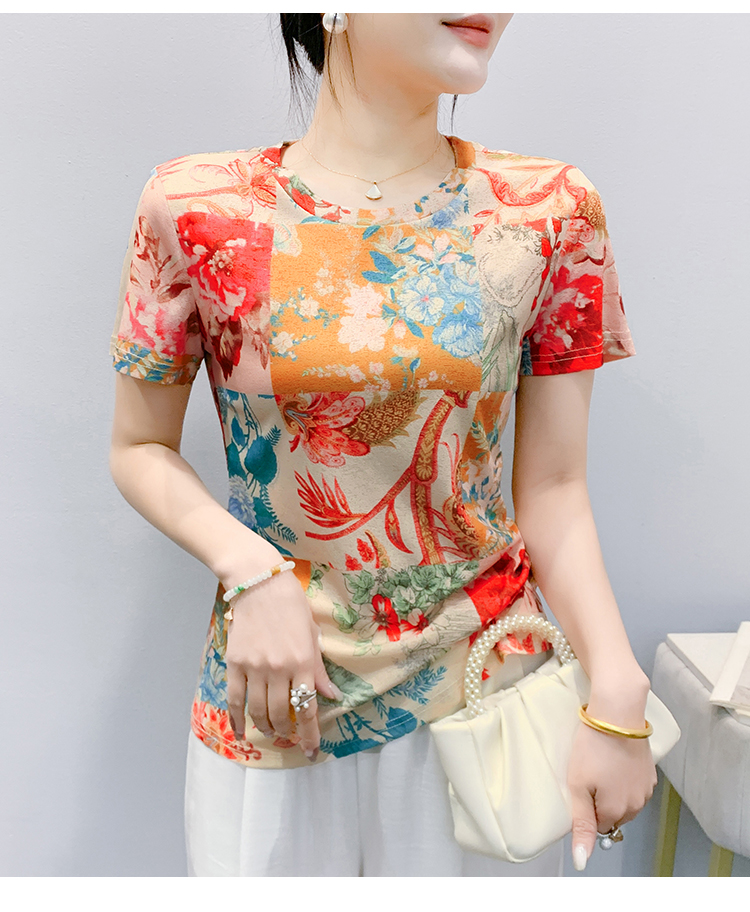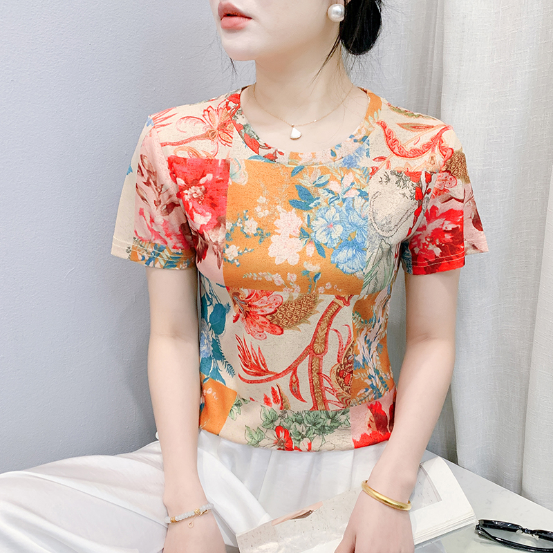 MY17504# 新款时尚定位印花短袖T恤打底衫修身上衣女女裝貨源服裝批發