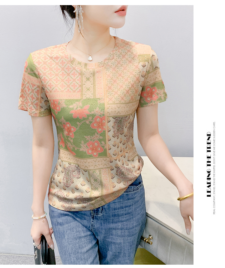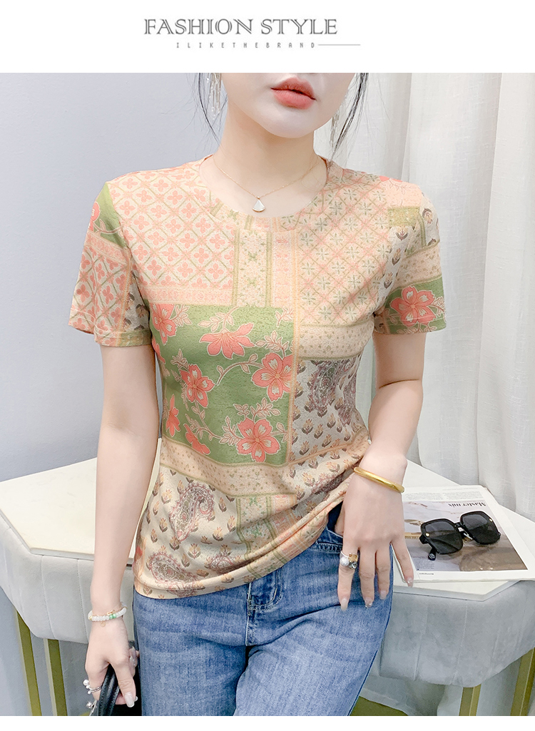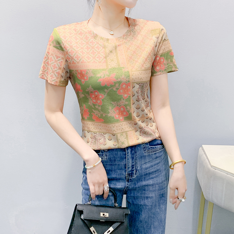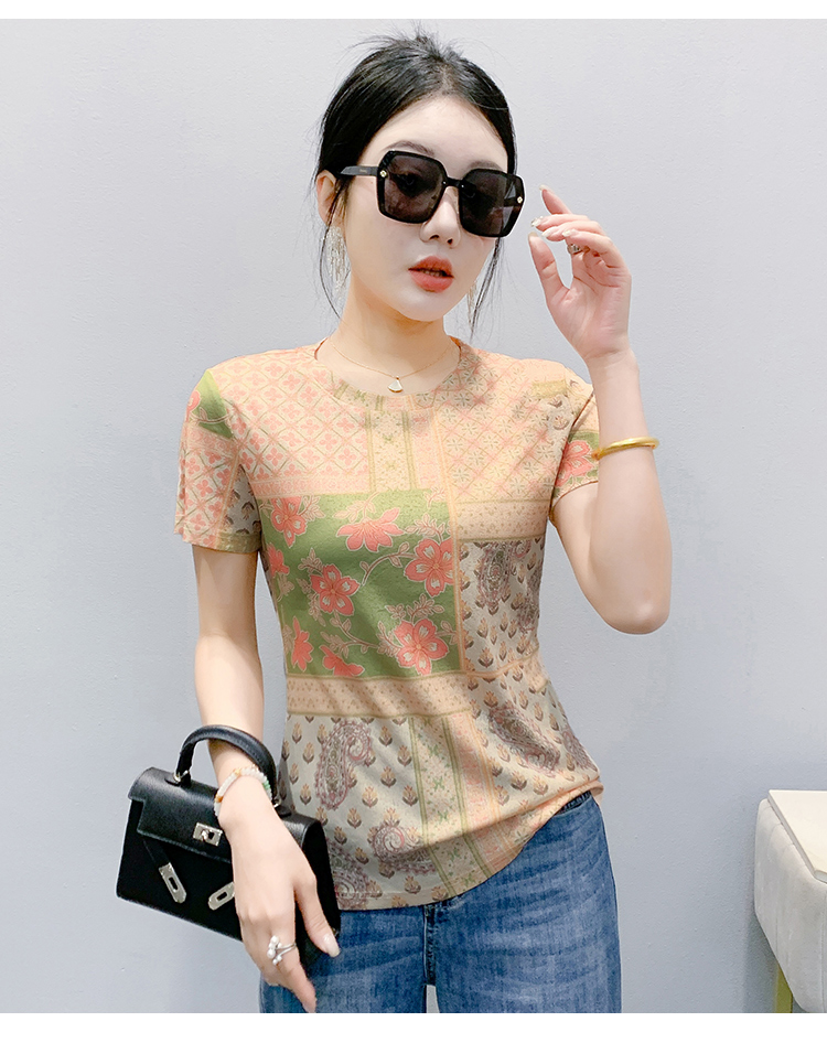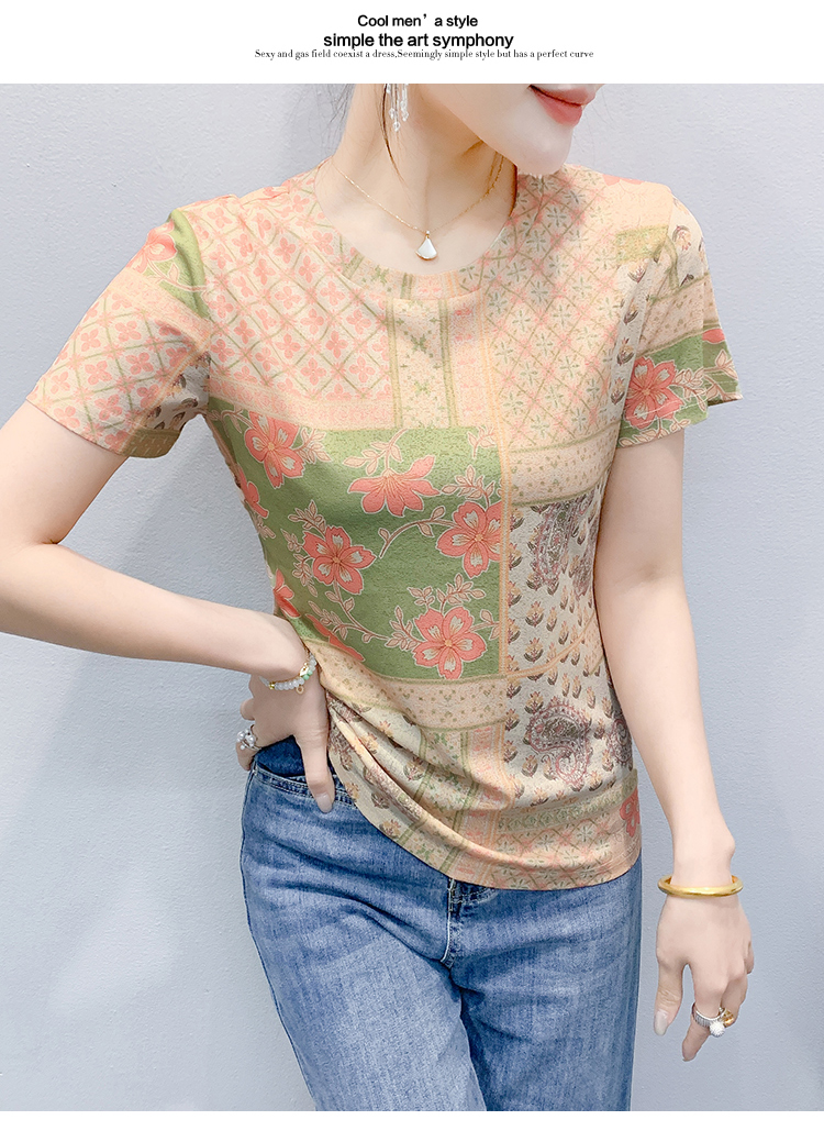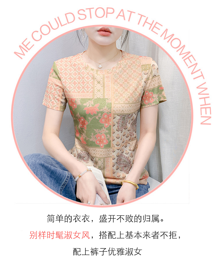 MY17505# 新款时尚定位印花短袖T恤打底衫修身上衣女女裝貨源服裝批發