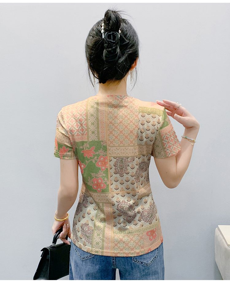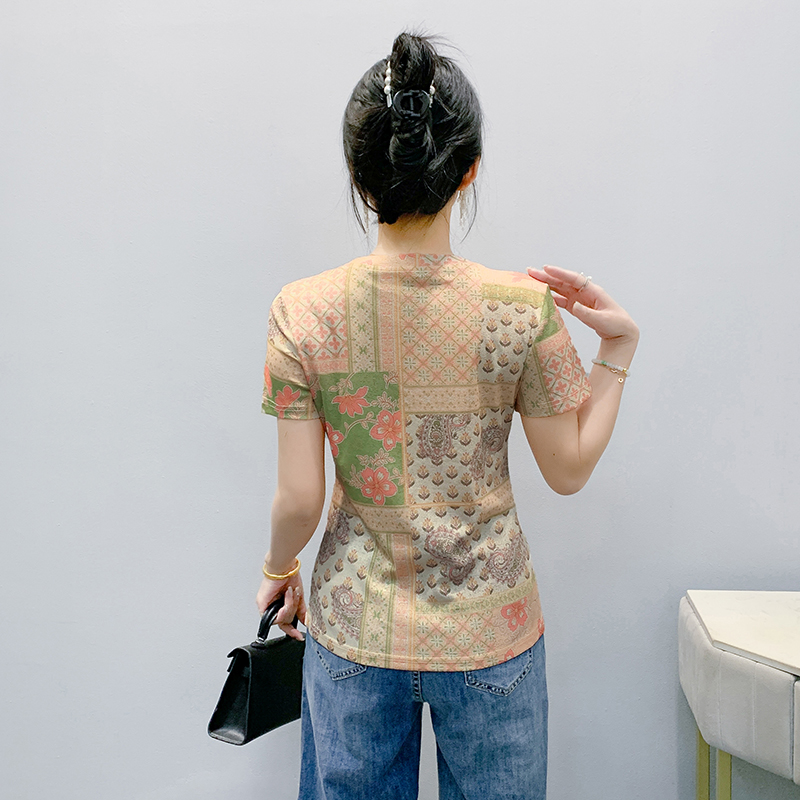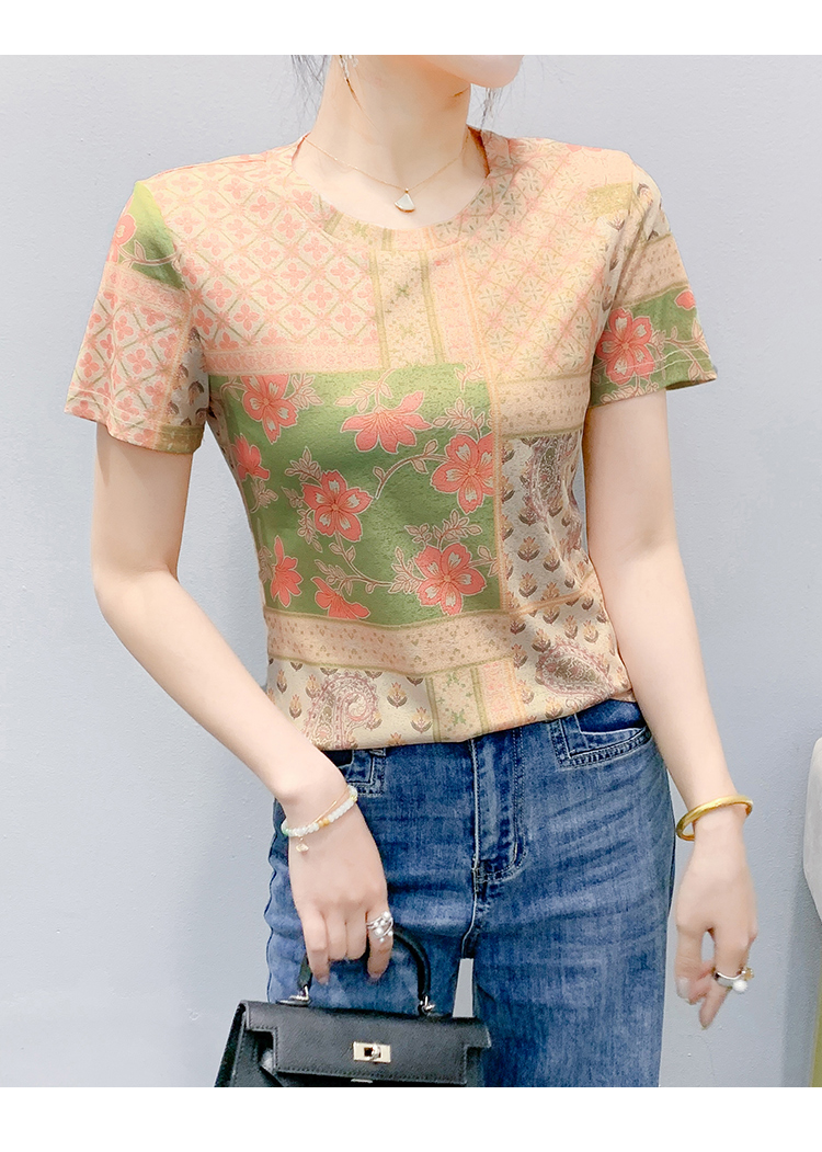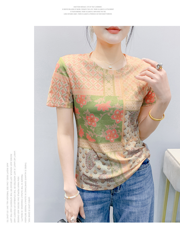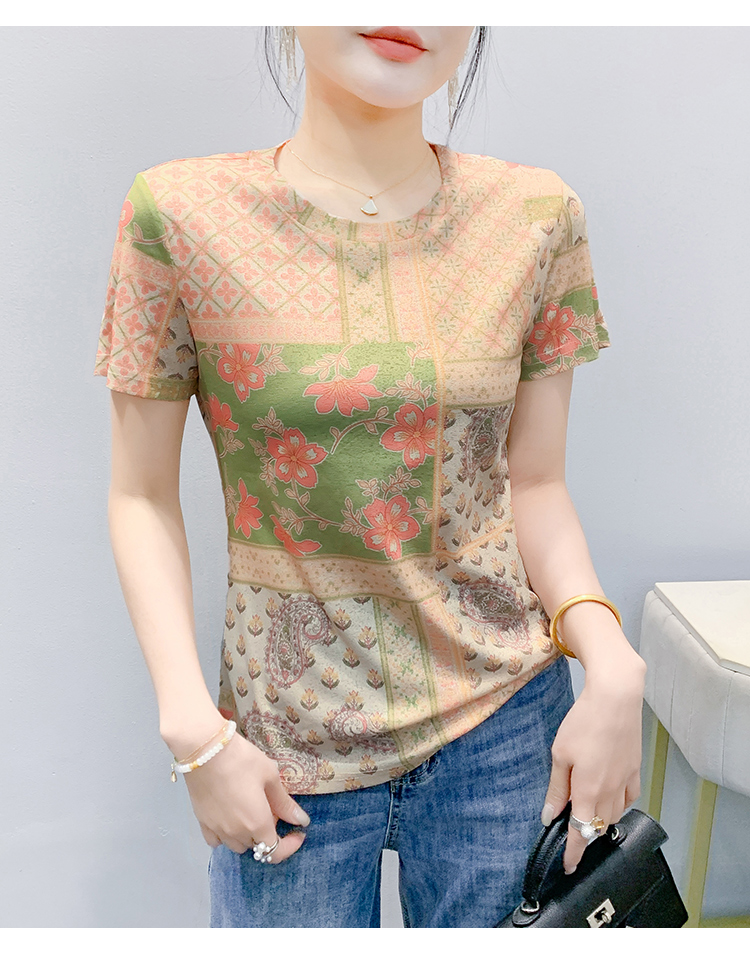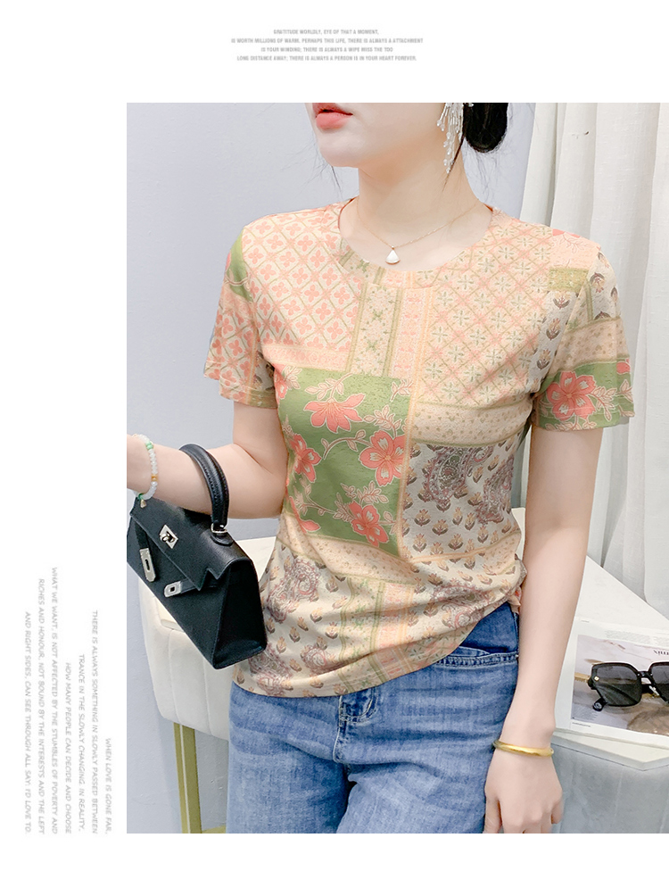 MY17505# 新款时尚定位印花短袖T恤打底衫修身上衣女女裝貨源服裝批發