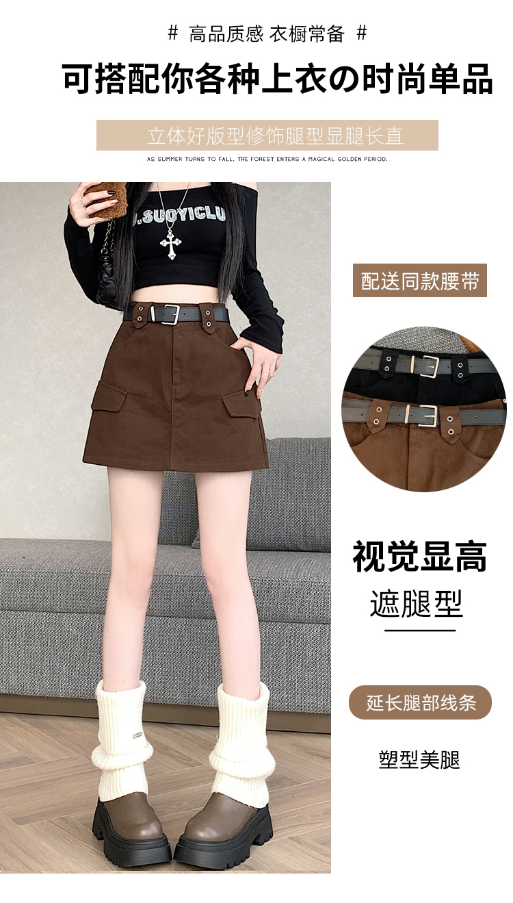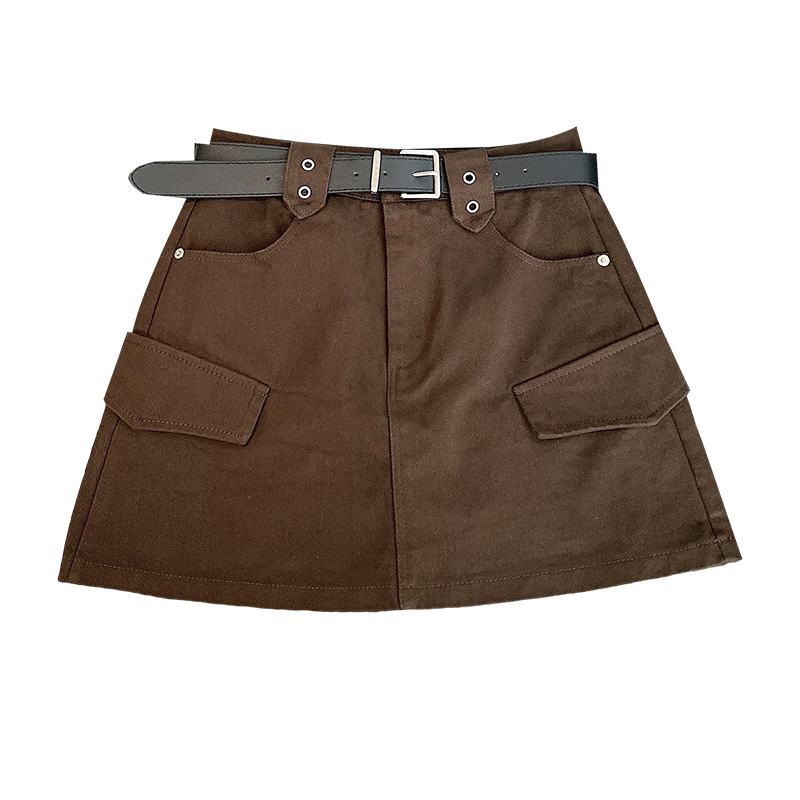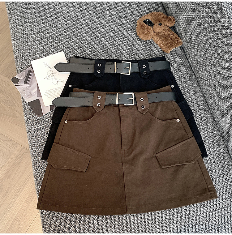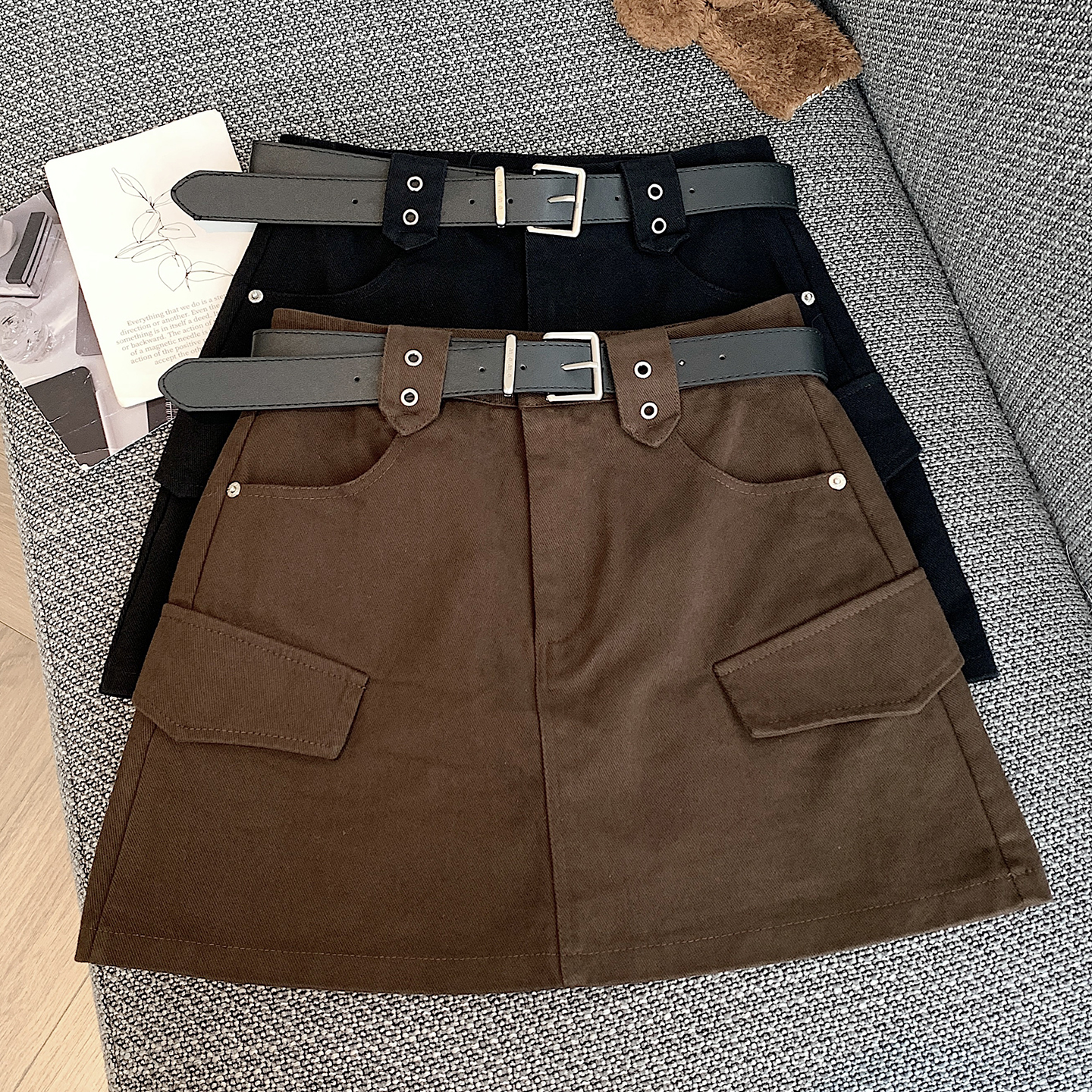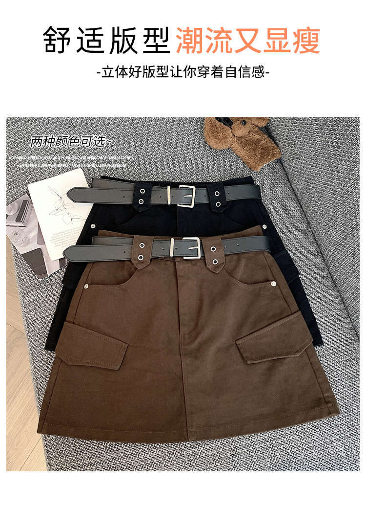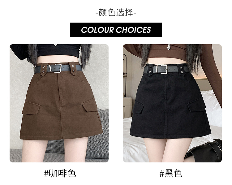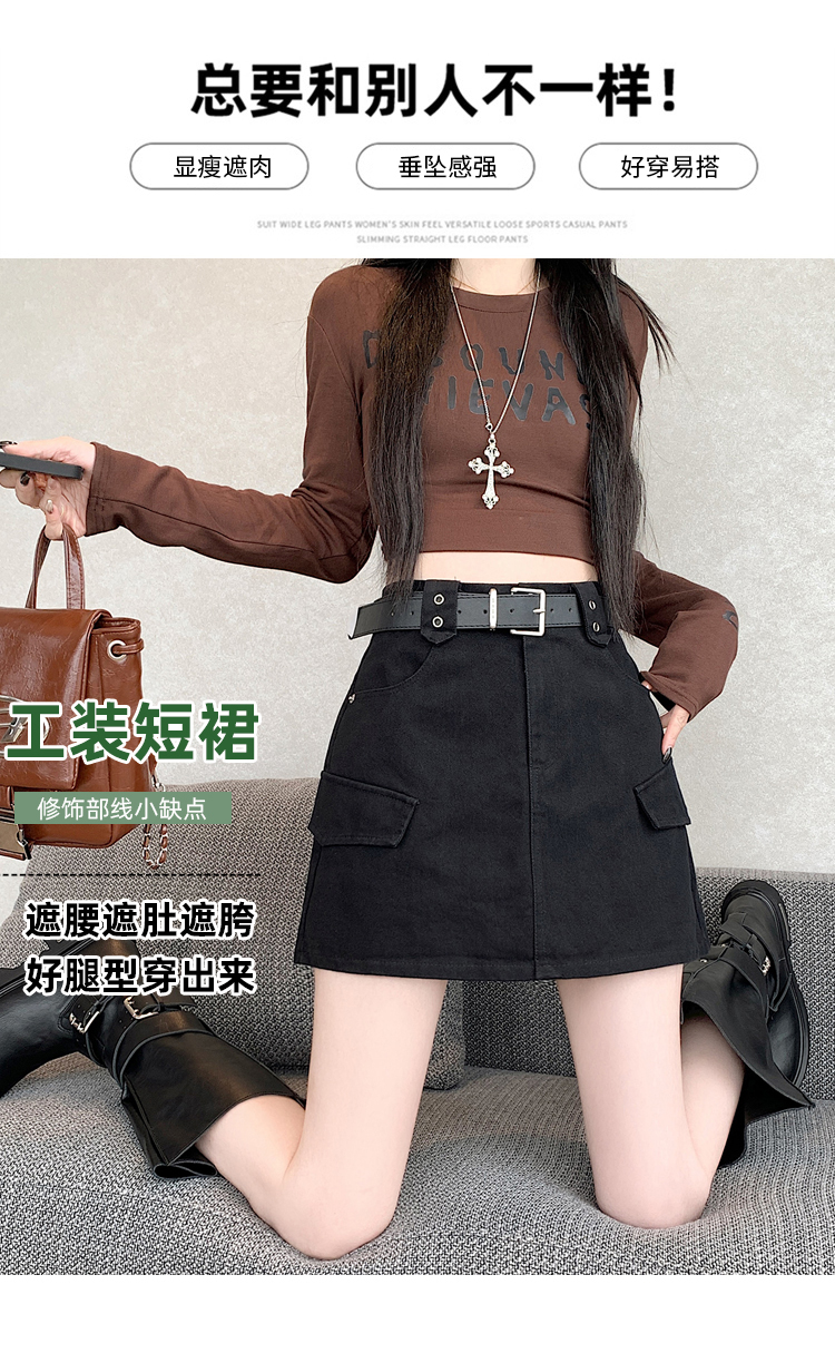 MY17508# 甜酷辣妹防走光洗水工装a字半身包臀短裙 配腰带女裝貨源服裝批發