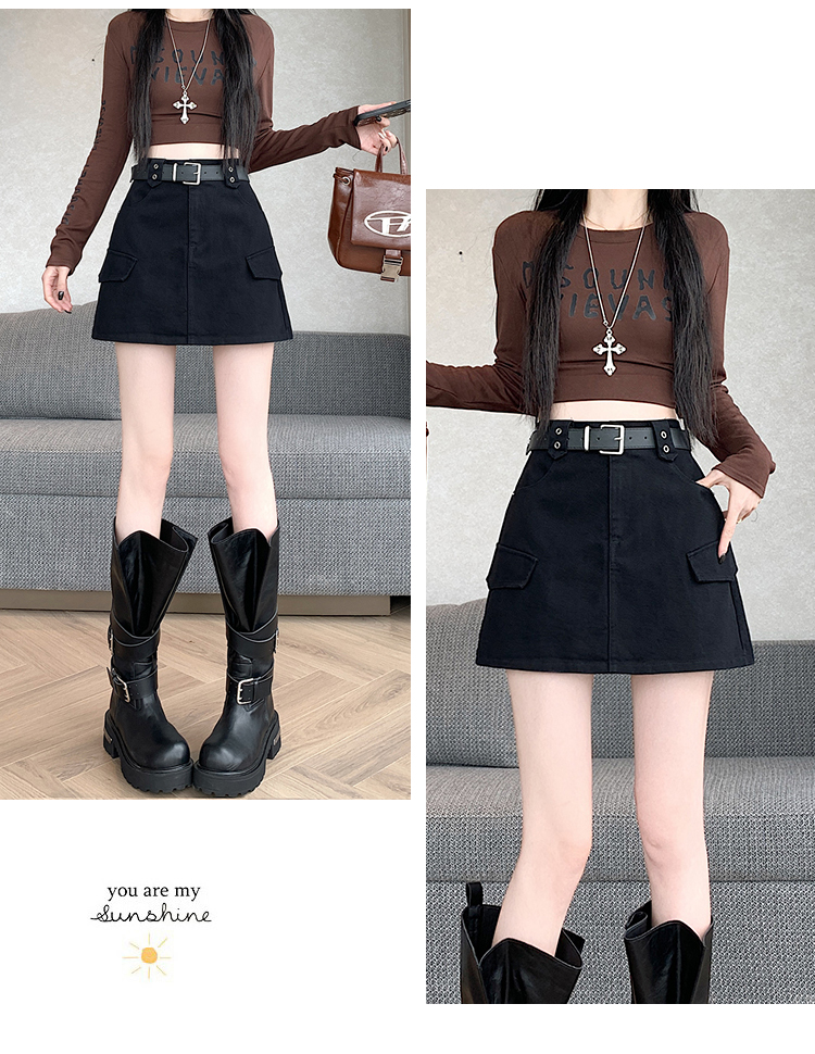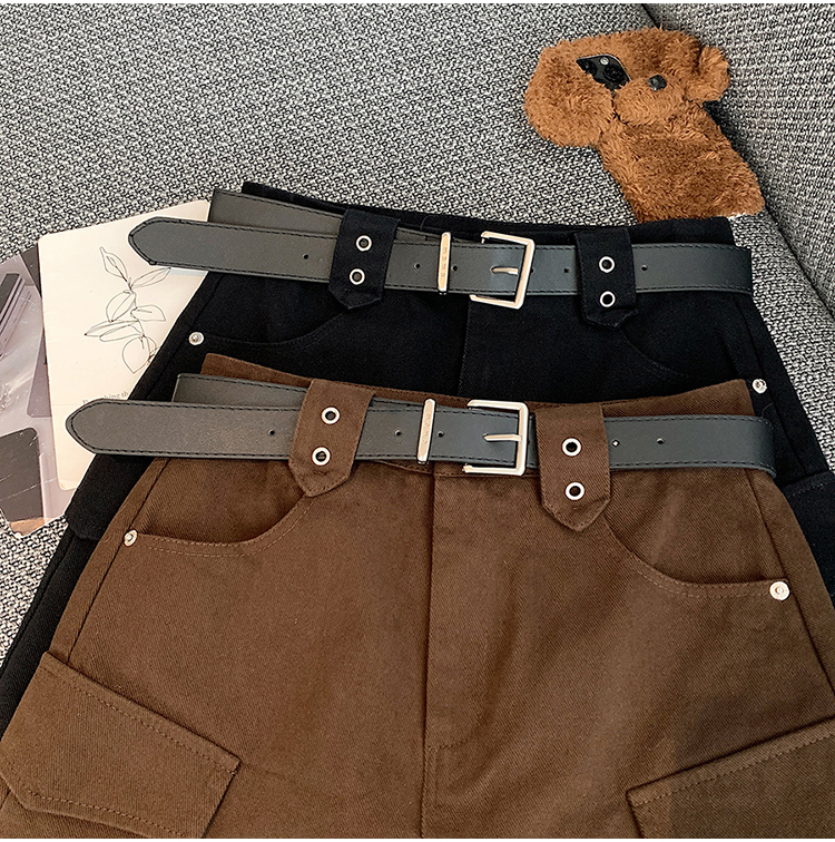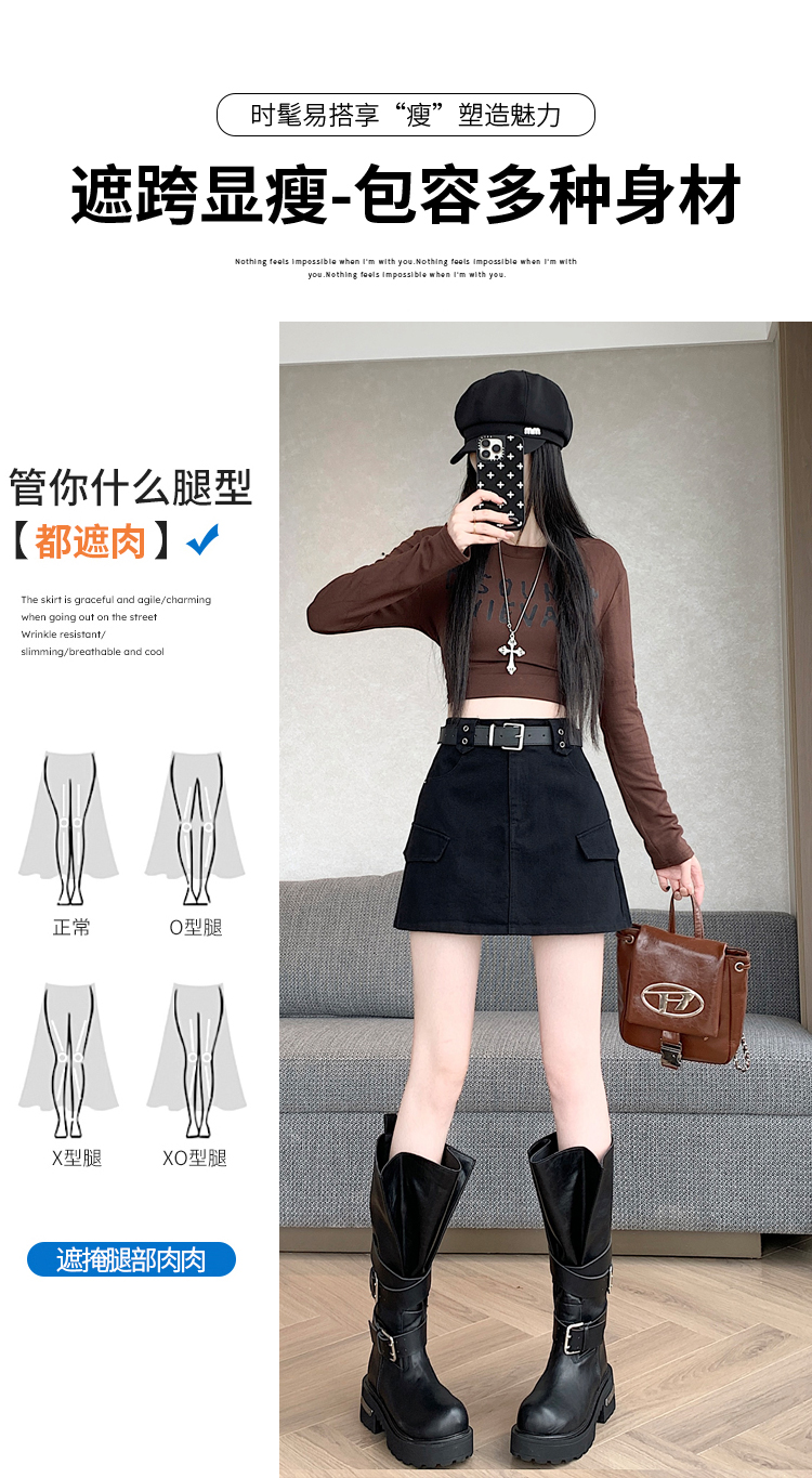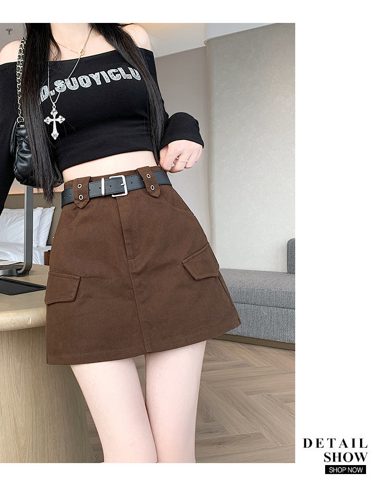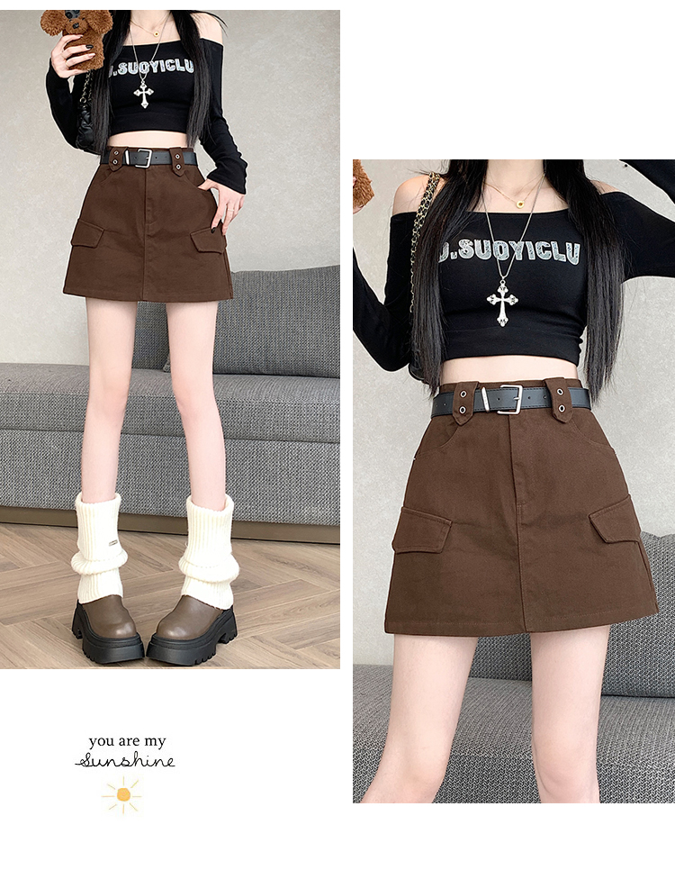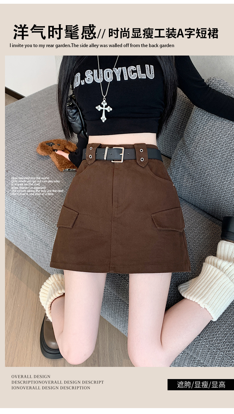 MY17508# 甜酷辣妹防走光洗水工装a字半身包臀短裙 配腰带女裝貨源服裝批發