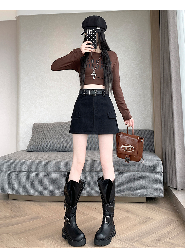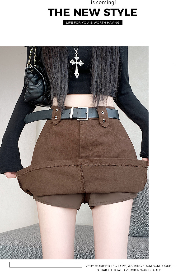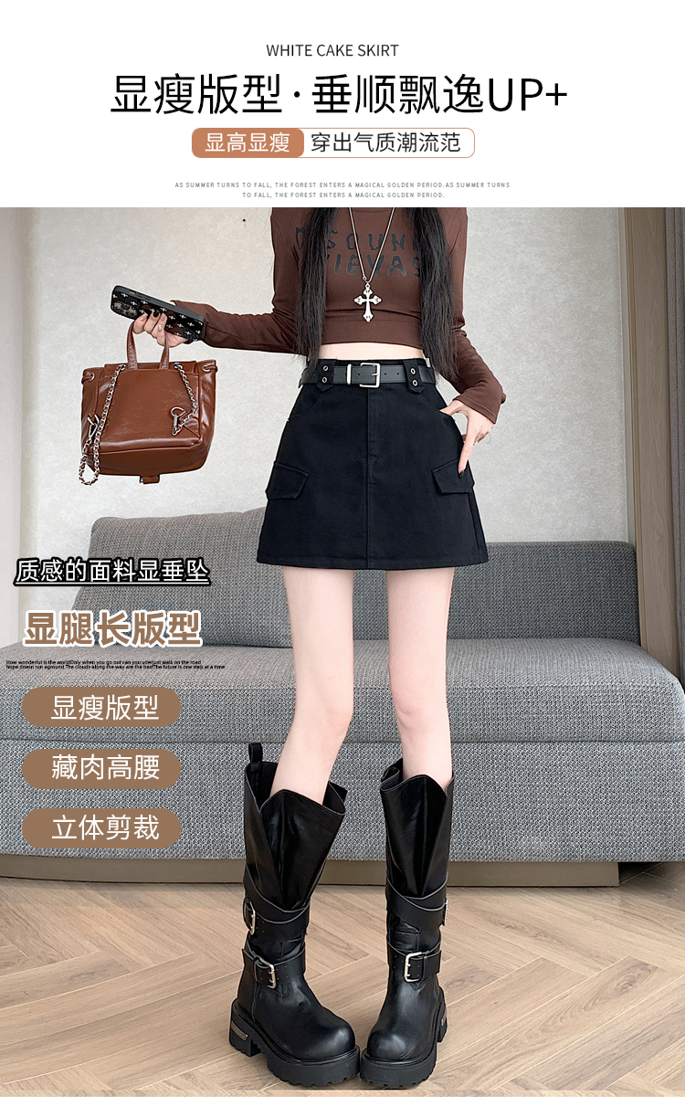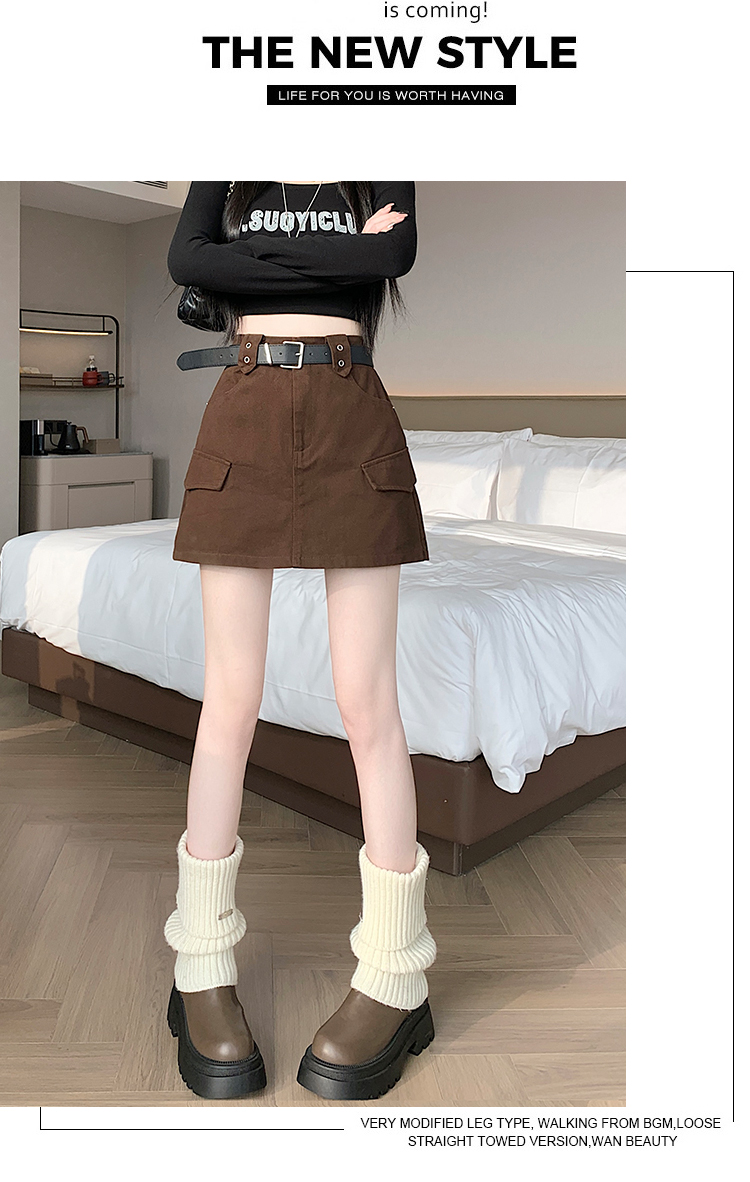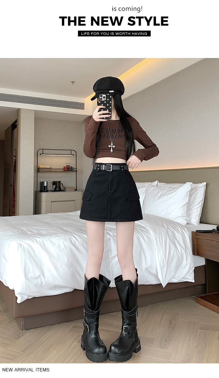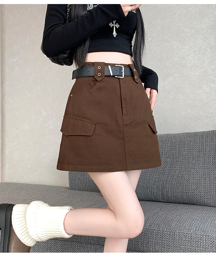 MY17508# 甜酷辣妹防走光洗水工装a字半身包臀短裙 配腰带女裝貨源服裝批發
