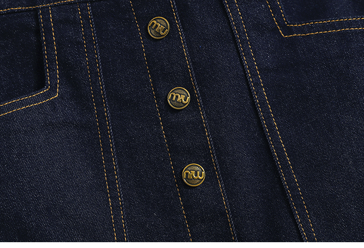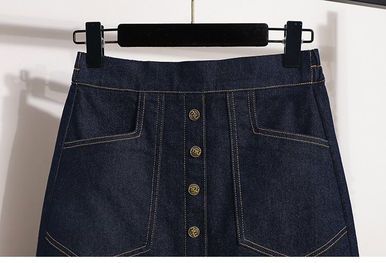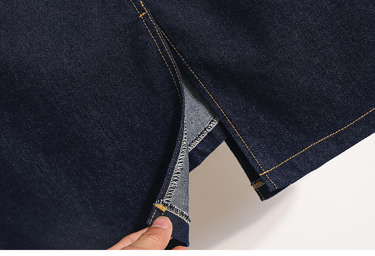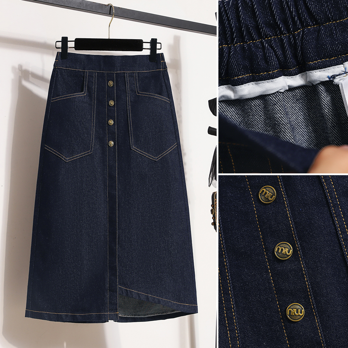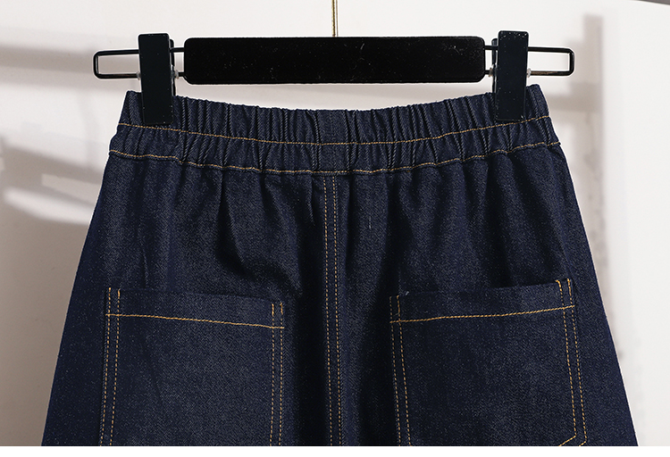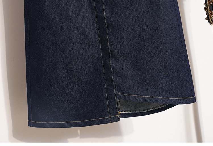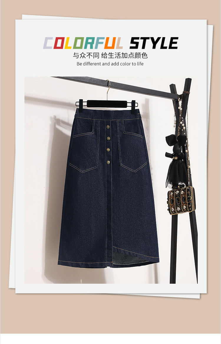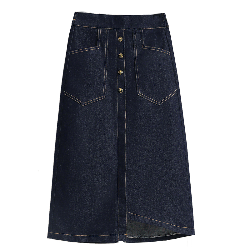 MY17509# 大码深蓝色弹力牛仔半身裙女胖MM中长款高腰A字开叉裙子女裝貨源服裝批發