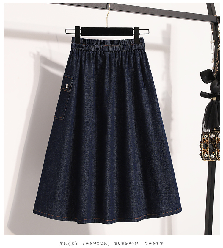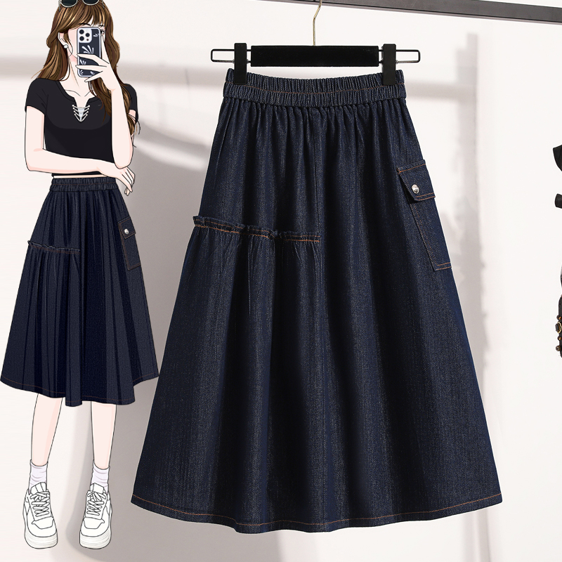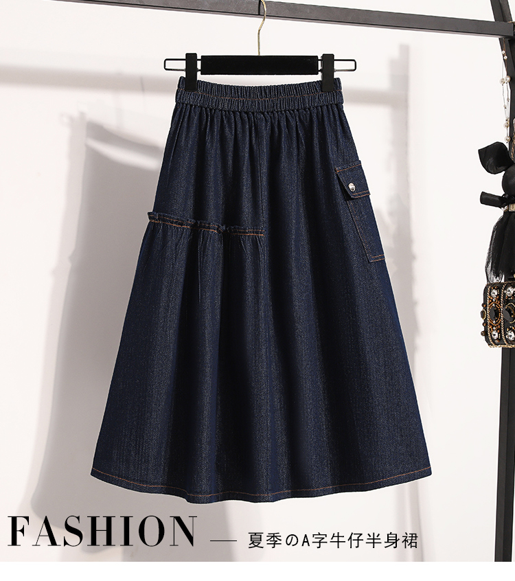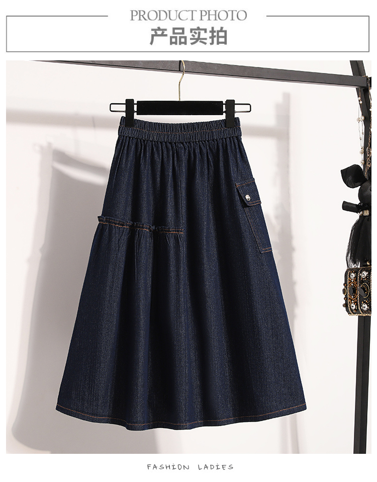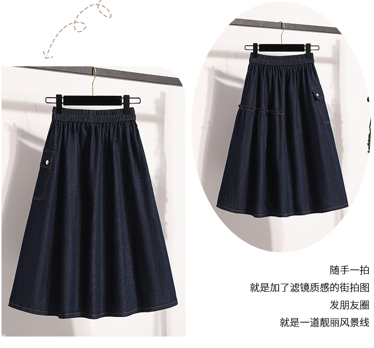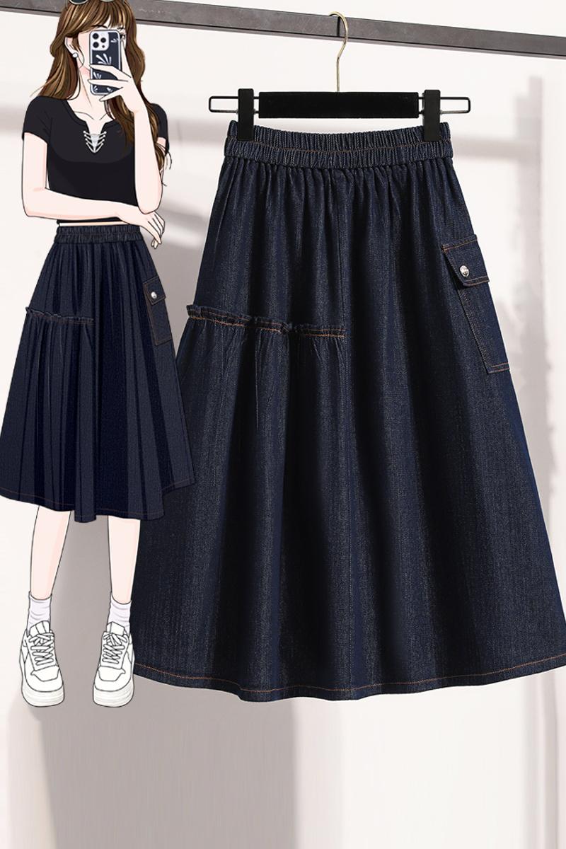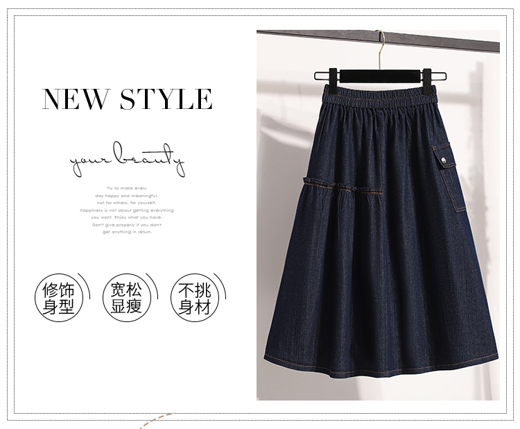 MY17525# 新款大码宽松A字中长款牛仔裙胖MM显瘦弹力大摆裙半身裙女裝貨源服裝批發