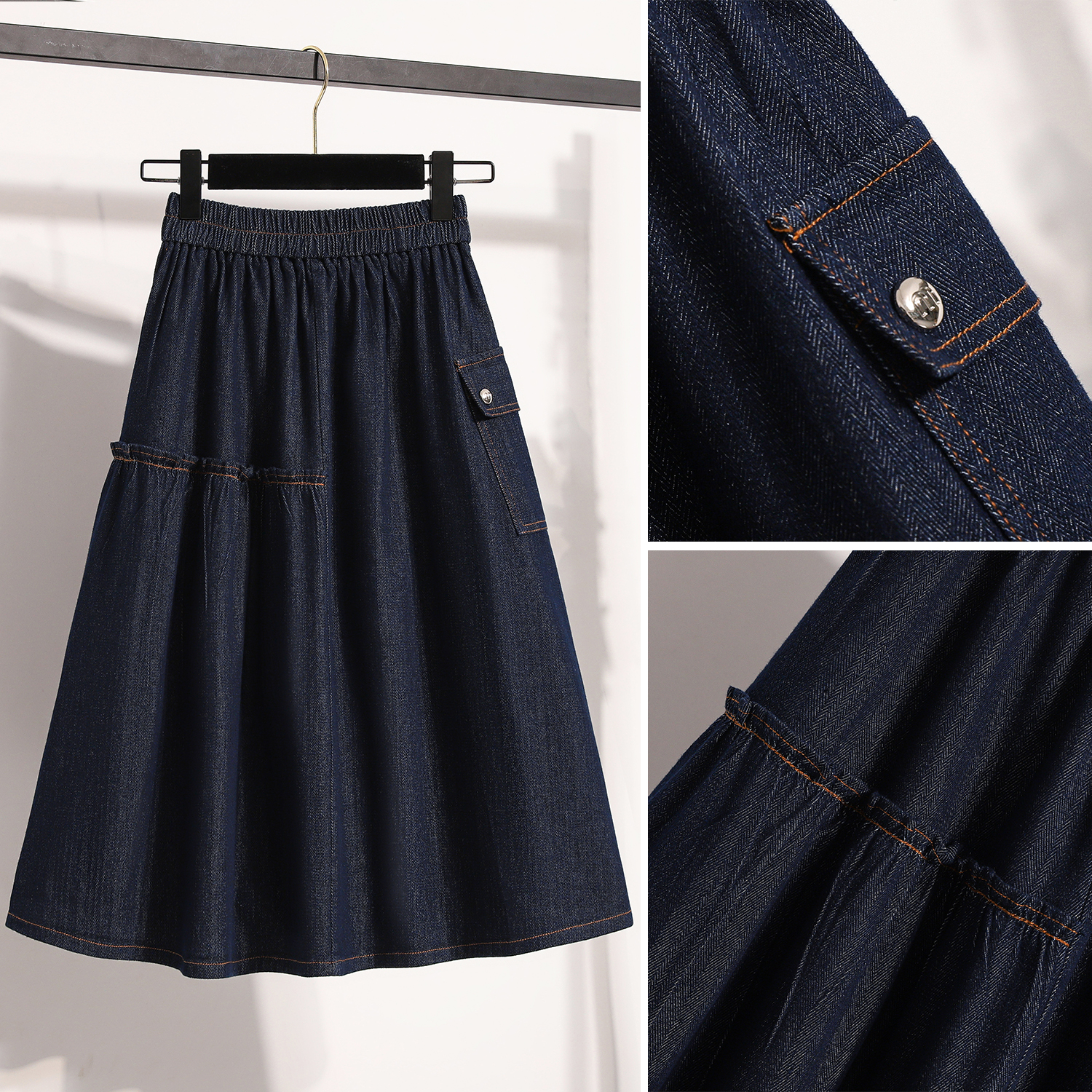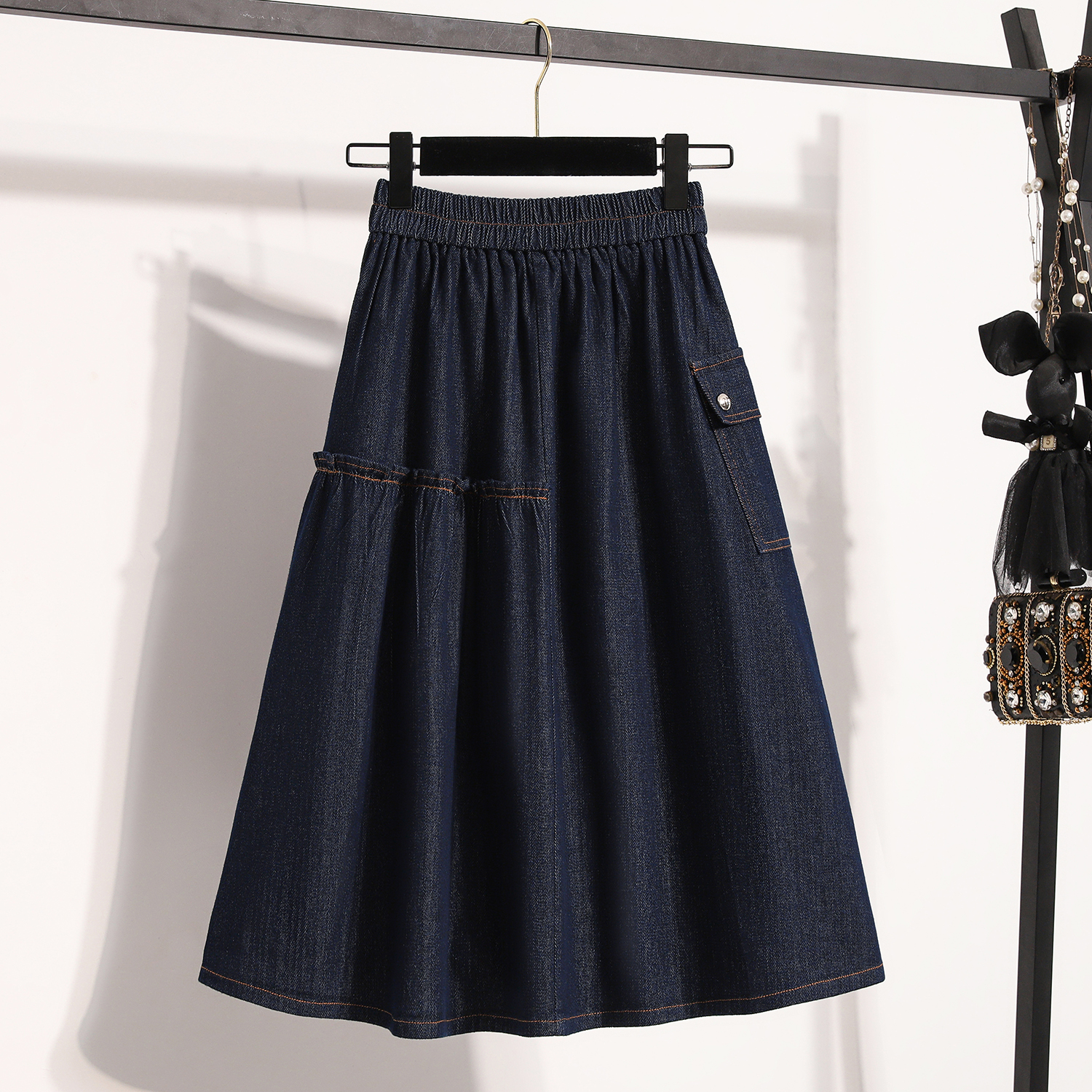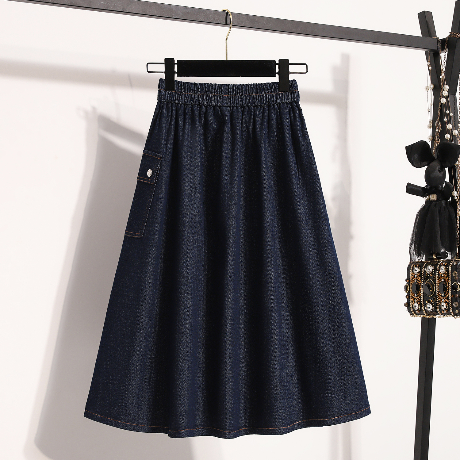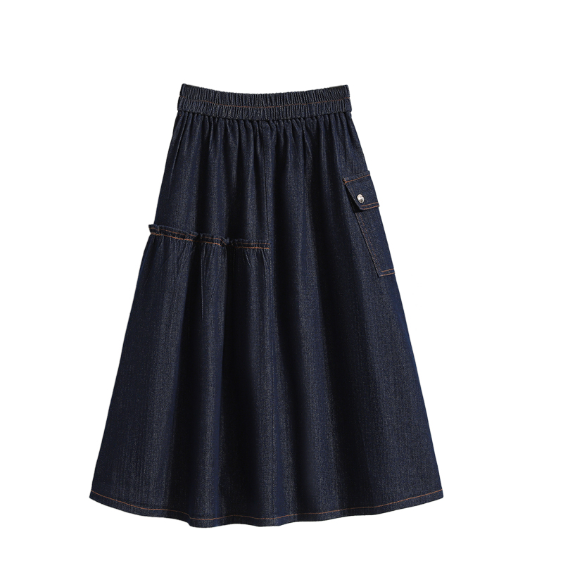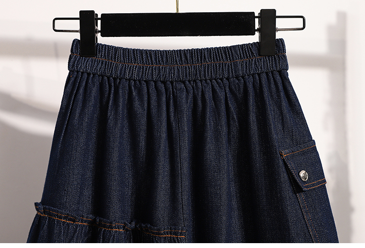 MY17525# 新款大码宽松A字中长款牛仔裙胖MM显瘦弹力大摆裙半身裙女裝貨源服裝批發