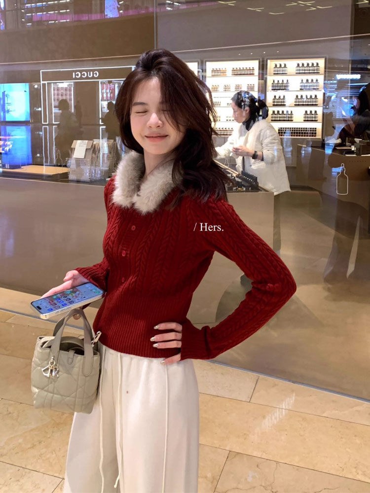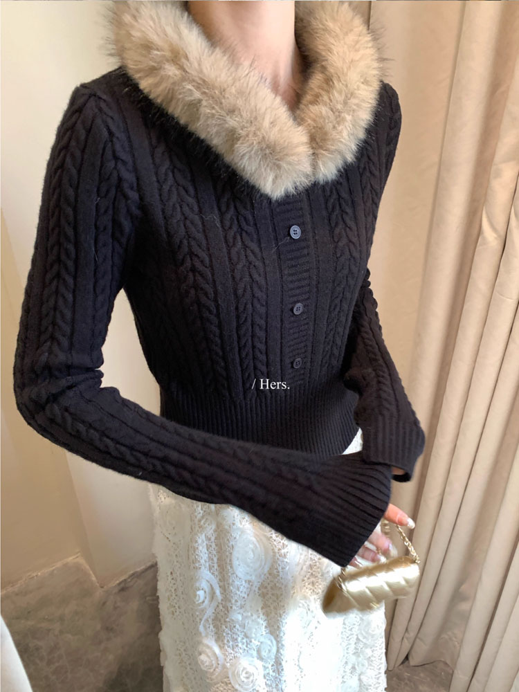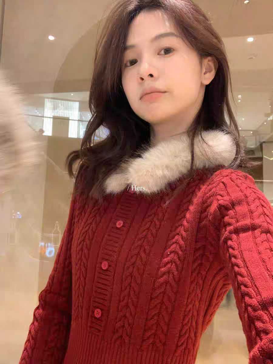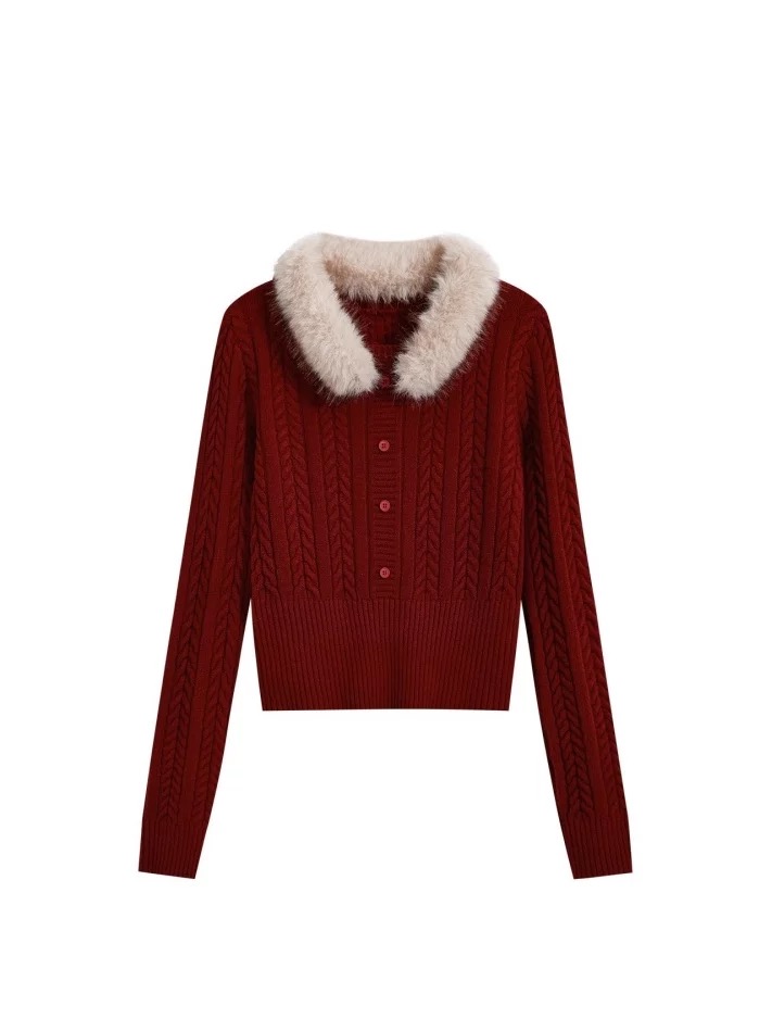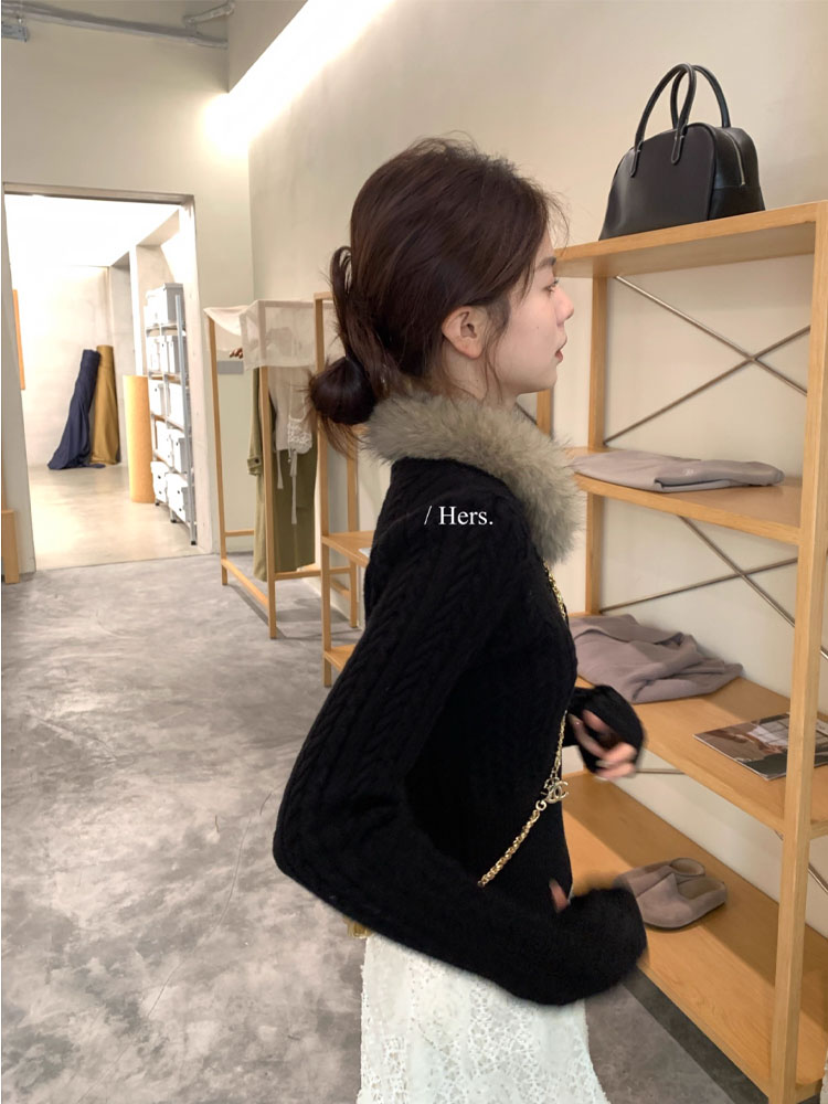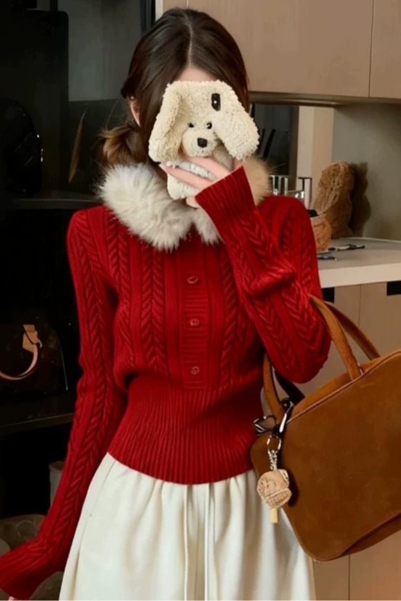 MY17533# 韩系简约气质百搭显瘦针织衫女可拆卸毛领麻花保暖毛衣女裝貨源服裝批發