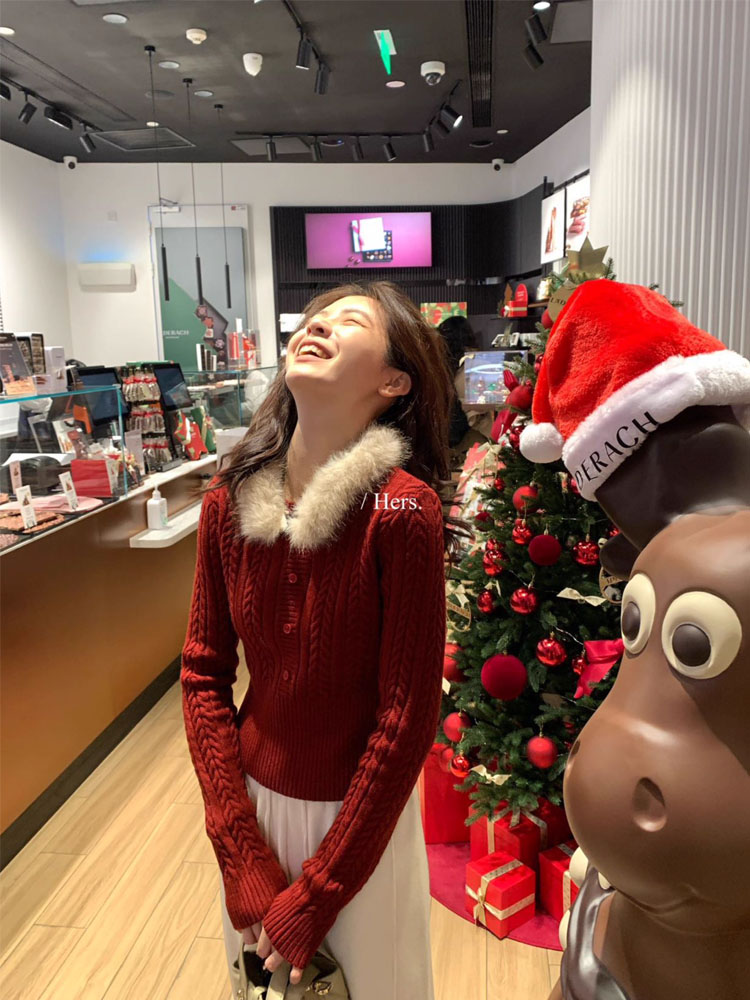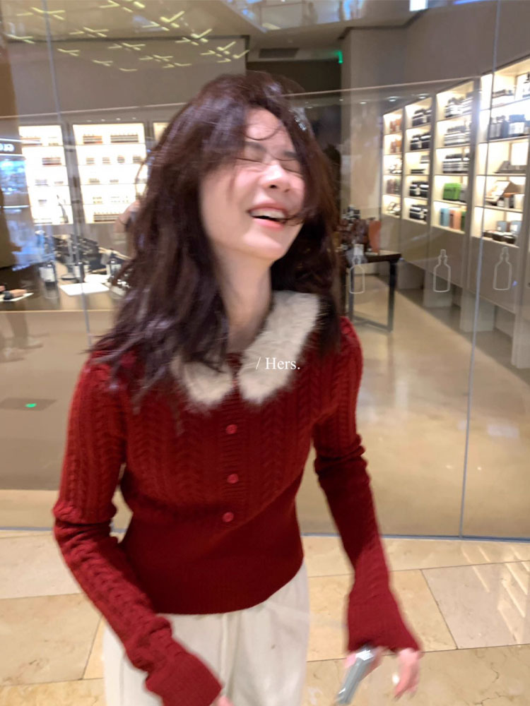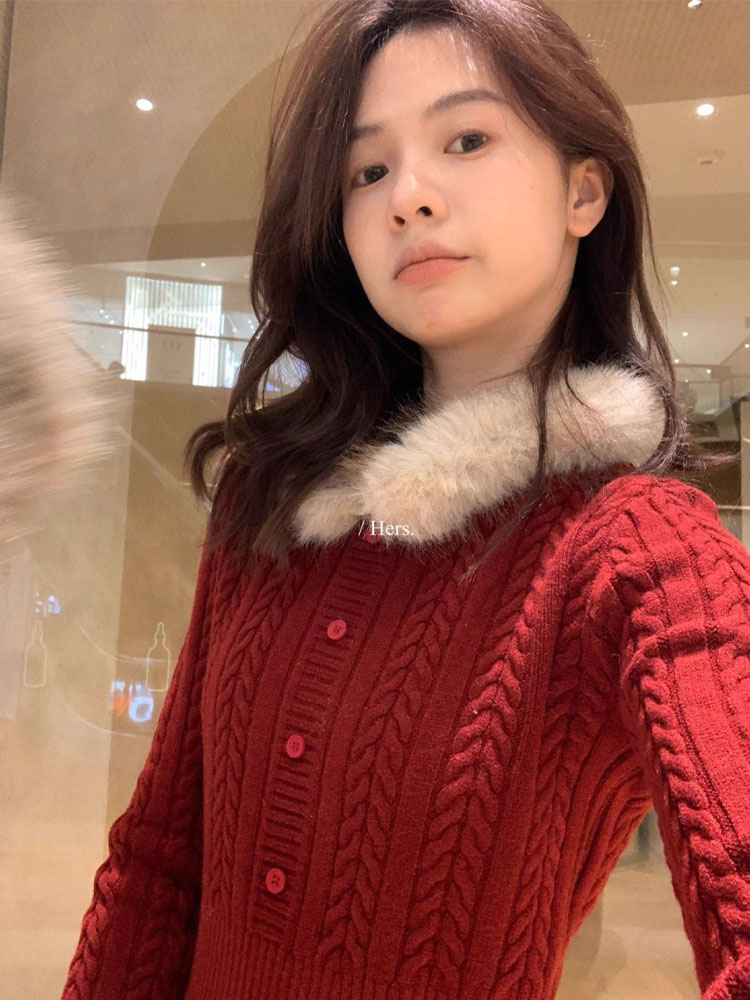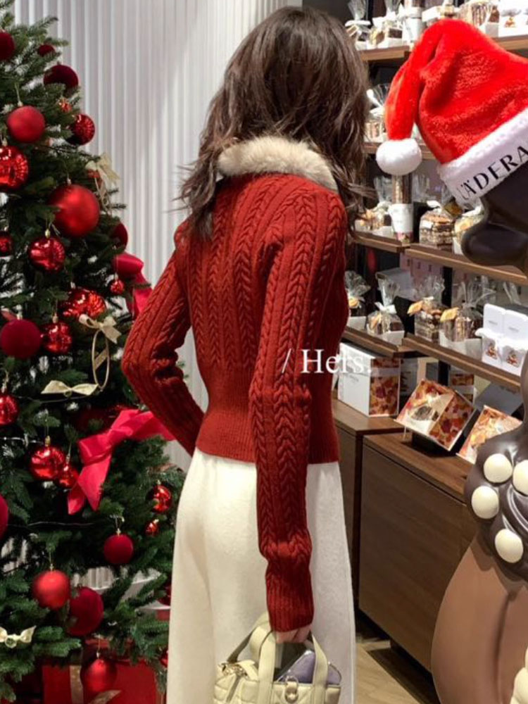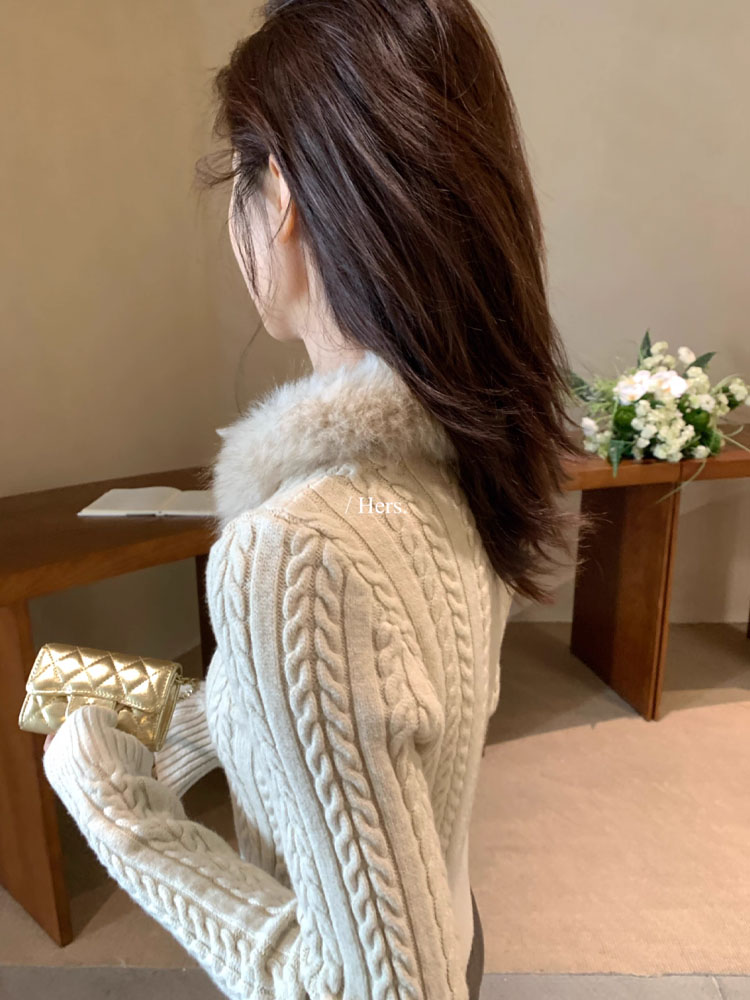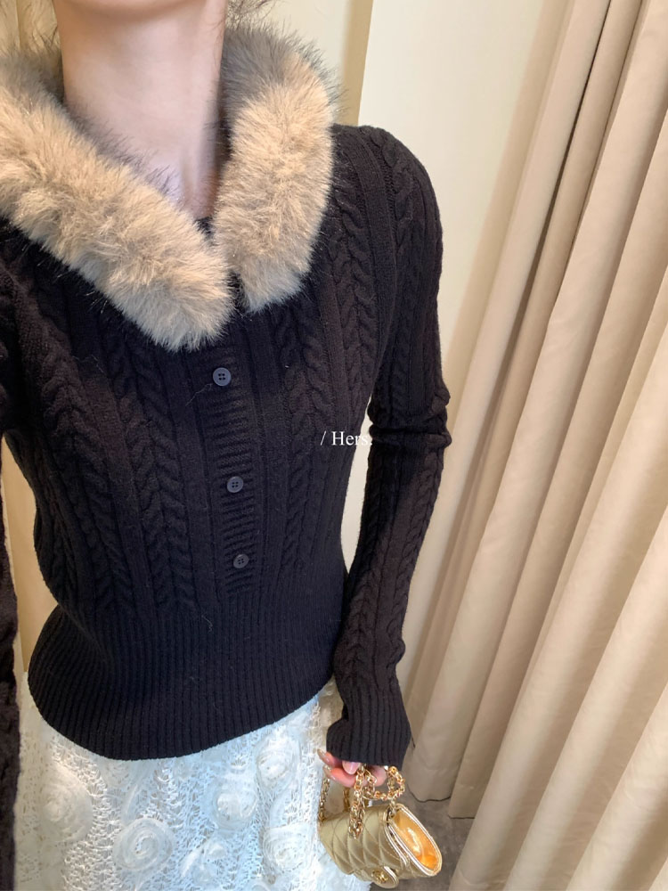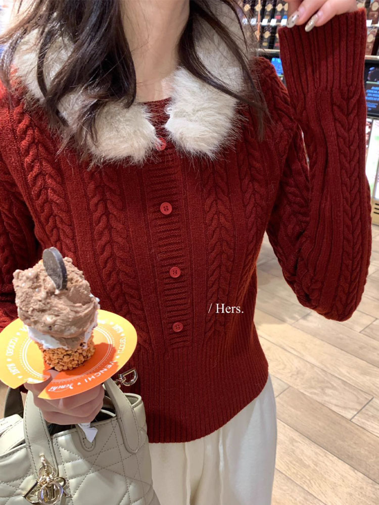 MY17533# 韩系简约气质百搭显瘦针织衫女可拆卸毛领麻花保暖毛衣女裝貨源服裝批發