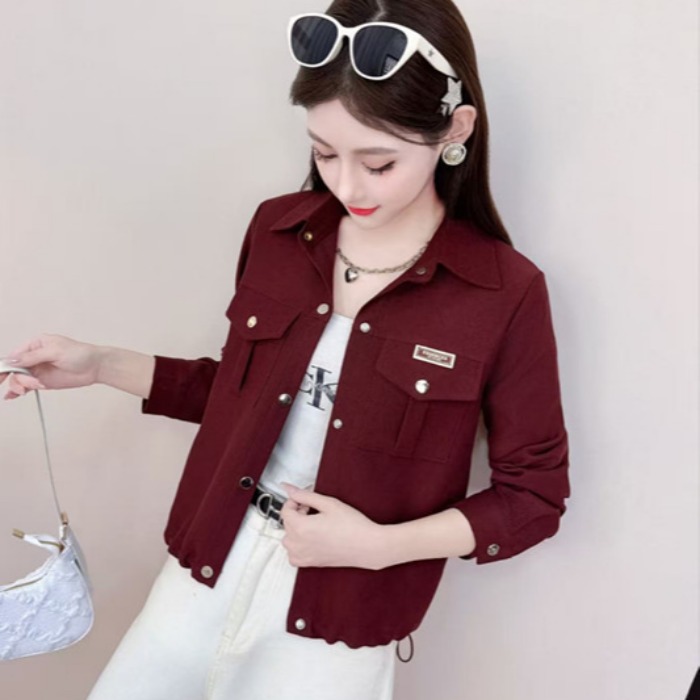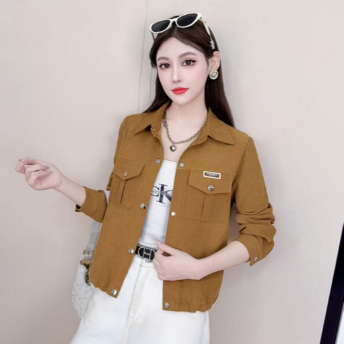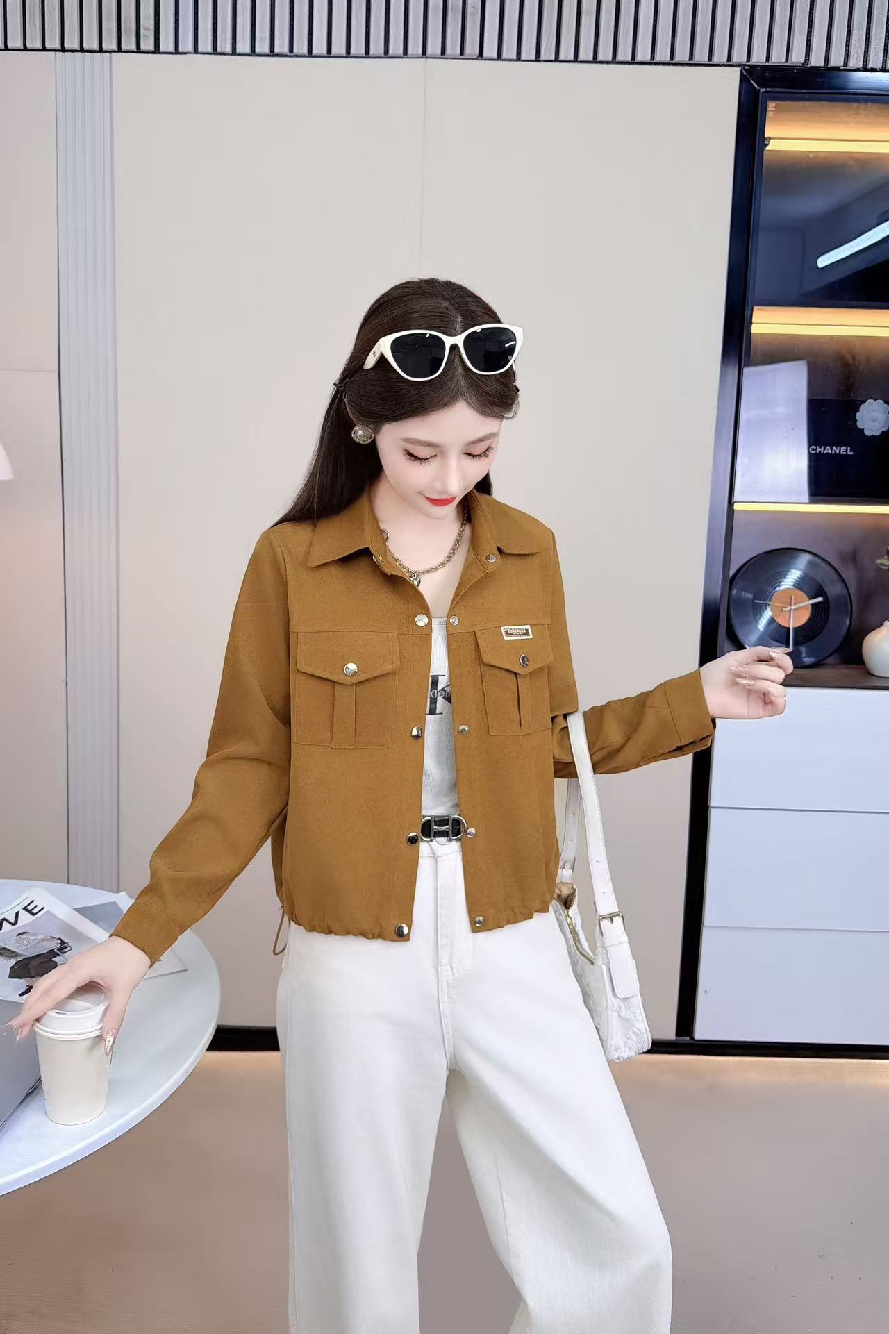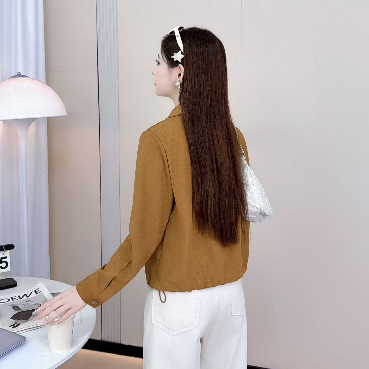 MY17544# 短款休闲外套新款小个子时尚百搭短款翻领长袖衬衫气质上衣女裝貨源服裝批發