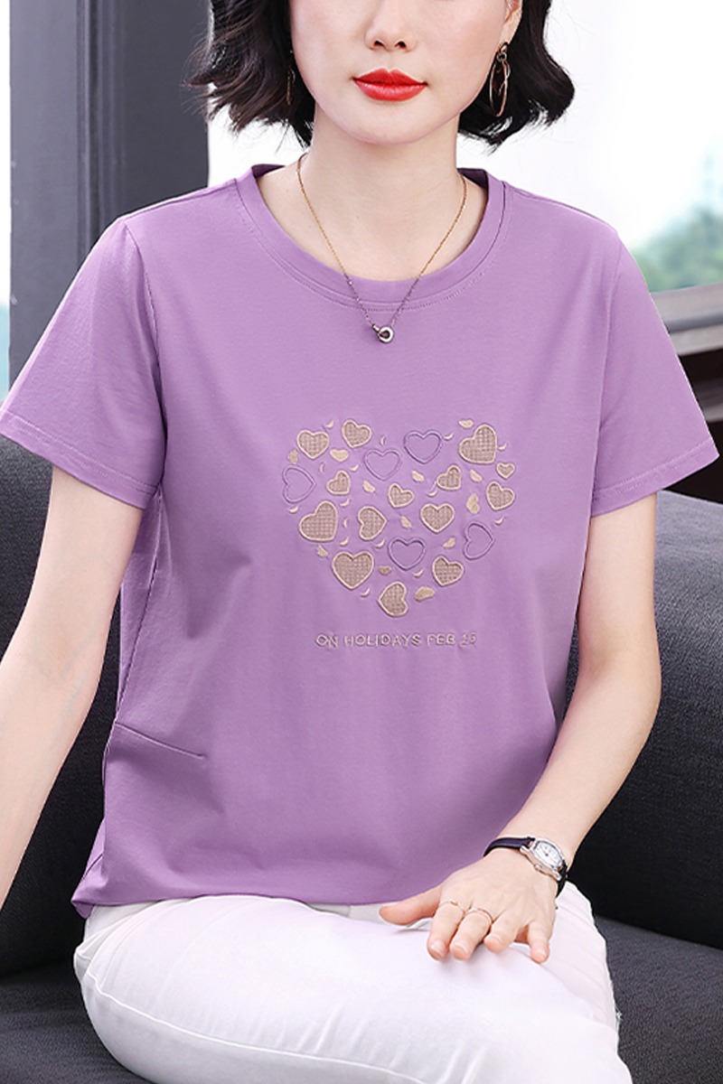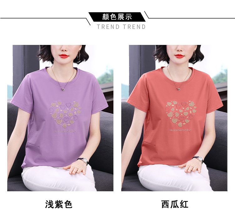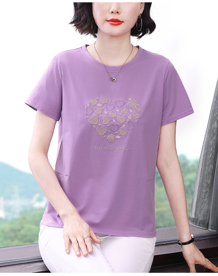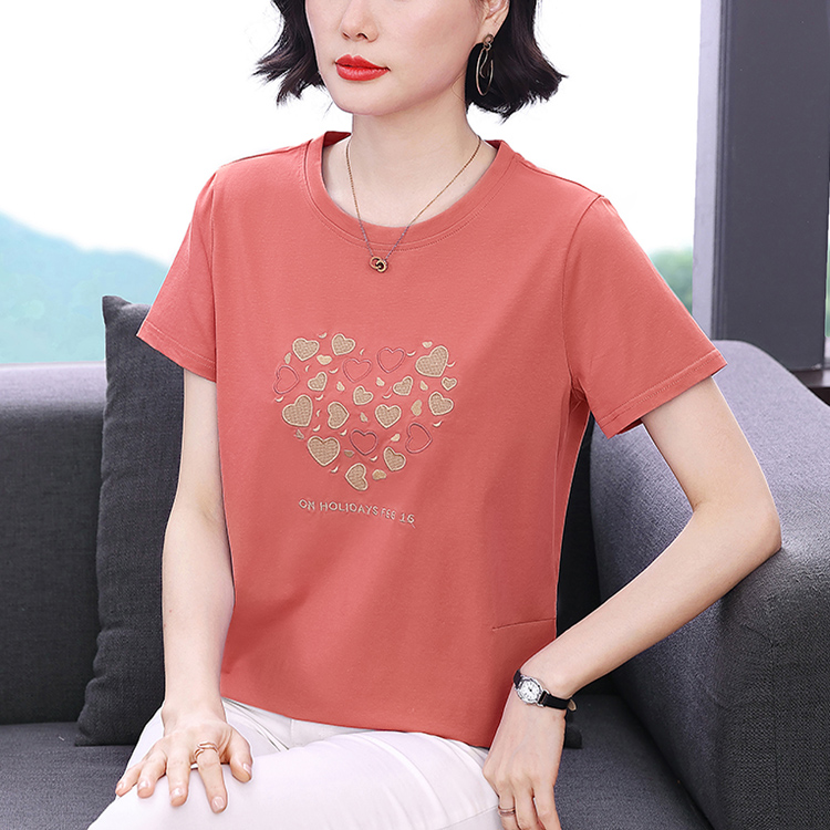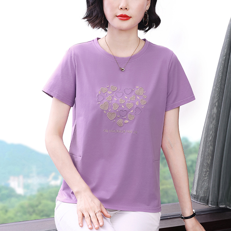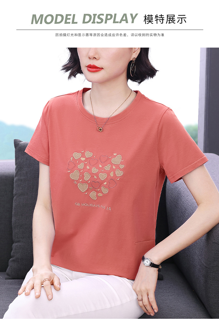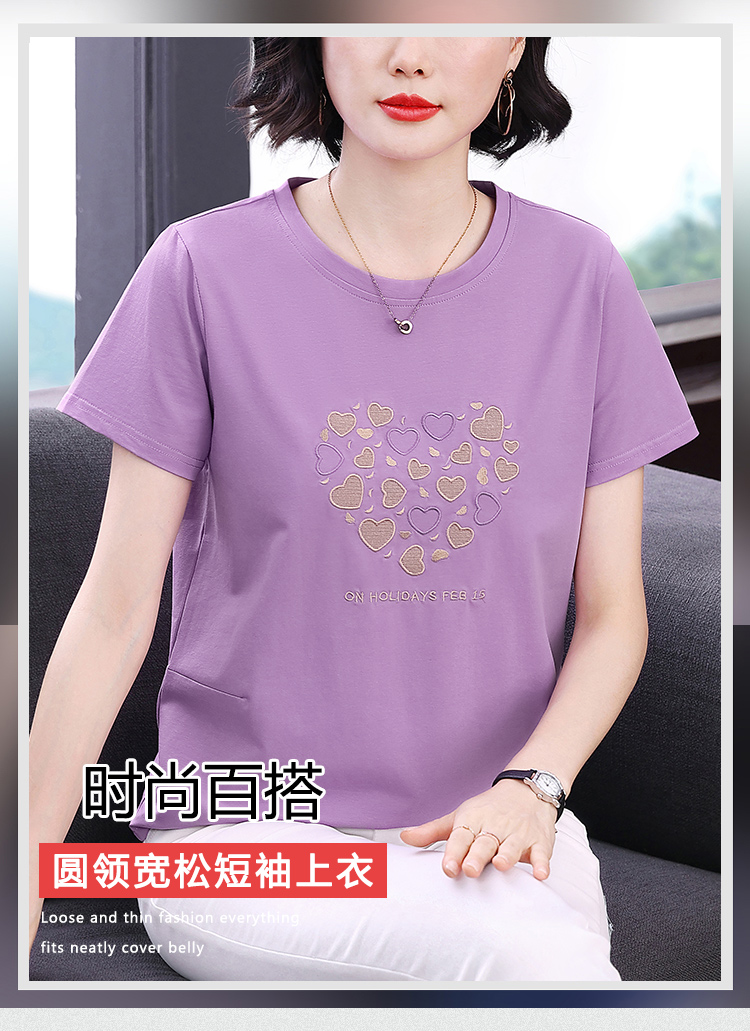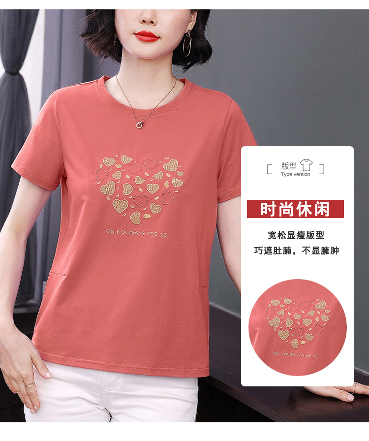 MY17546# 刺绣爱心短袖上衣女新款夏装中年妈妈装宽松拼接短袖T恤女裝貨源服裝批發