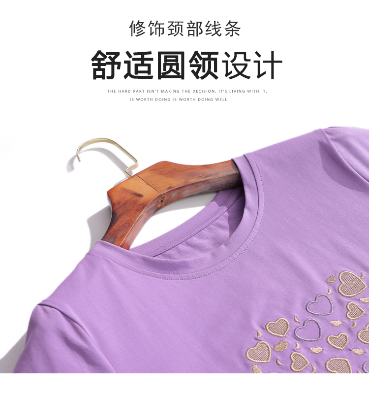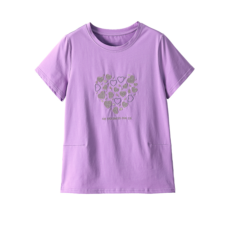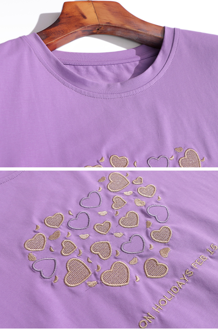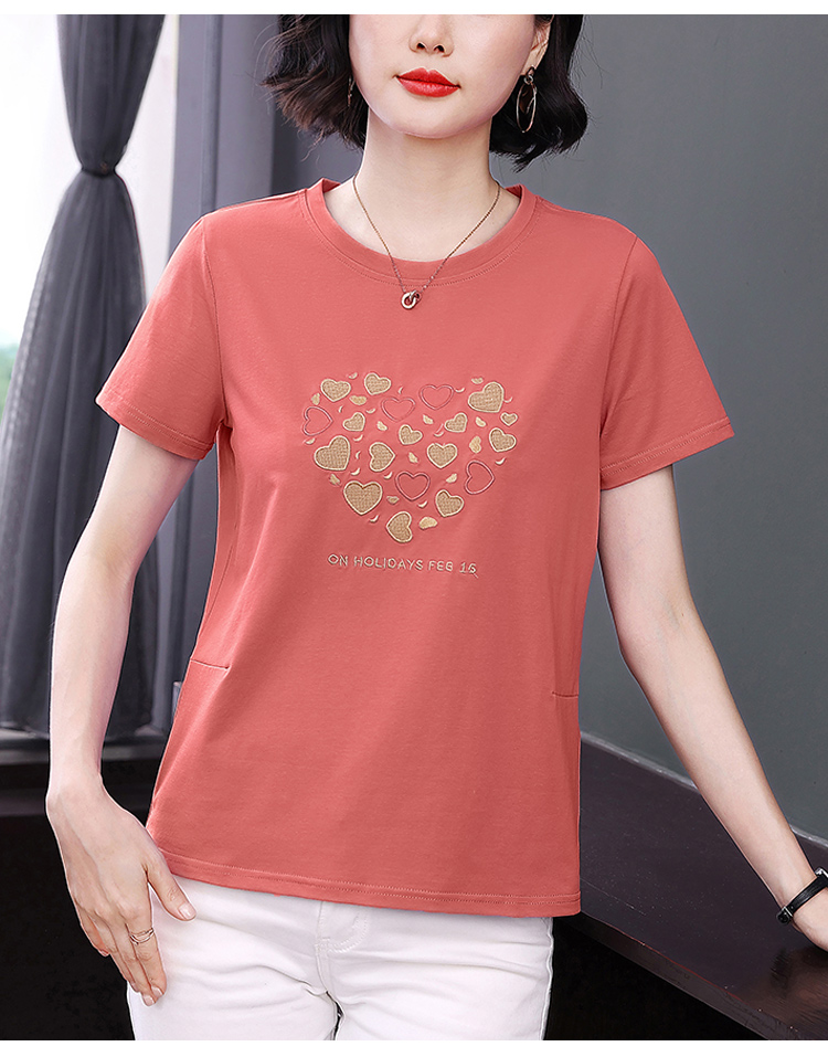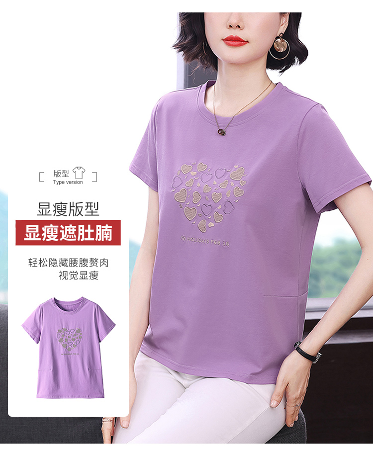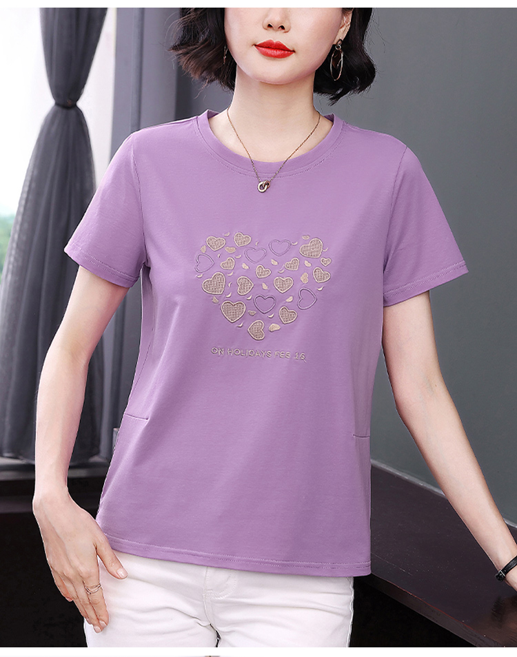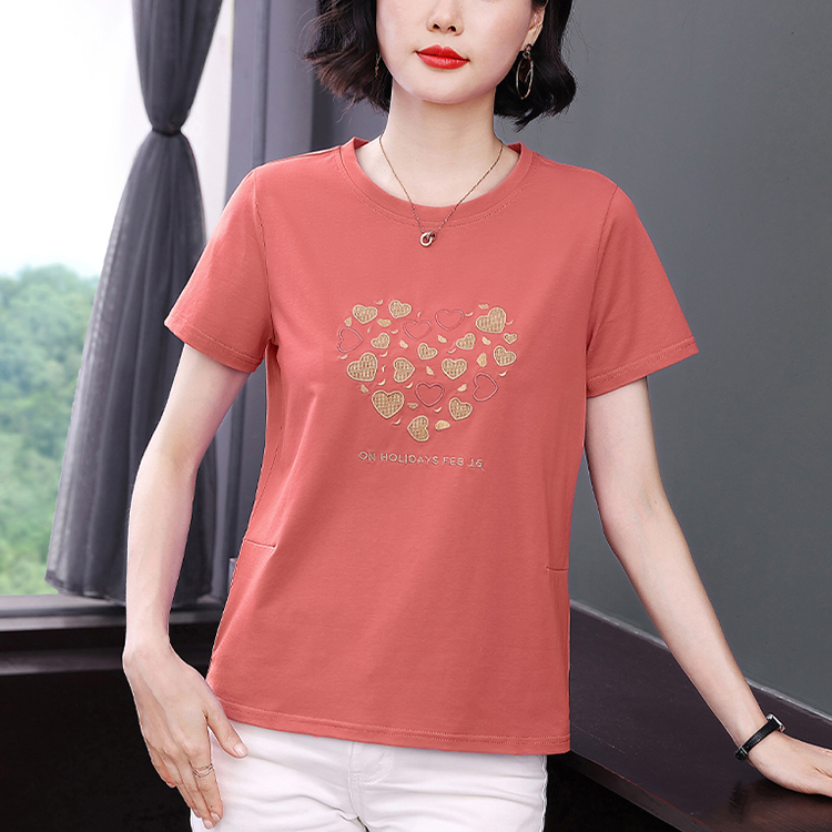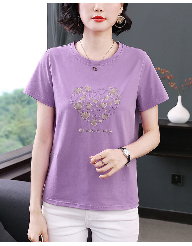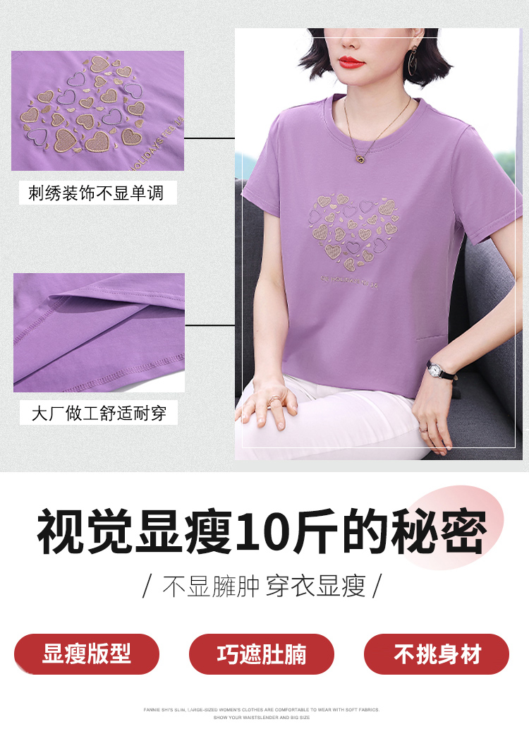 MY17546# 刺绣爱心短袖上衣女新款夏装中年妈妈装宽松拼接短袖T恤女裝貨源服裝批發