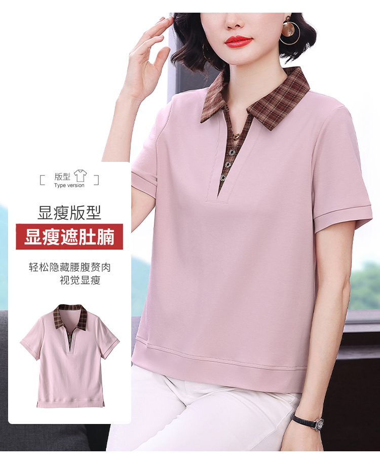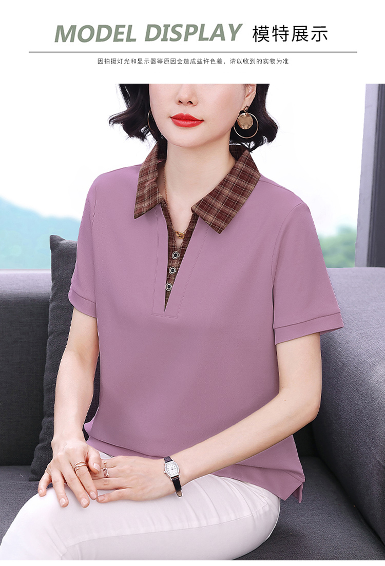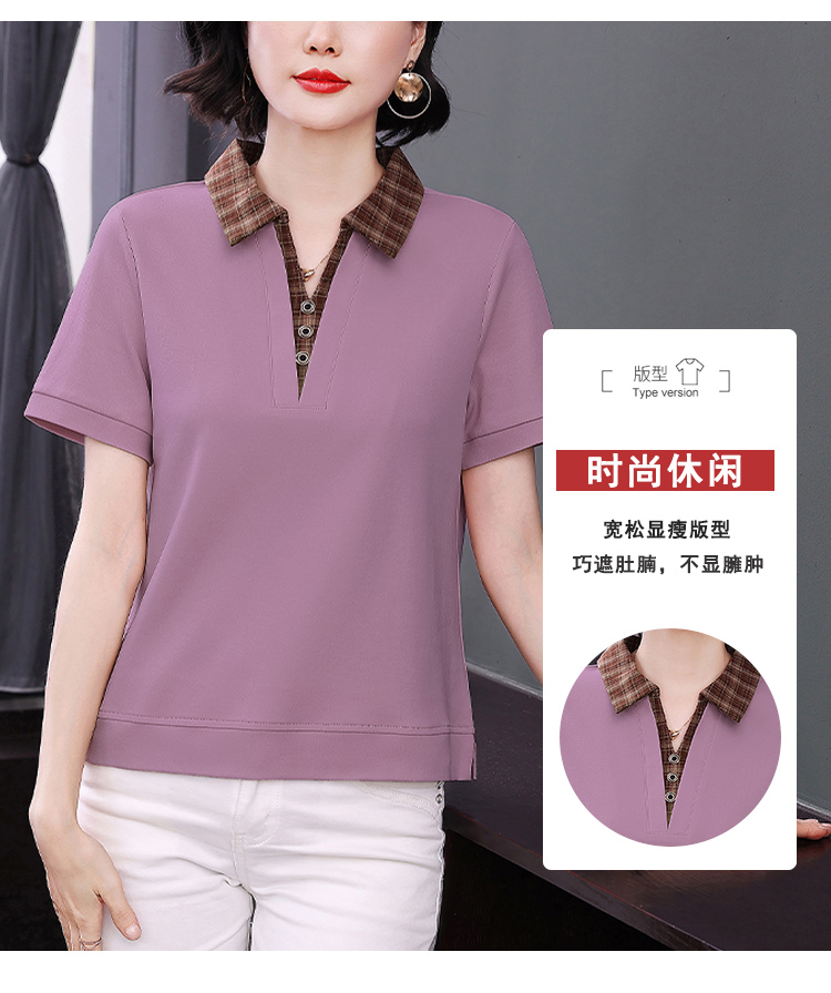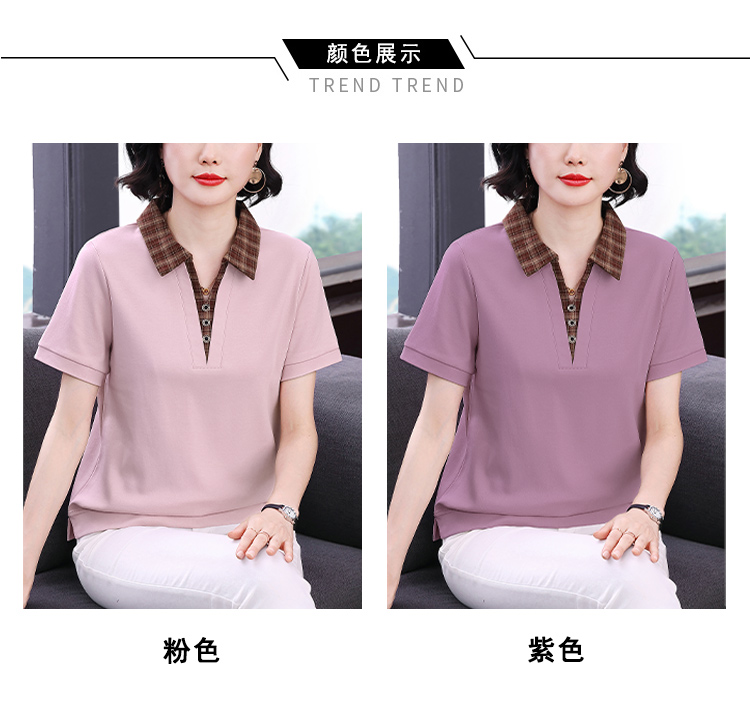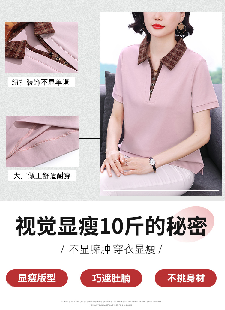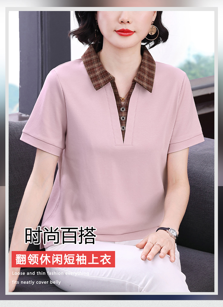 MY17547# 短袖t恤女夏季宽松假两件翻领上衣新款妈妈减龄休闲短袖T恤女裝貨源服裝批發