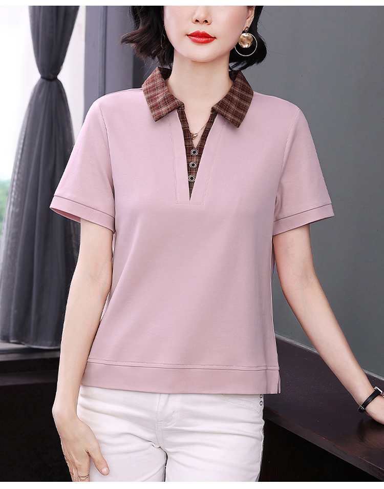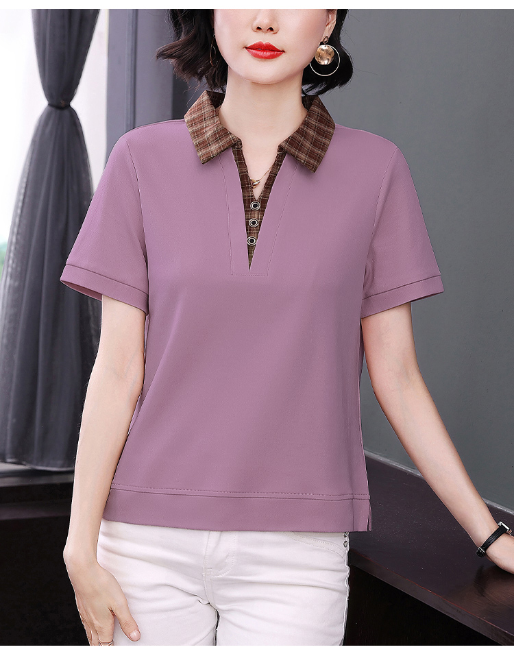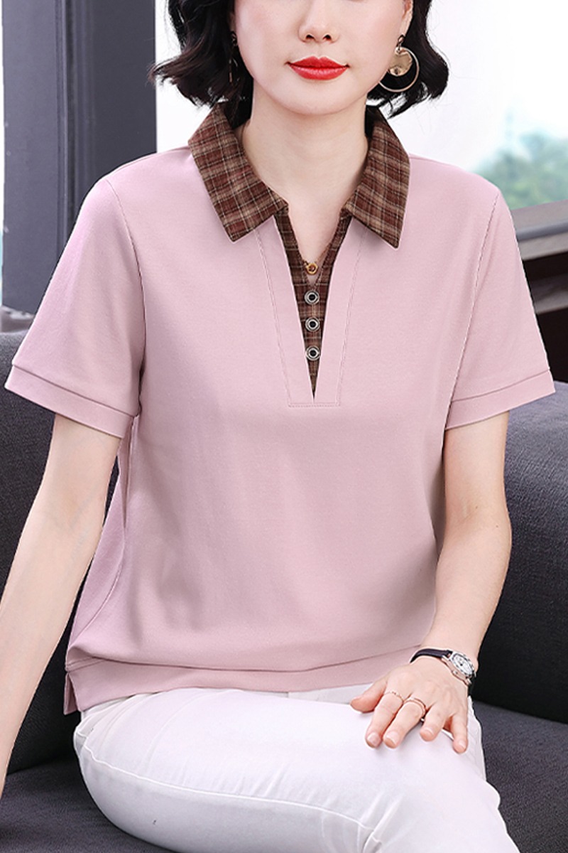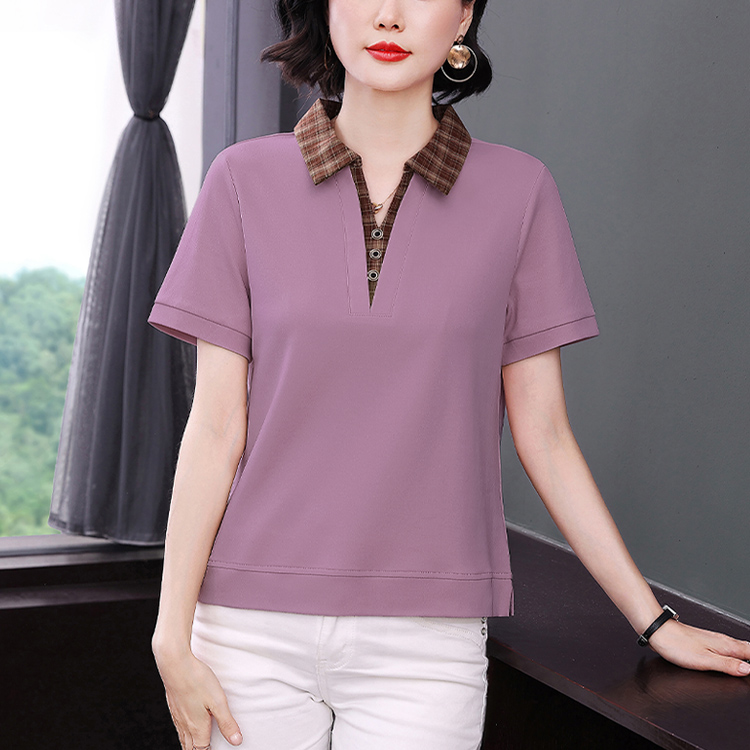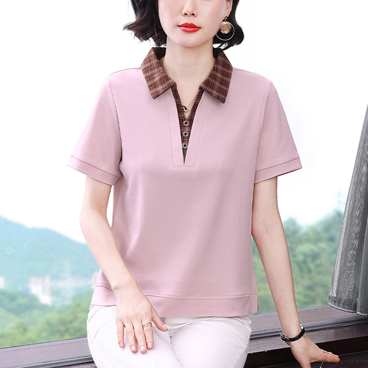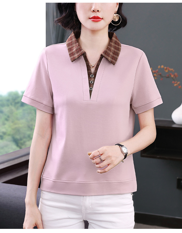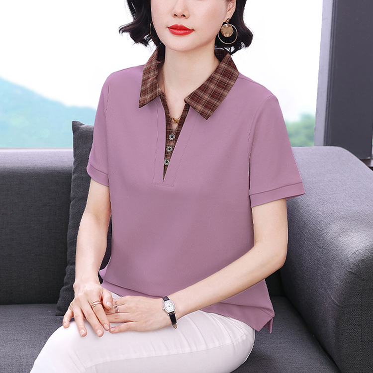 MY17547# 短袖t恤女夏季宽松假两件翻领上衣新款妈妈减龄休闲短袖T恤女裝貨源服裝批發