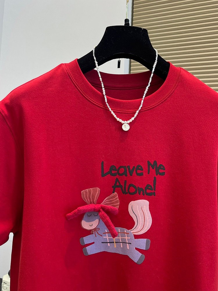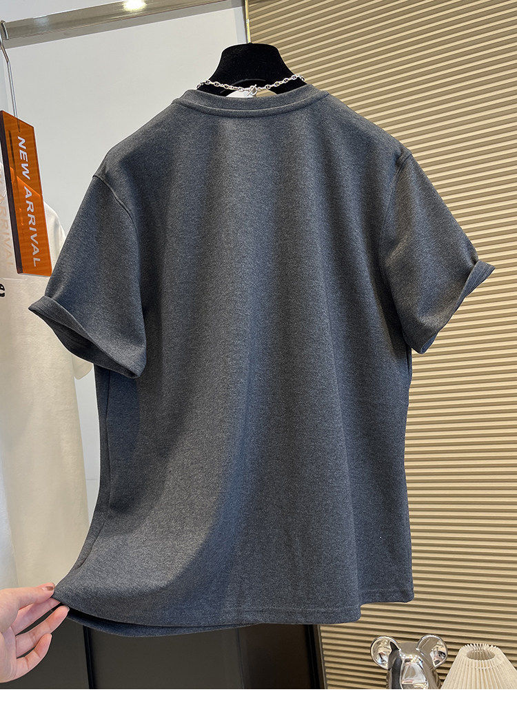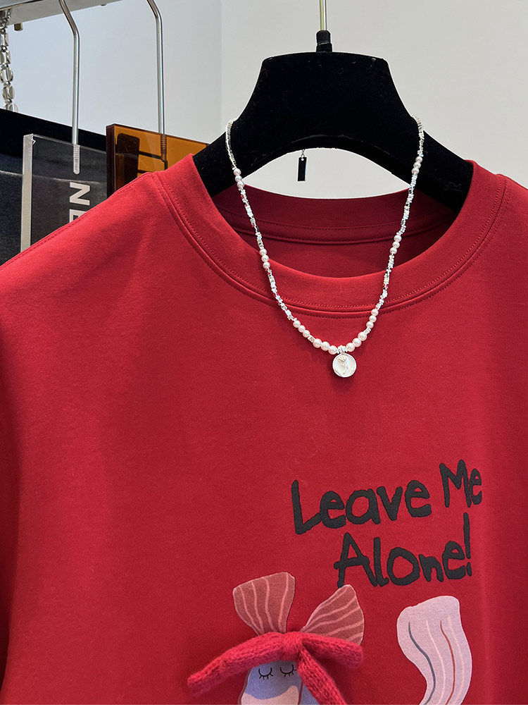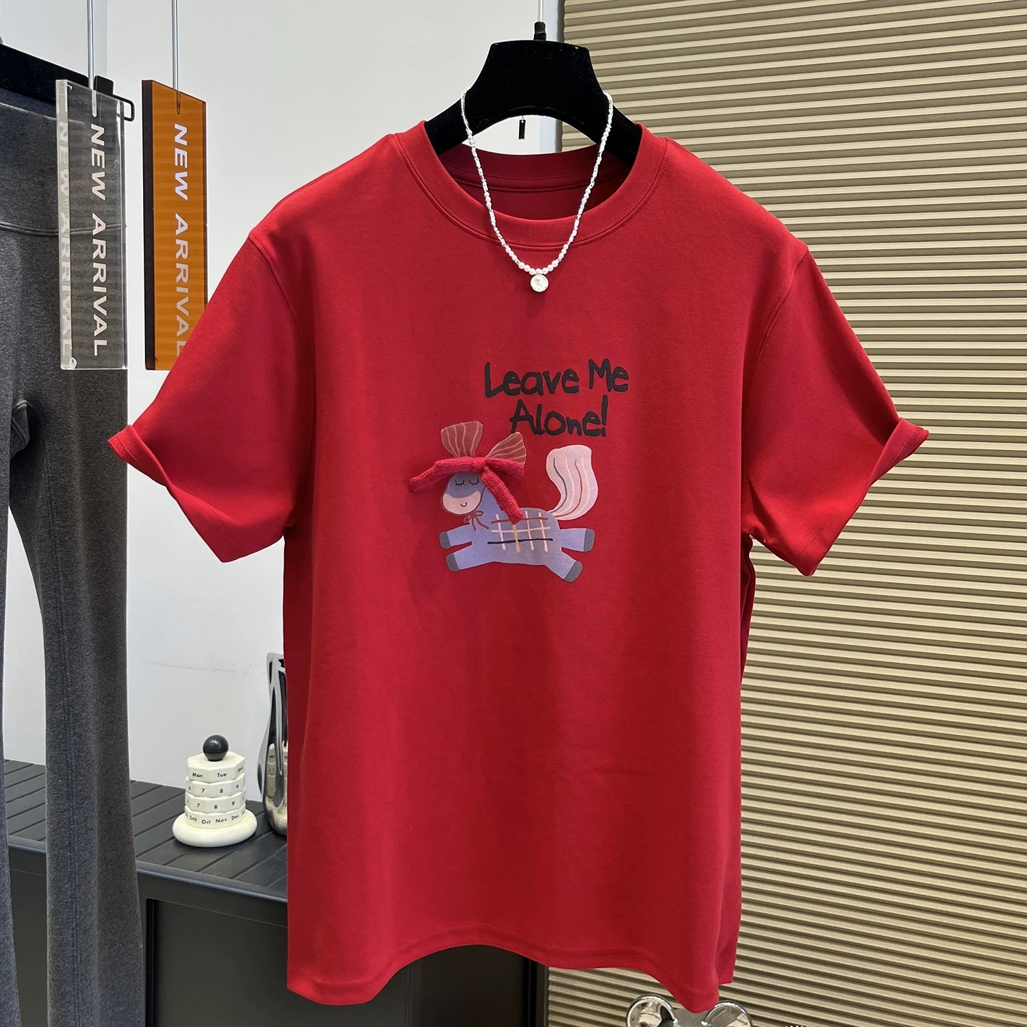 MY17565# 德绒特大码300斤韩版百搭休闲蝴蝶结刺绣德绒加厚短袖T恤女裝貨源服裝批發