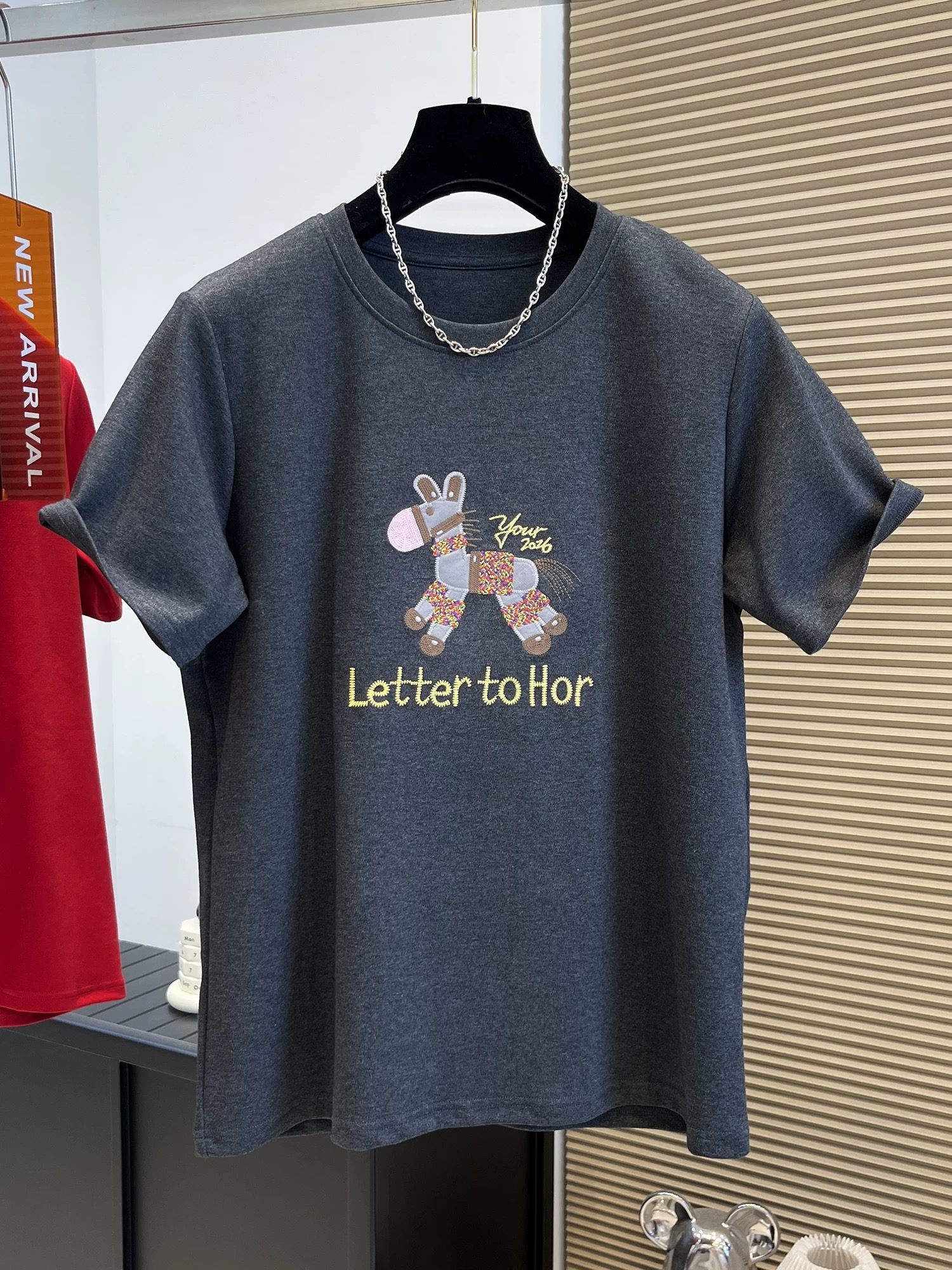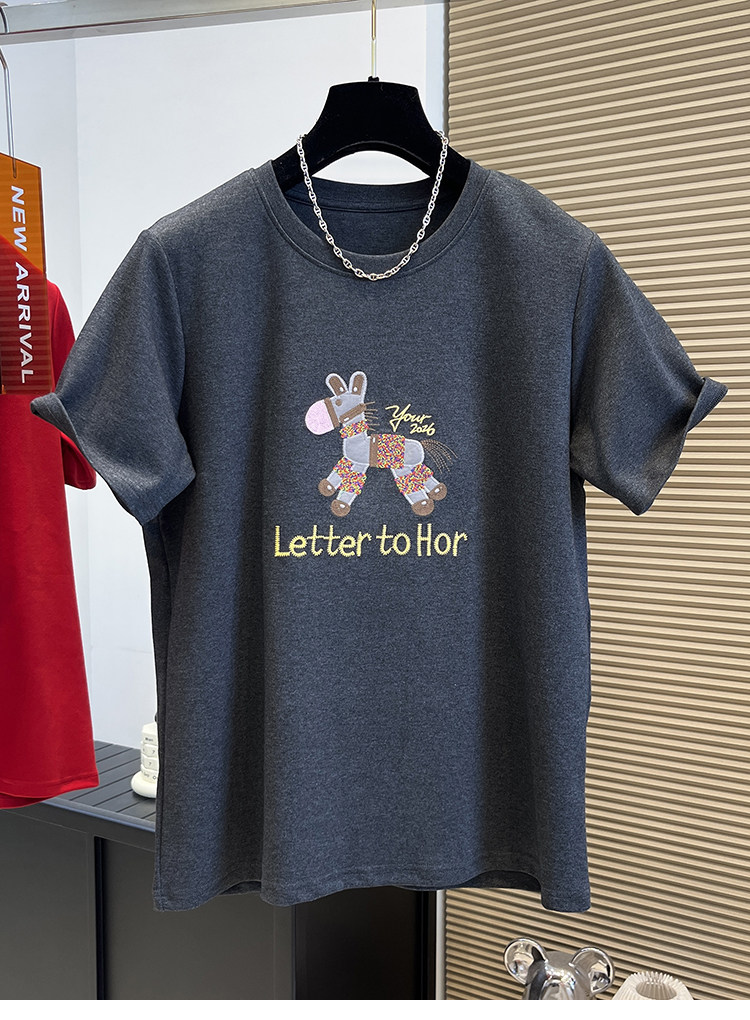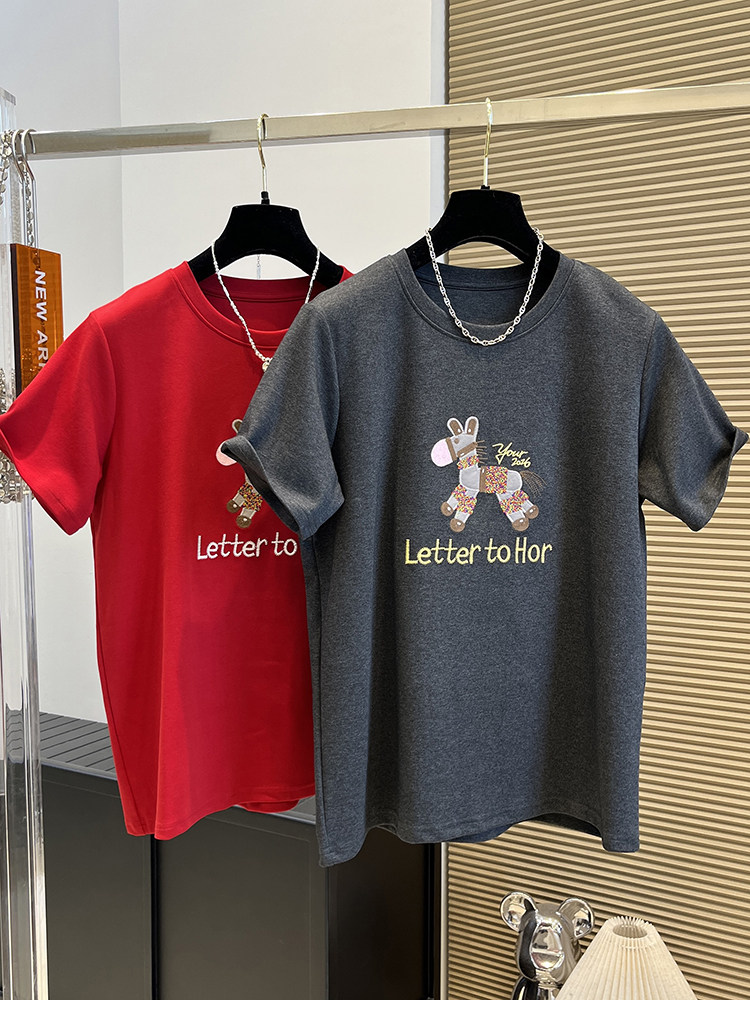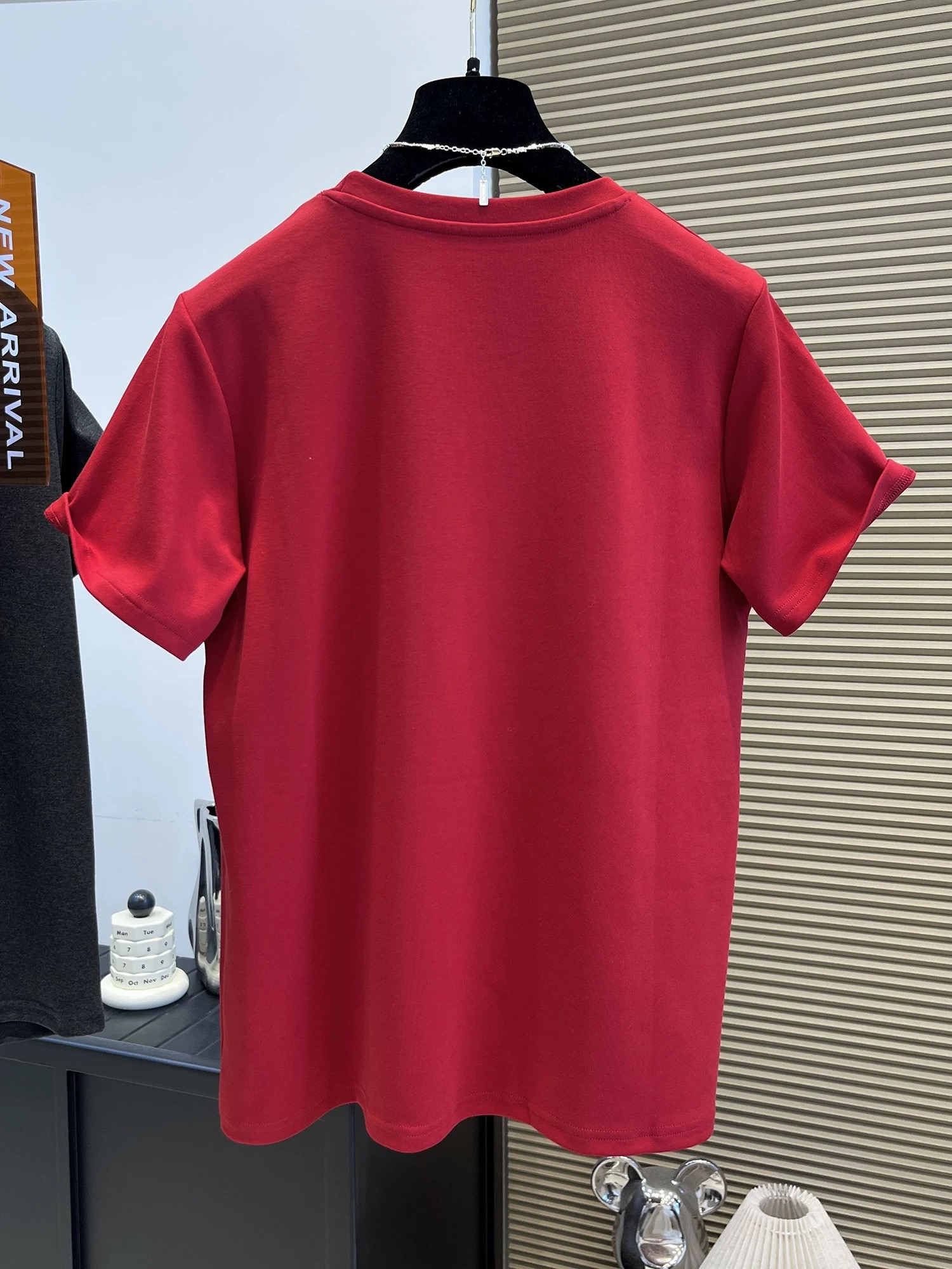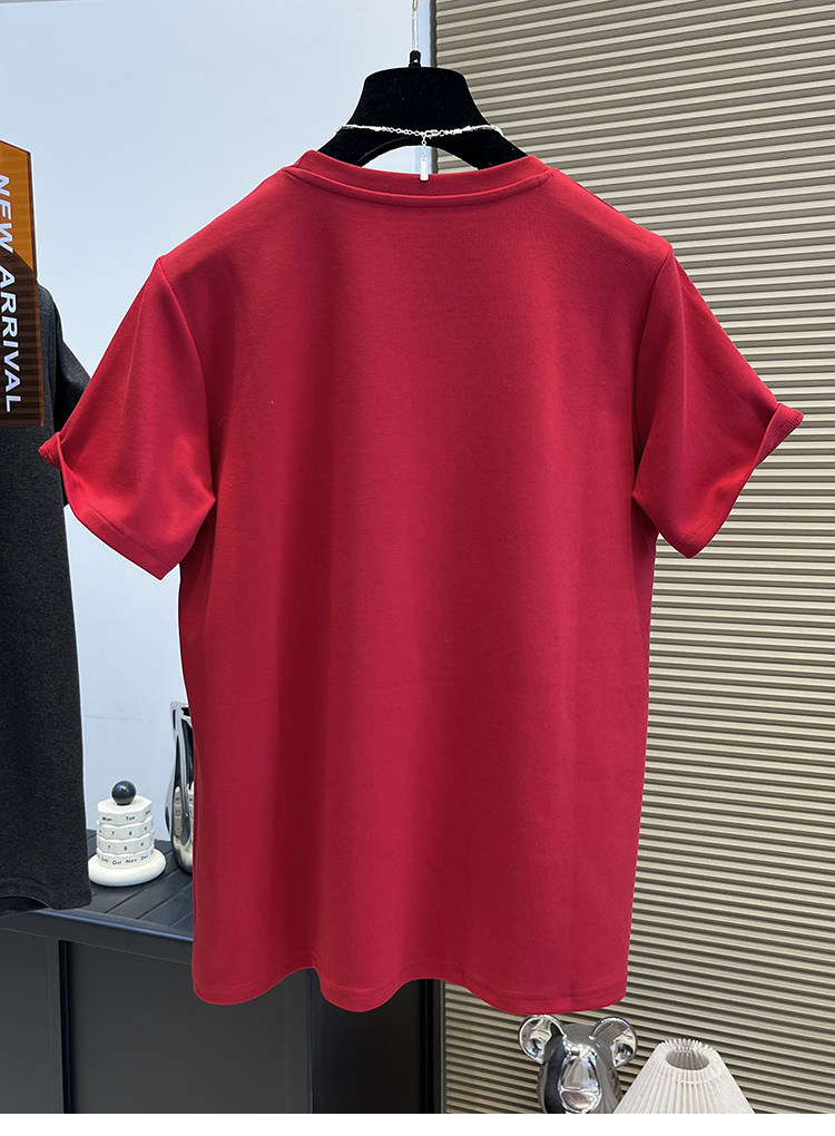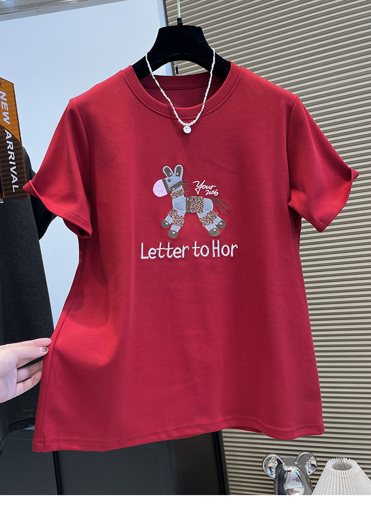 MY17566# 德绒特大码300斤今年红短袖T恤刺绣上衣女裝貨源服裝批發