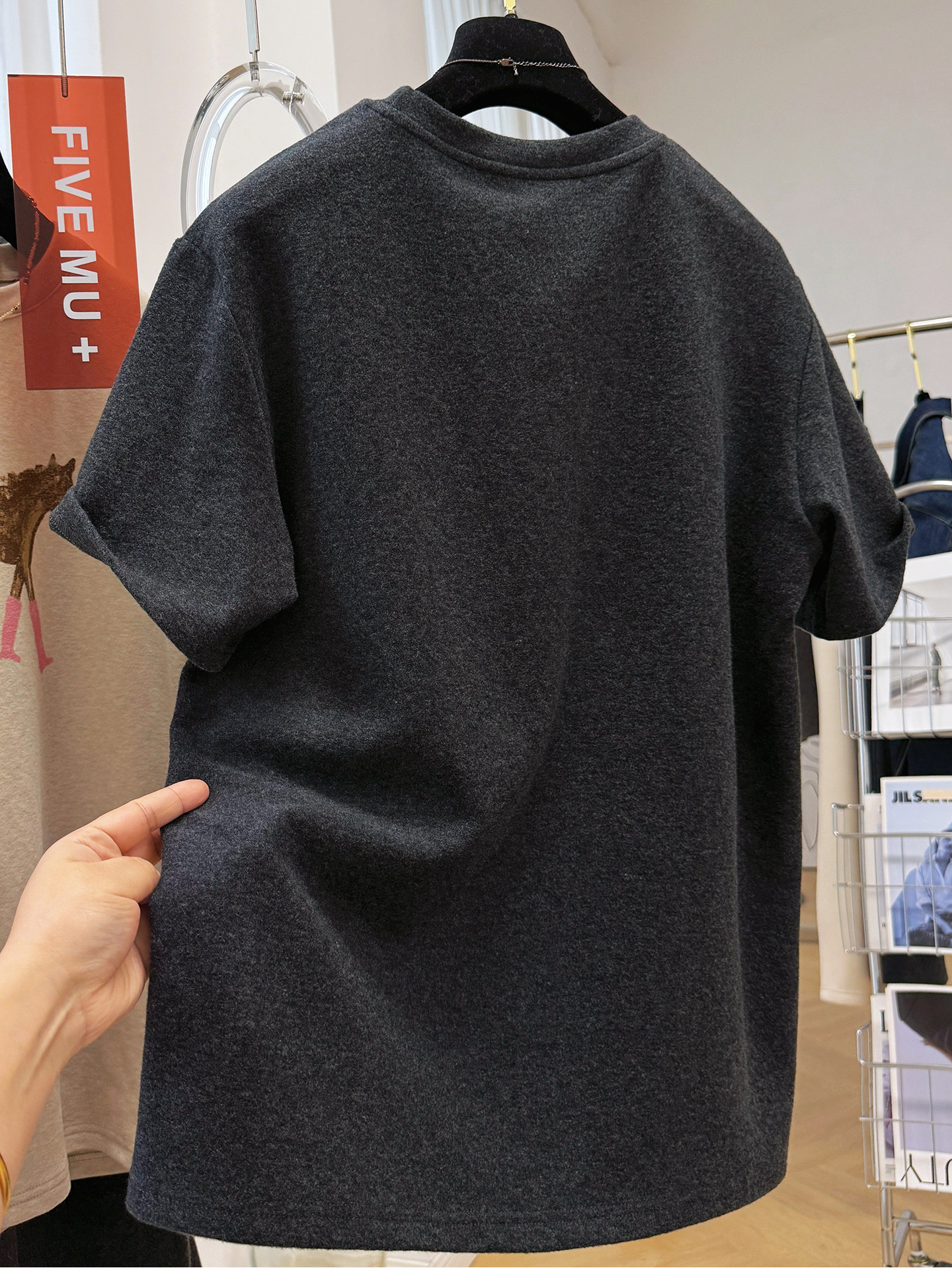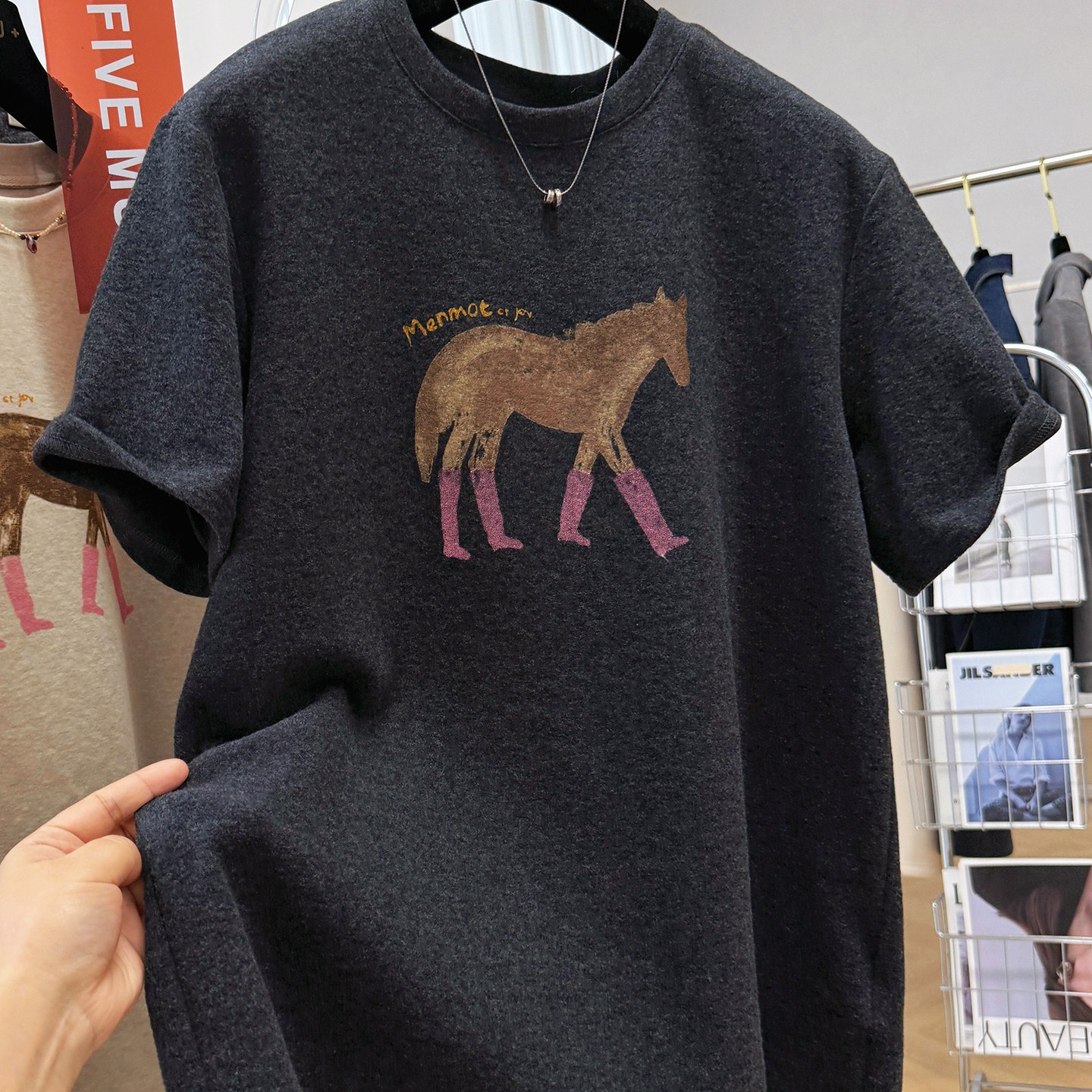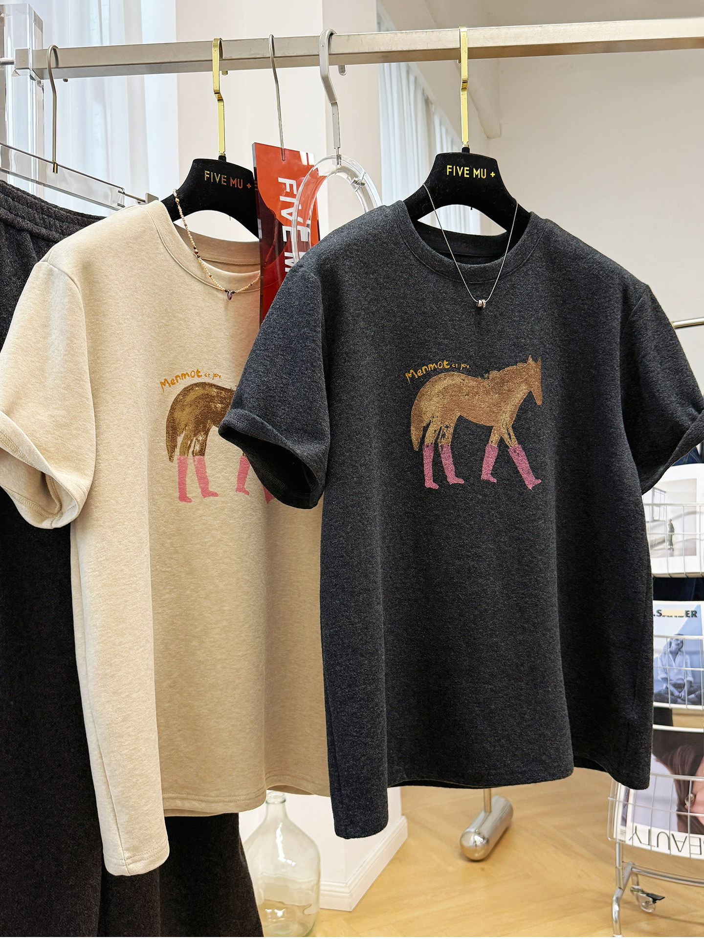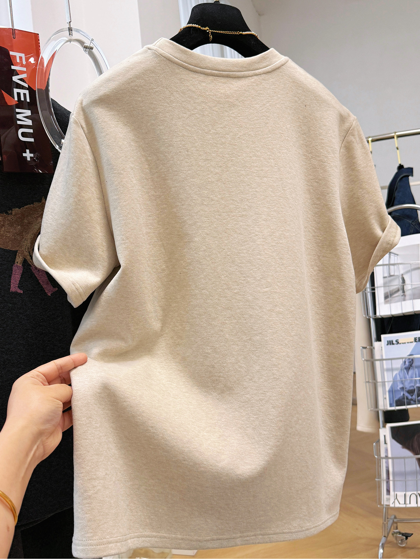 MY17575# 螺纹德绒大码300斤磨毛短袖T恤女卡通印花宽松半袖打底衫上衣女裝貨源服裝批發