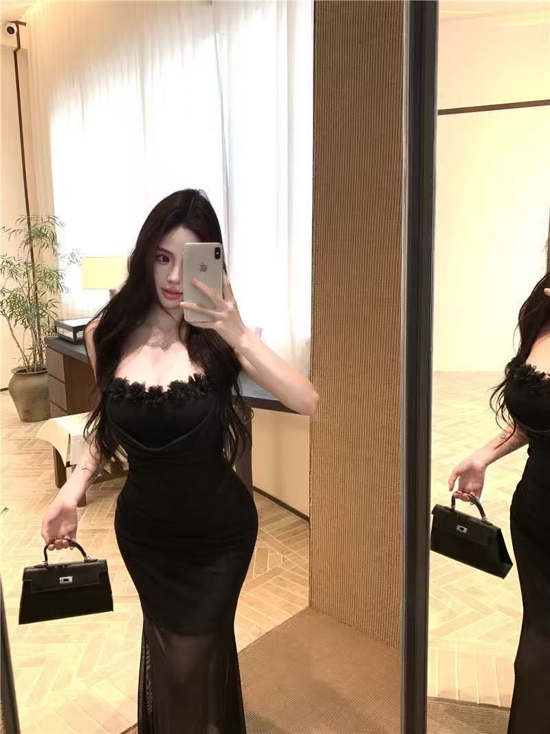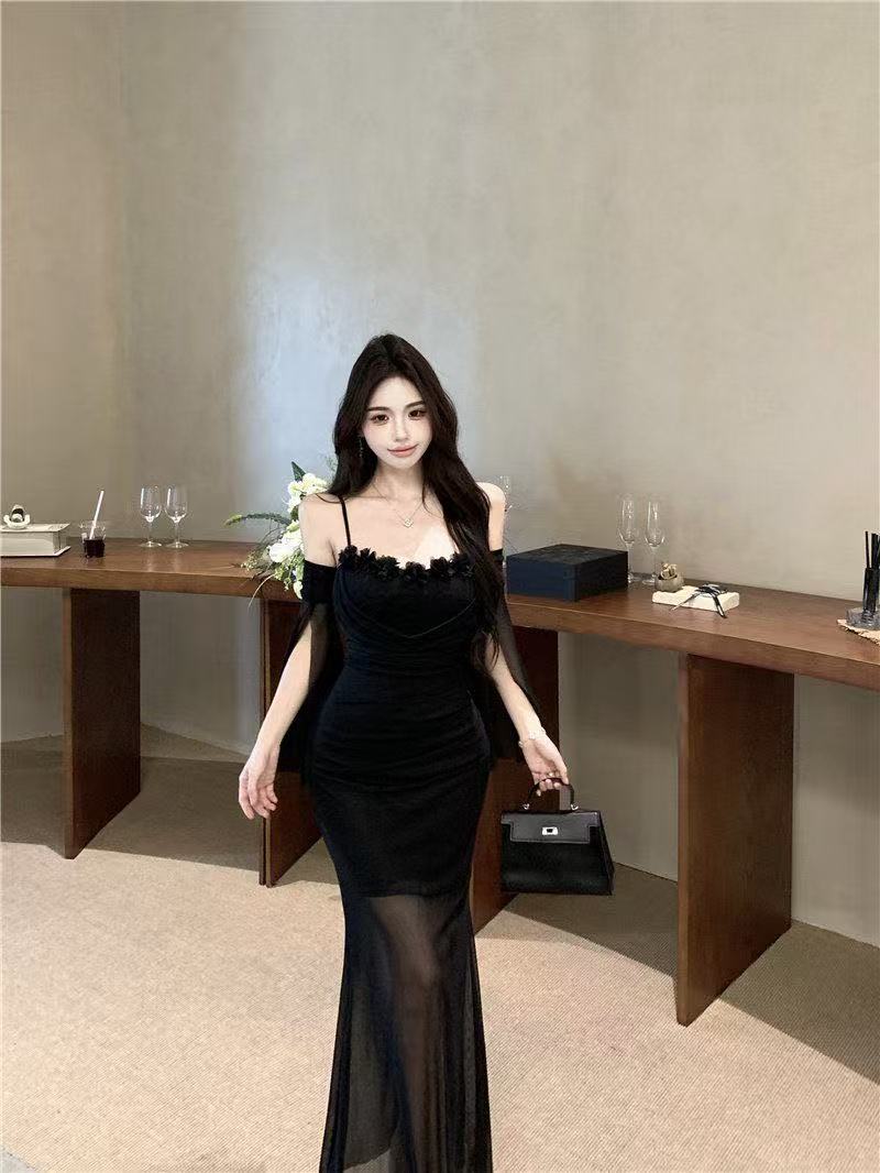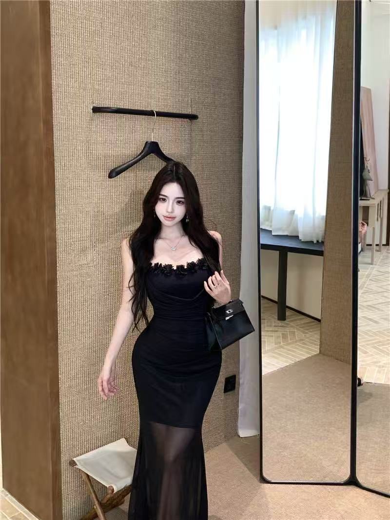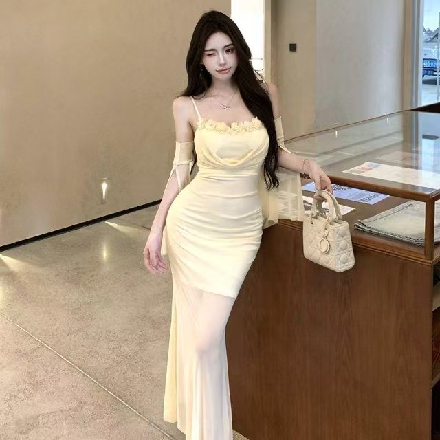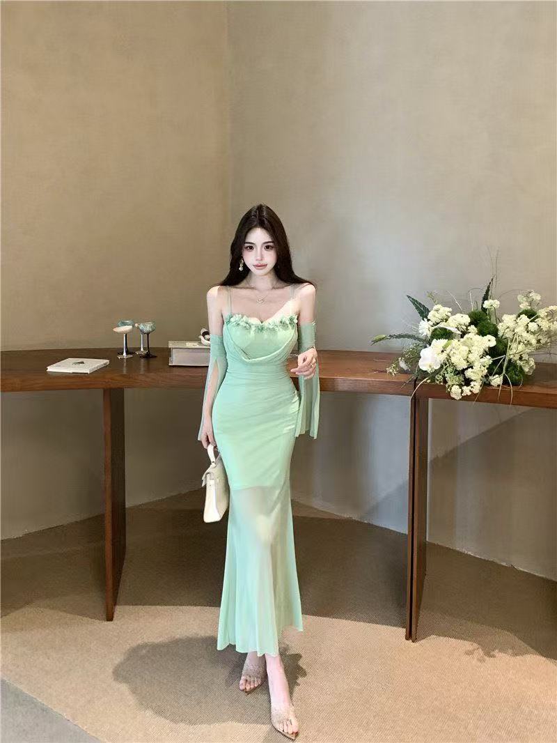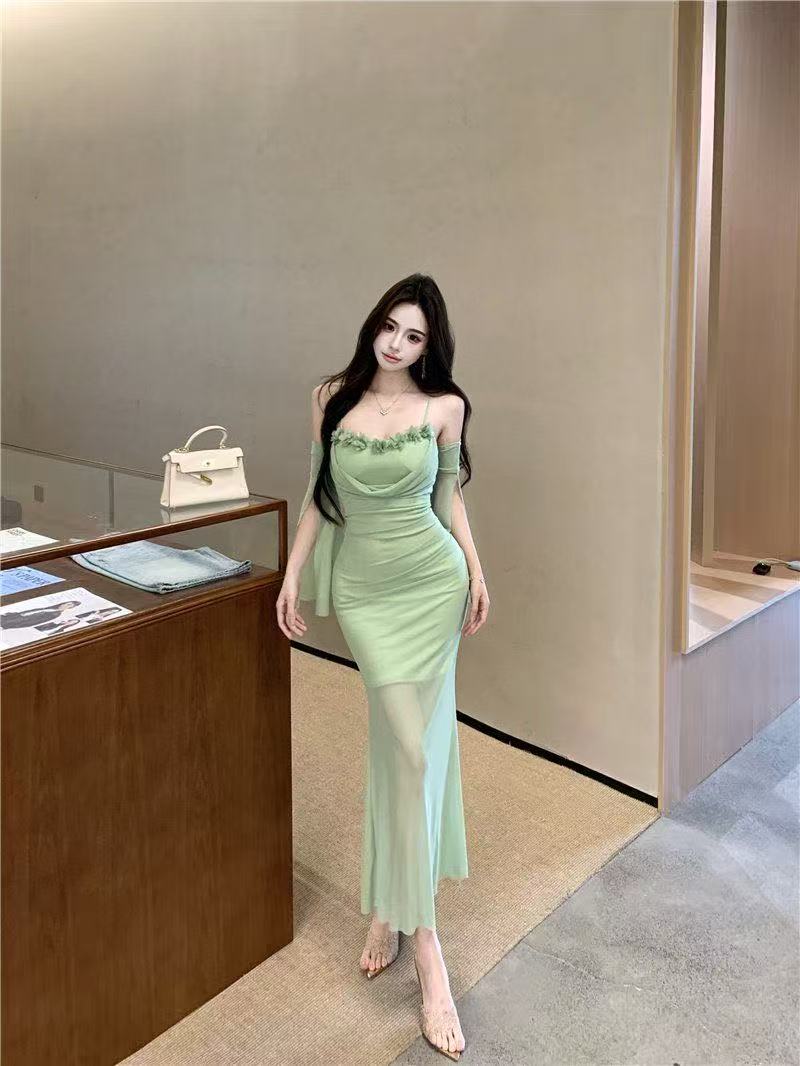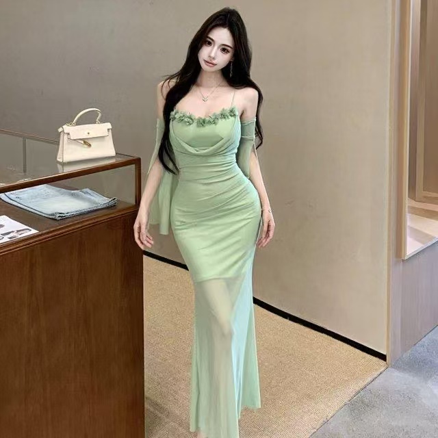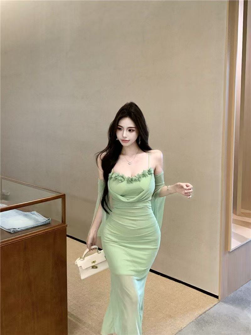 MY17585# 新款绿衣仙女吊带花朵连衣裙小个子性感气质别致鱼尾包臀裙女女裝貨源服裝批發