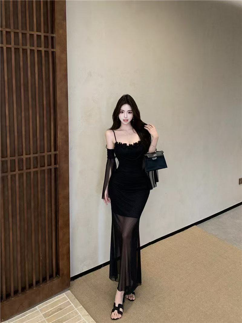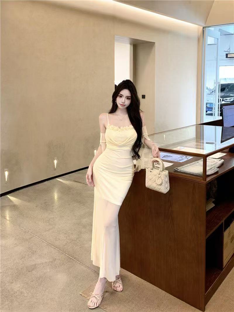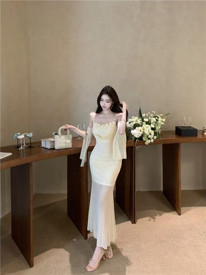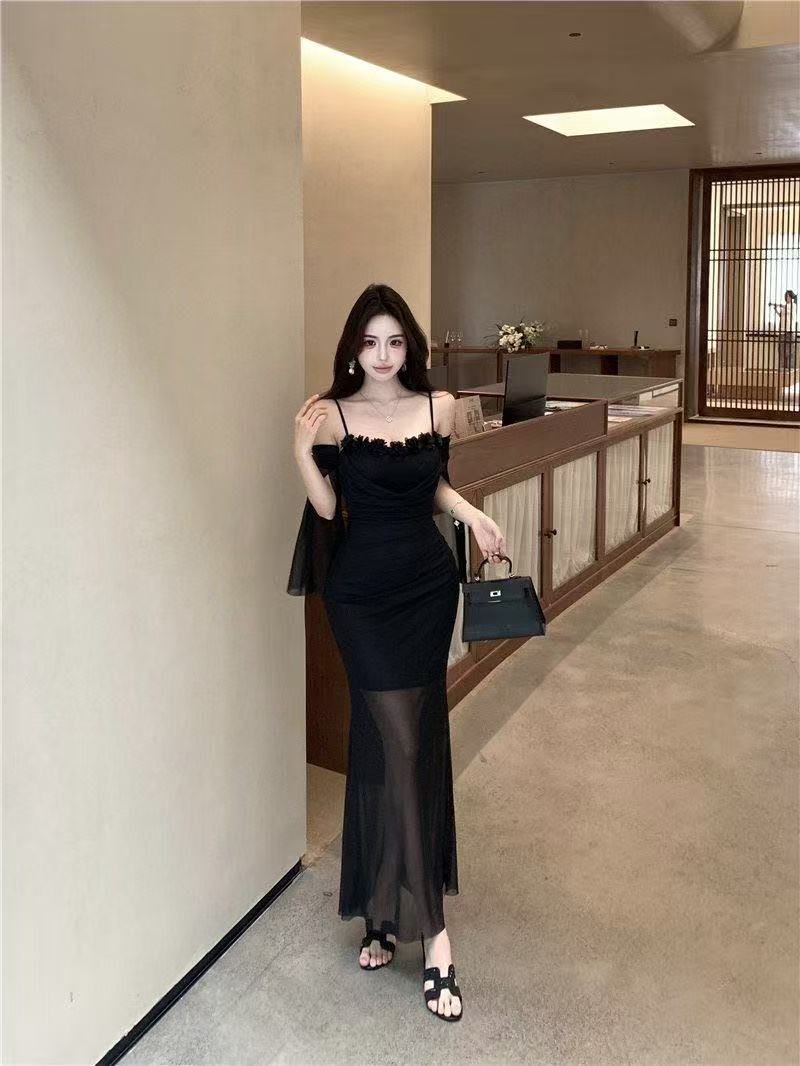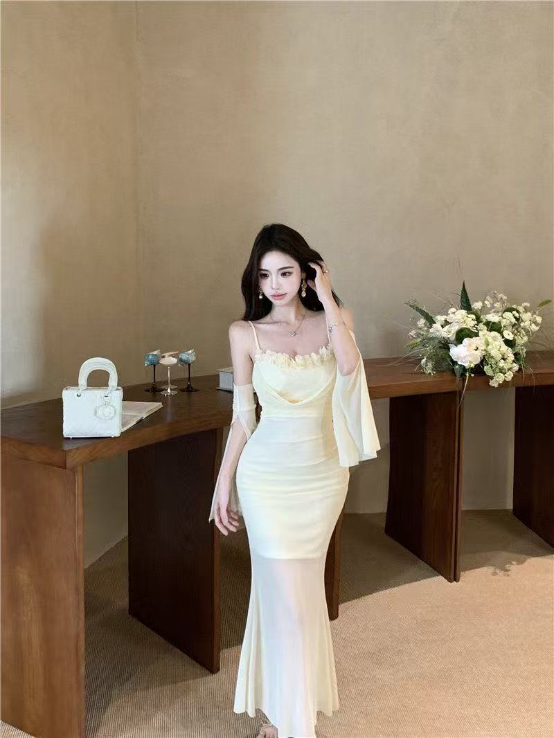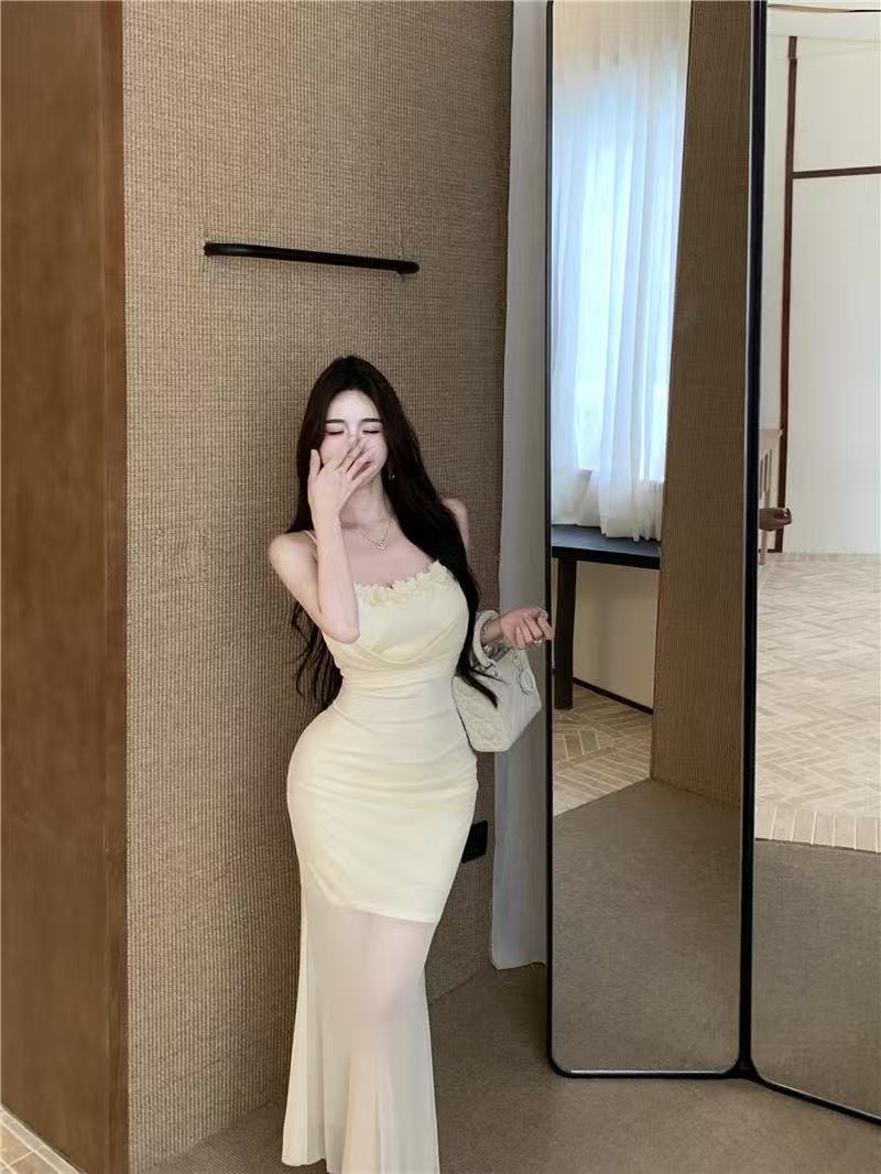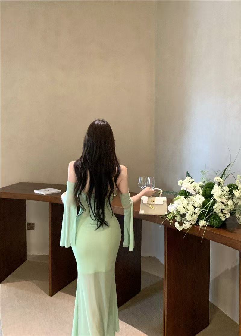 MY17585# 新款绿衣仙女吊带花朵连衣裙小个子性感气质别致鱼尾包臀裙女女裝貨源服裝批發