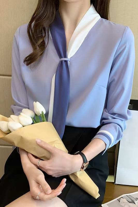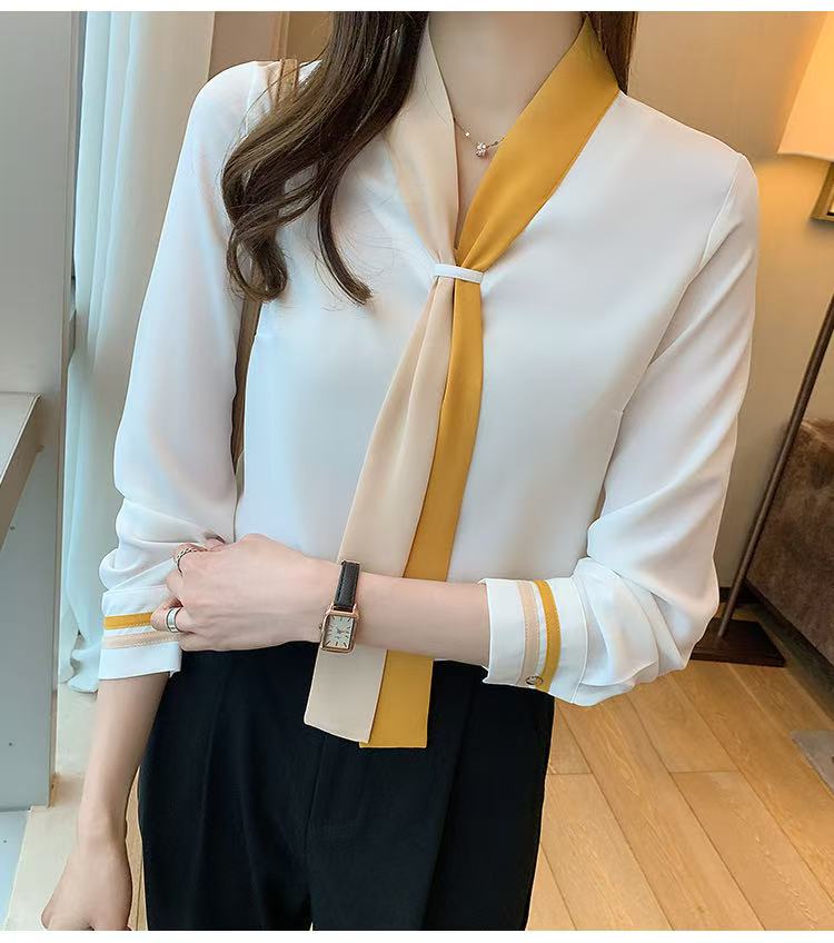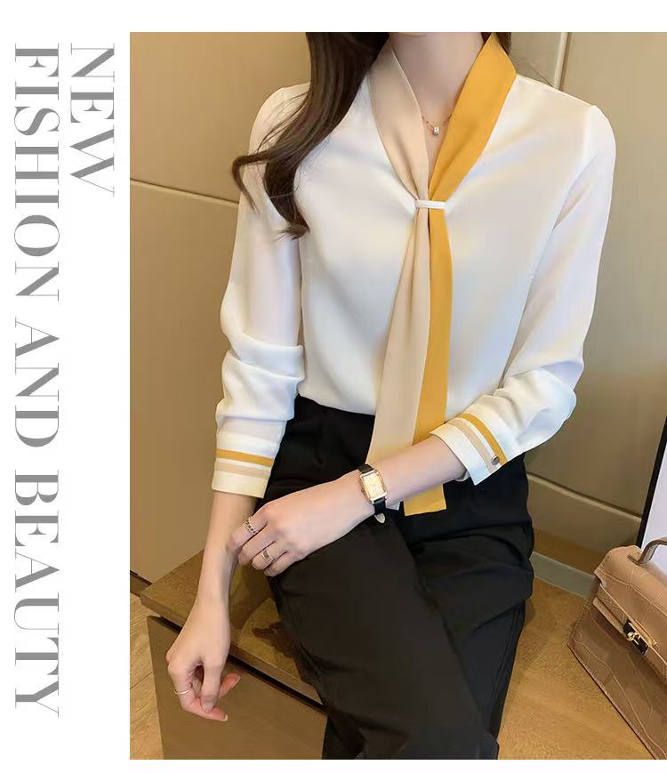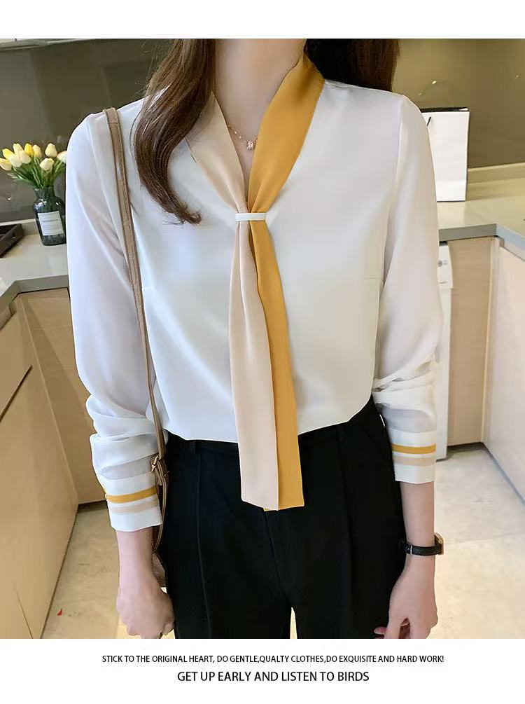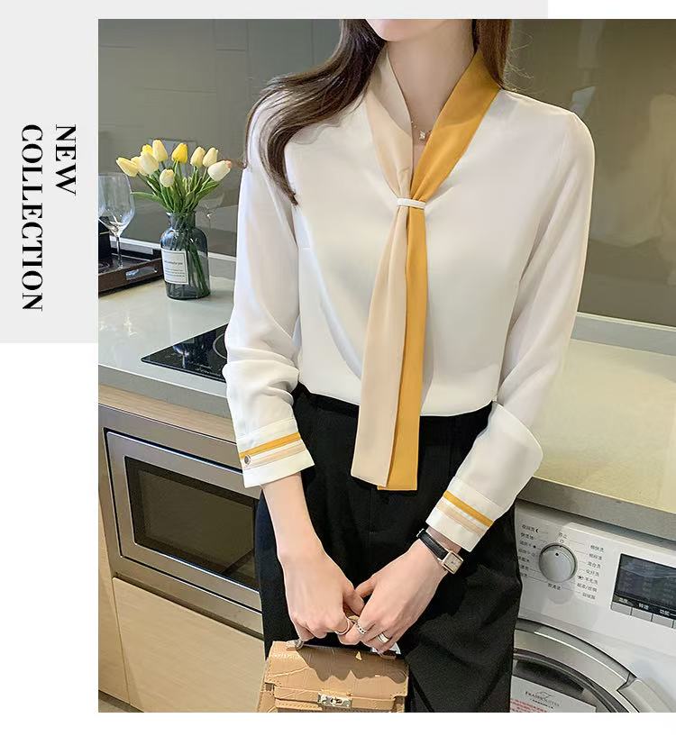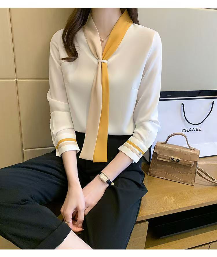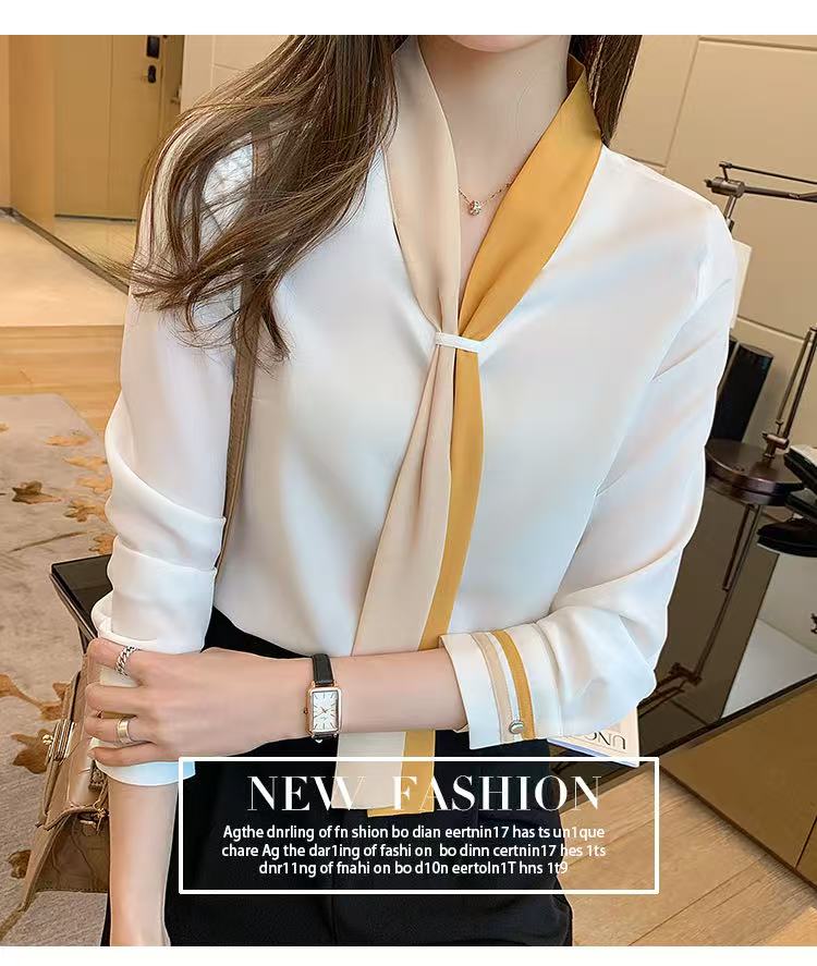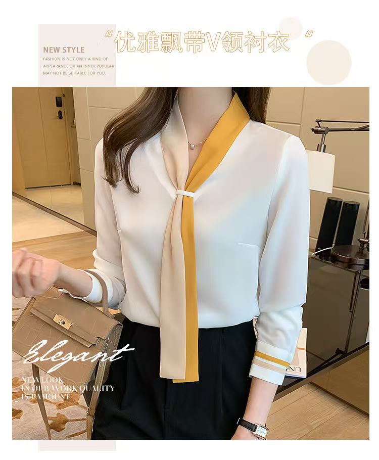 MY17592# 雪纺衫上衣v领白衬衫新款设计感小众轻熟风女装女裝貨源服裝批發