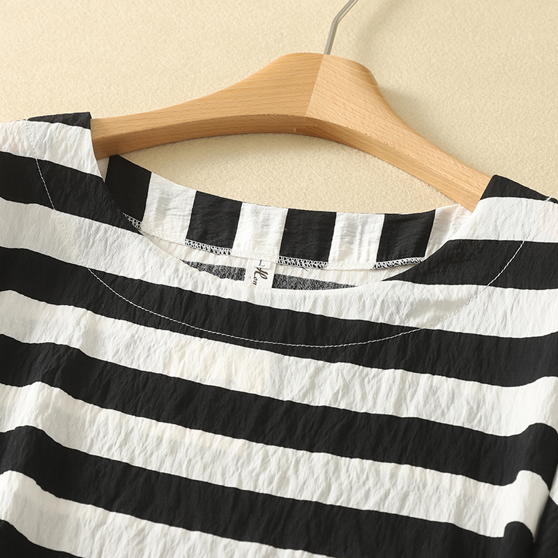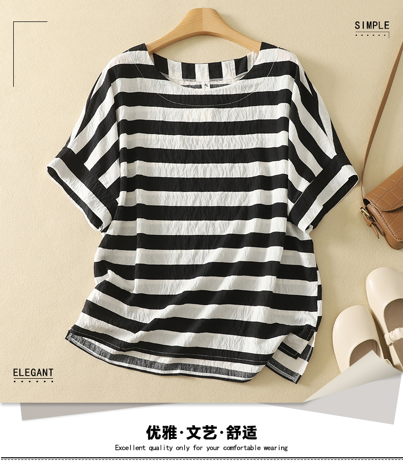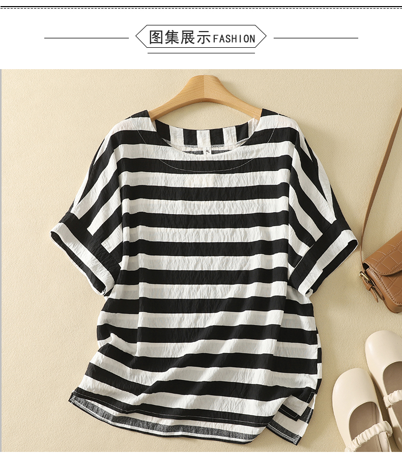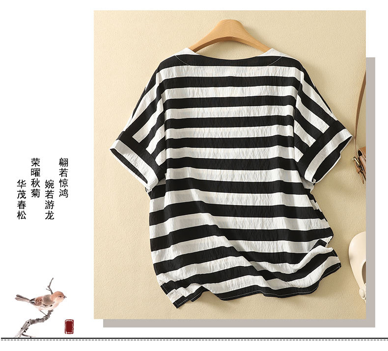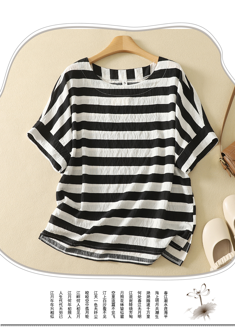MY17596# 新款丝麻数码印花短袖小衫百搭T恤上衣女女裝貨源服裝批發