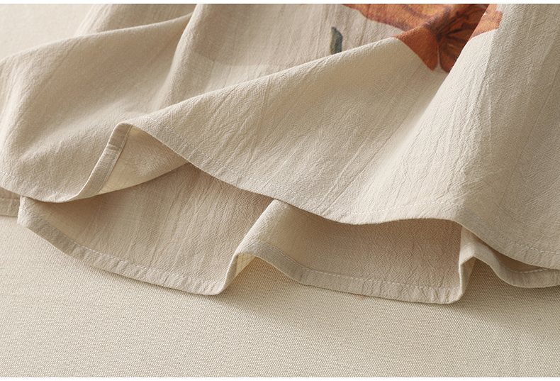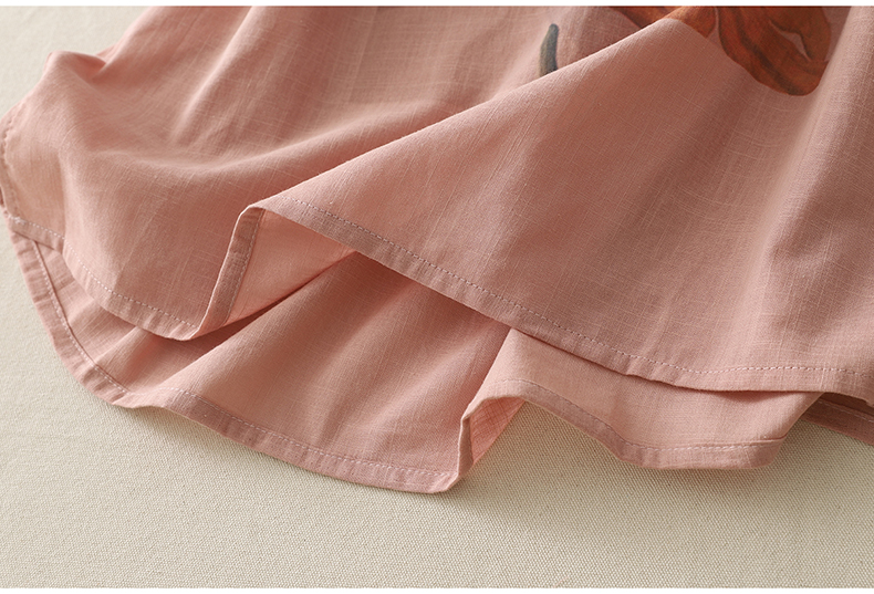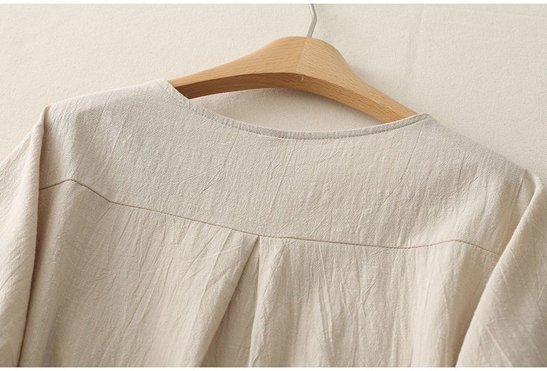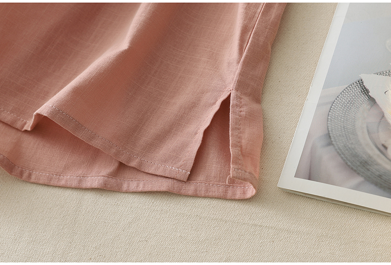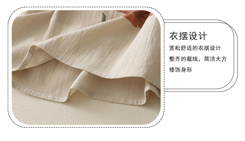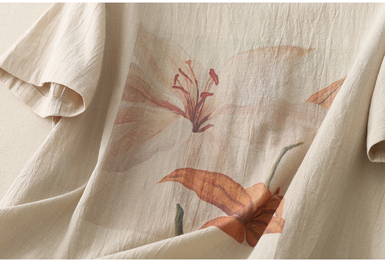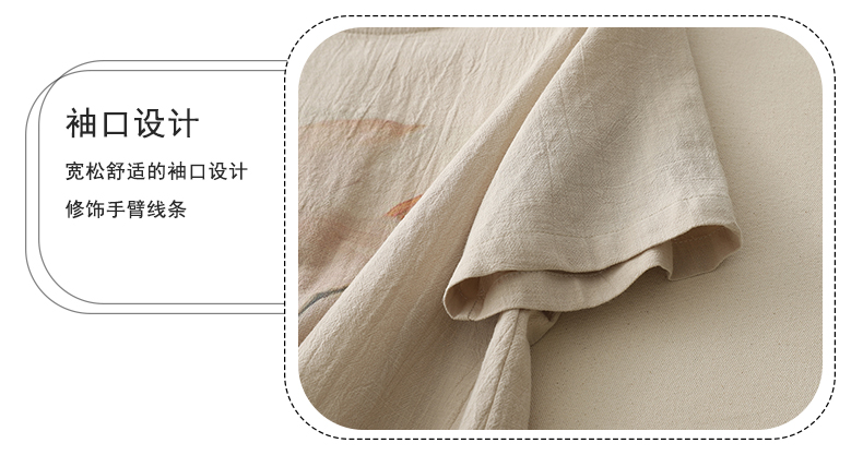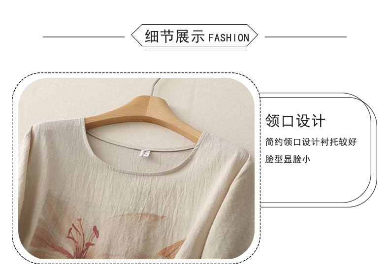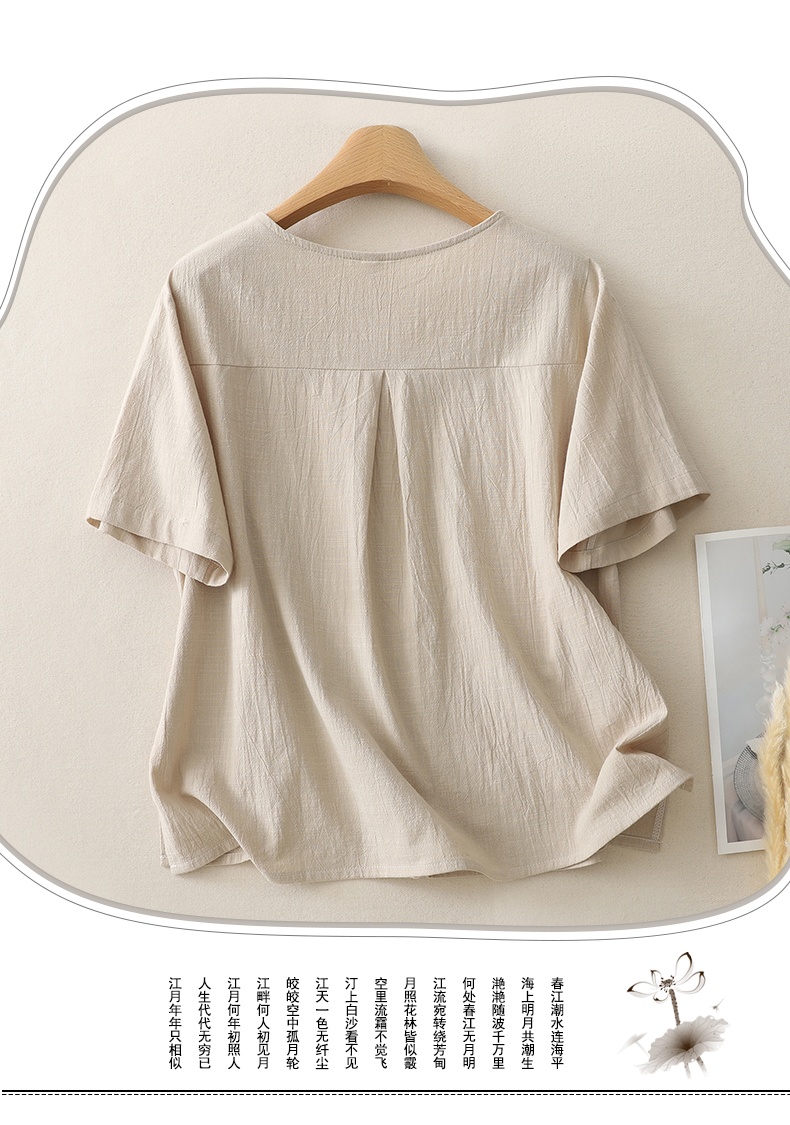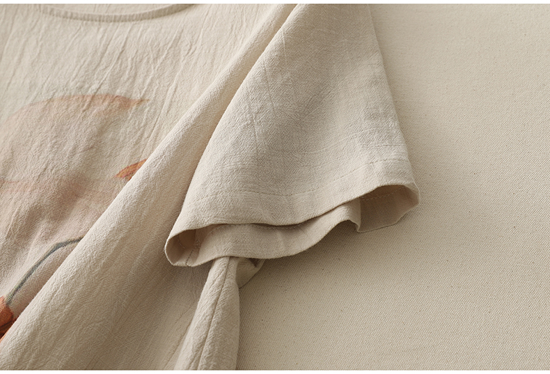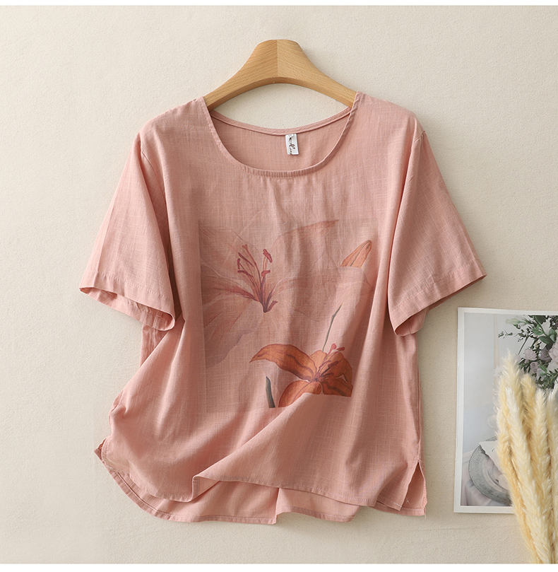 MY17599# 复古印花棉麻上衣女宽松圆领短袖套头衫休闲百搭T恤女裝貨源服裝批發