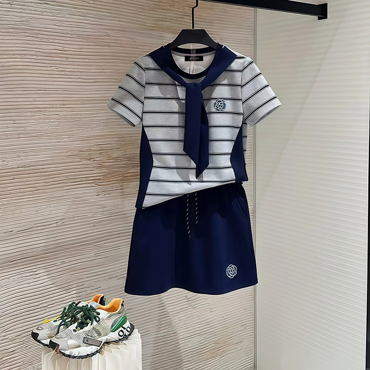 RY70068# 高含棉小个子休闲慵懒风套装女2026夏季显瘦上衣短裙两件套