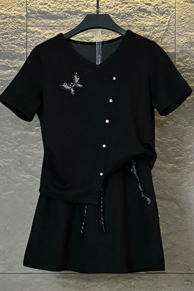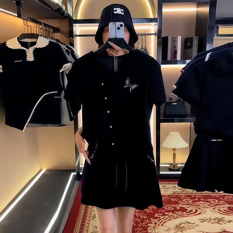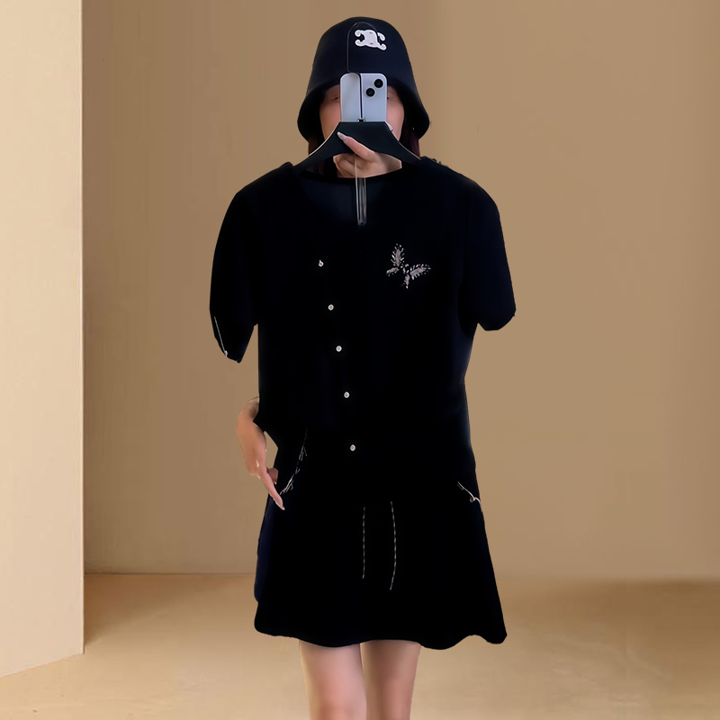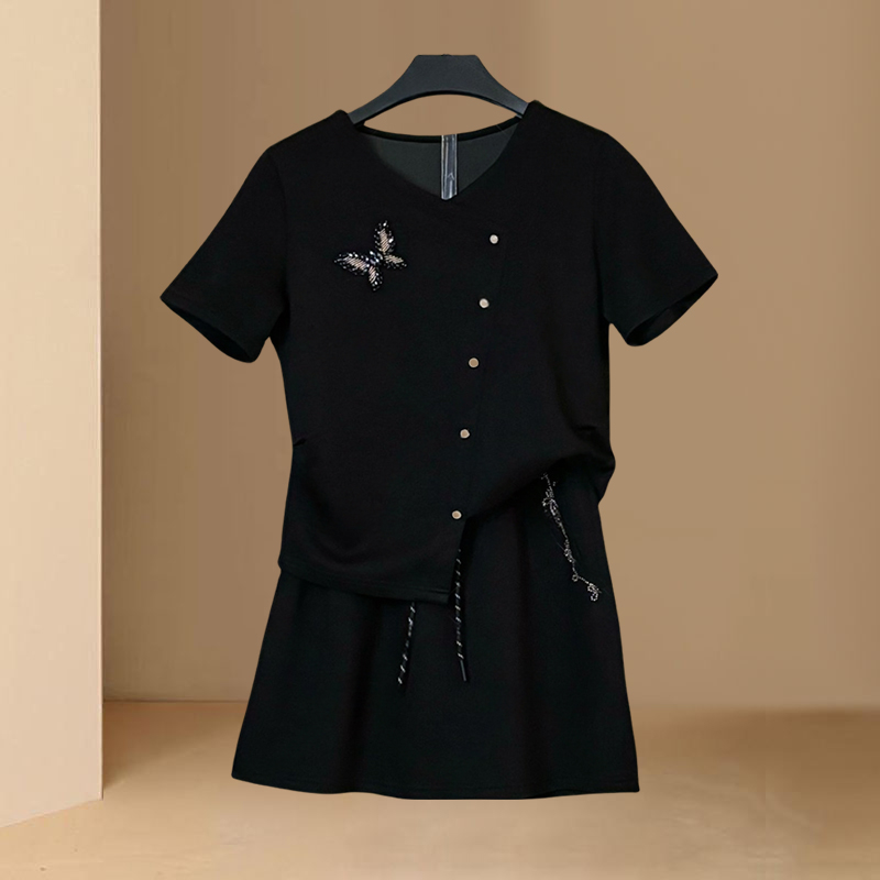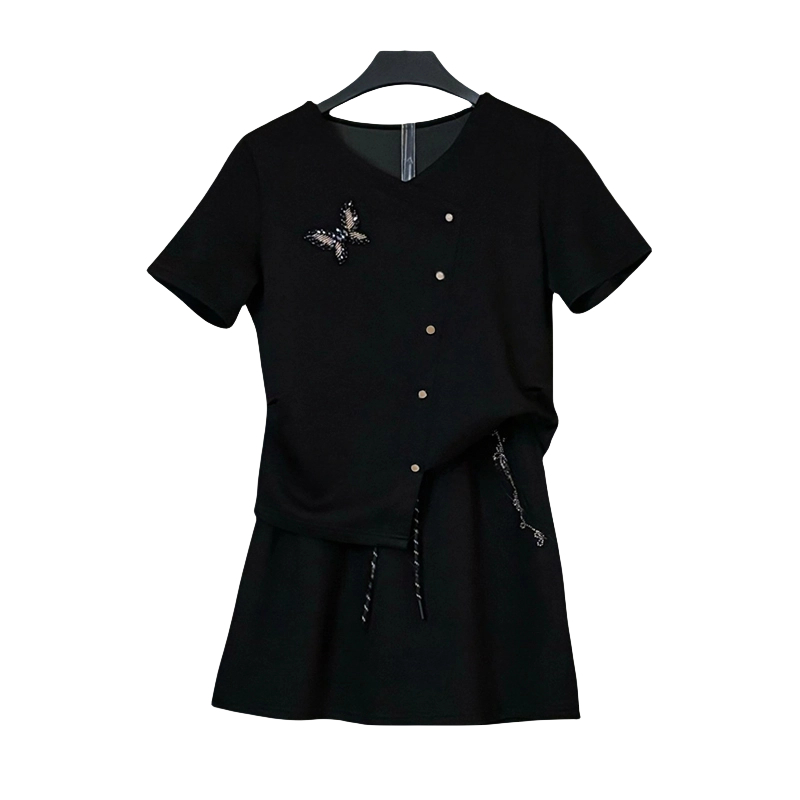 RY70072# 高含棉时尚设计感套装女2026夏季新款不规则短袖短裙两件套