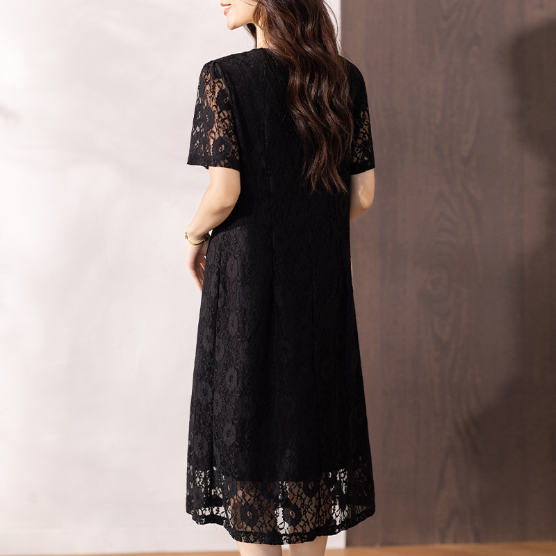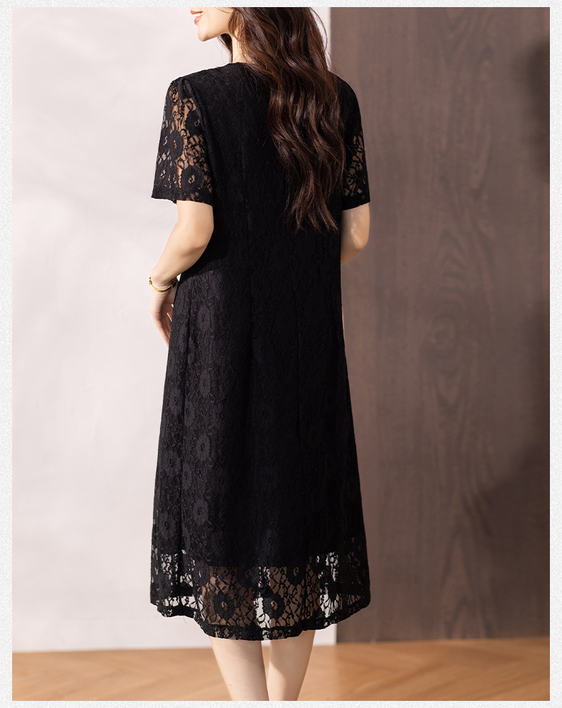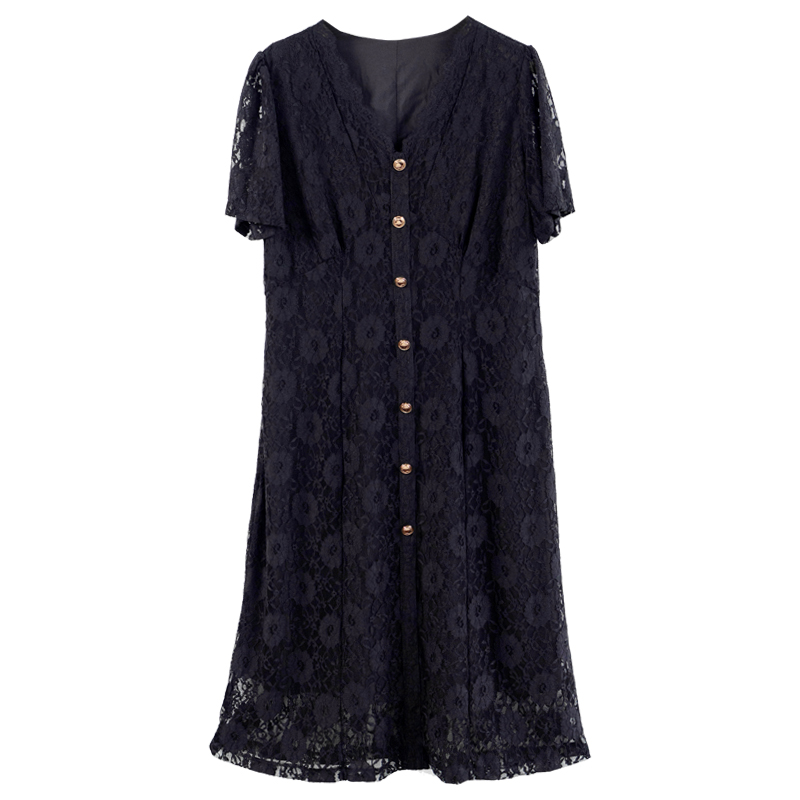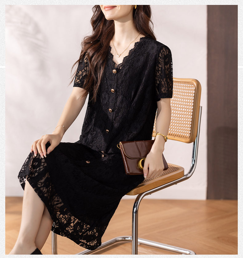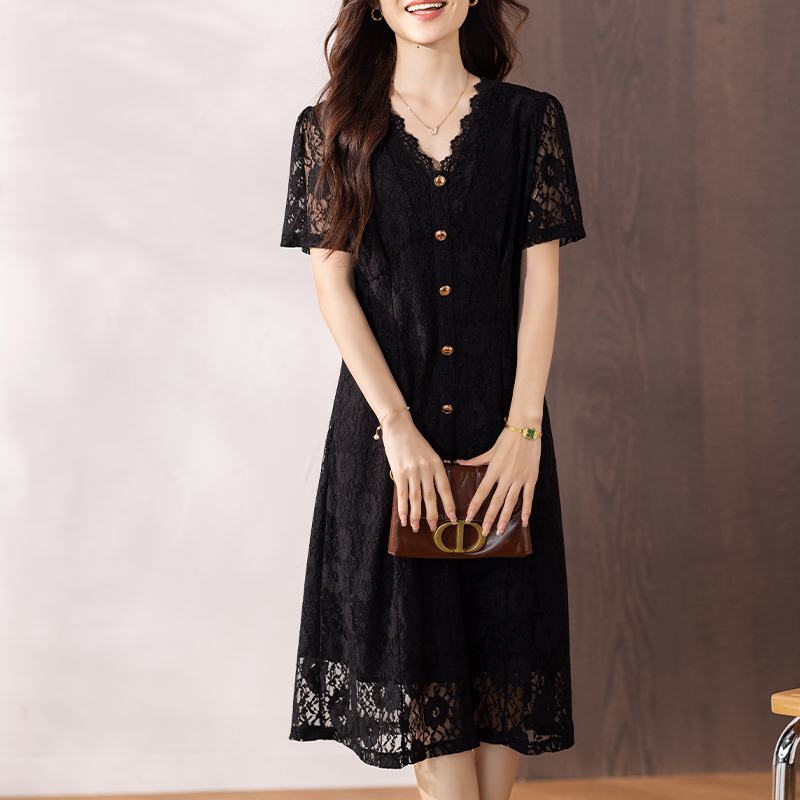 RY16# 女装夏季新款微胖高级感轻奢V领蕾丝连衣裙