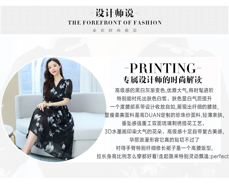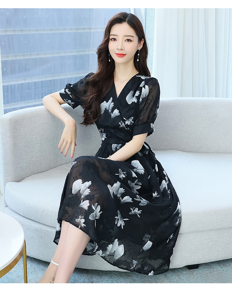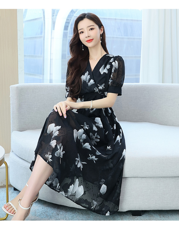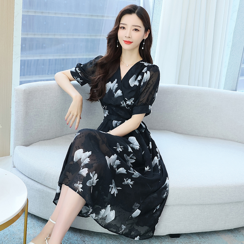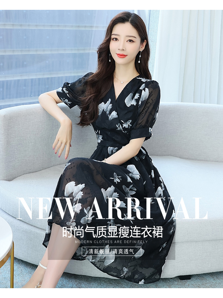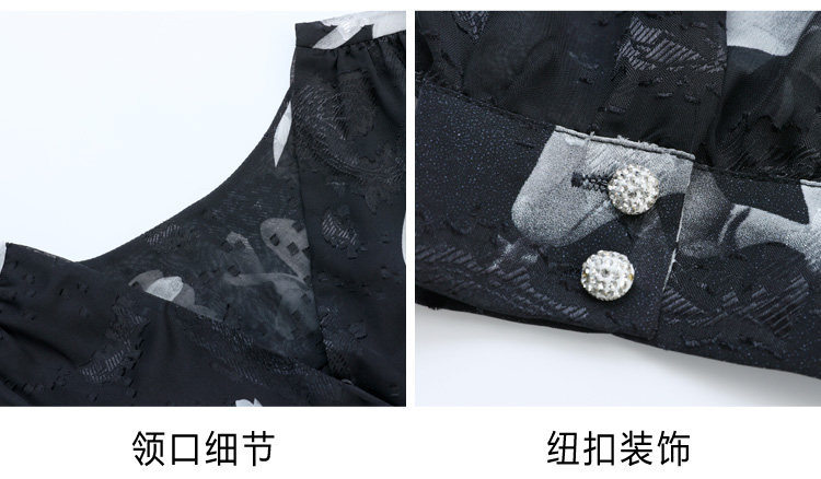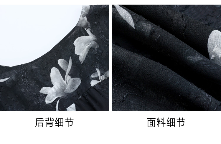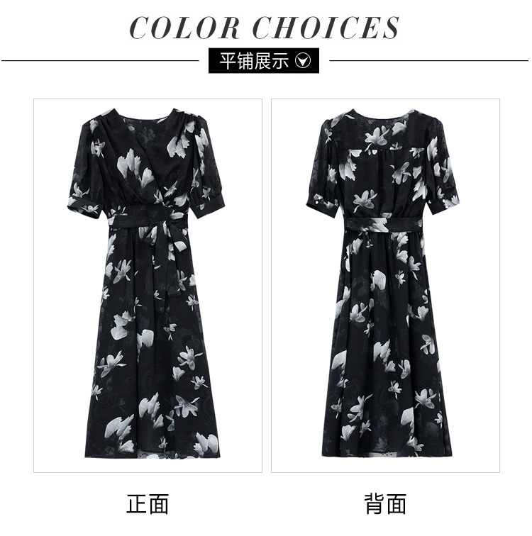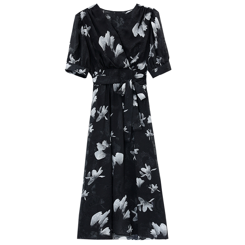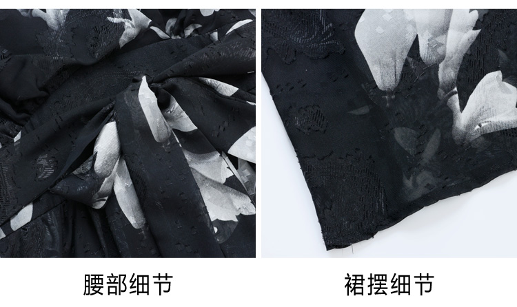 RY41# 实拍黑色碎花连衣裙女夏季新款法式气质收腰显瘦高级感绝美长裙子