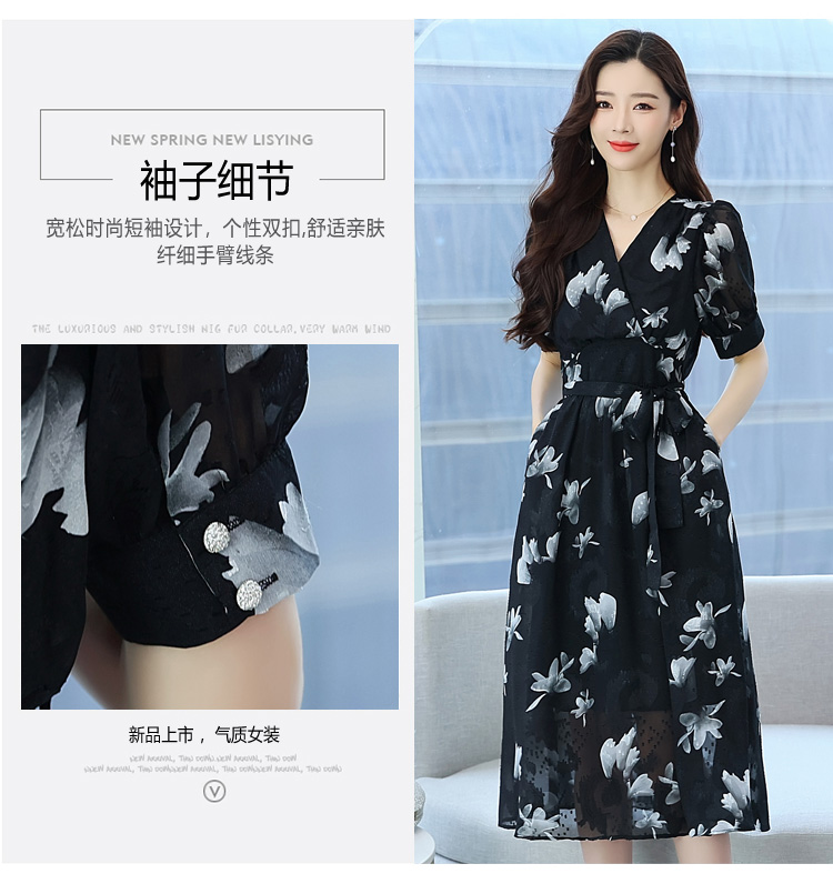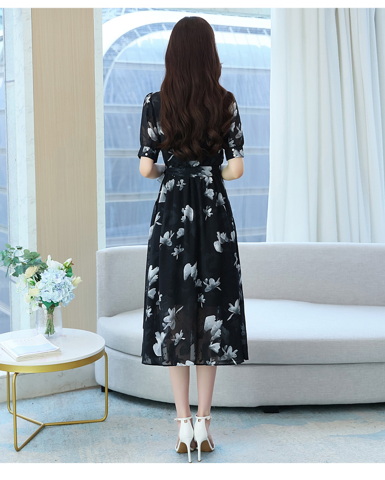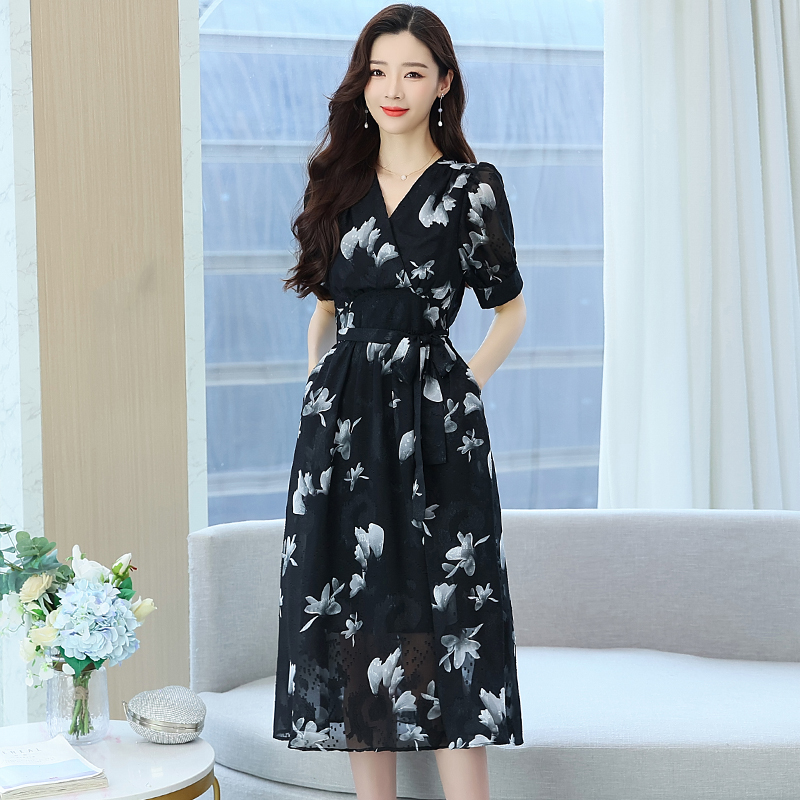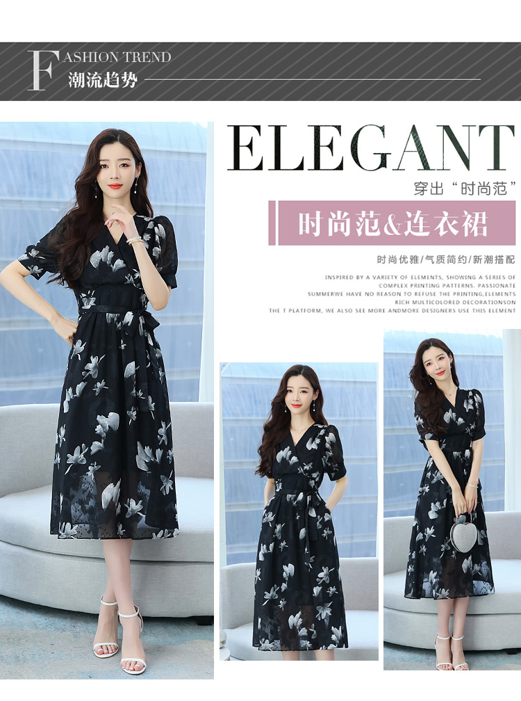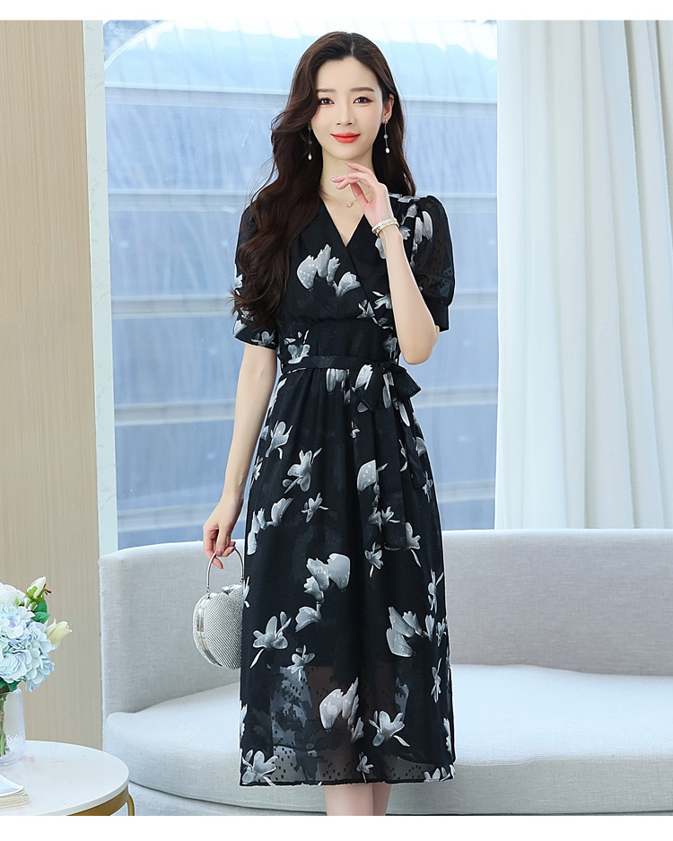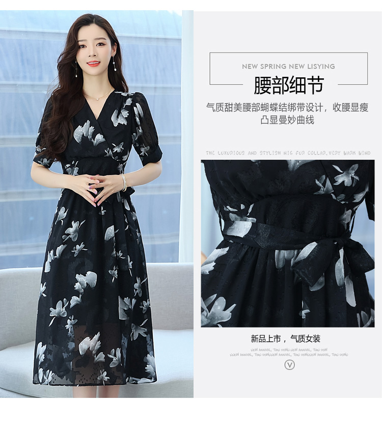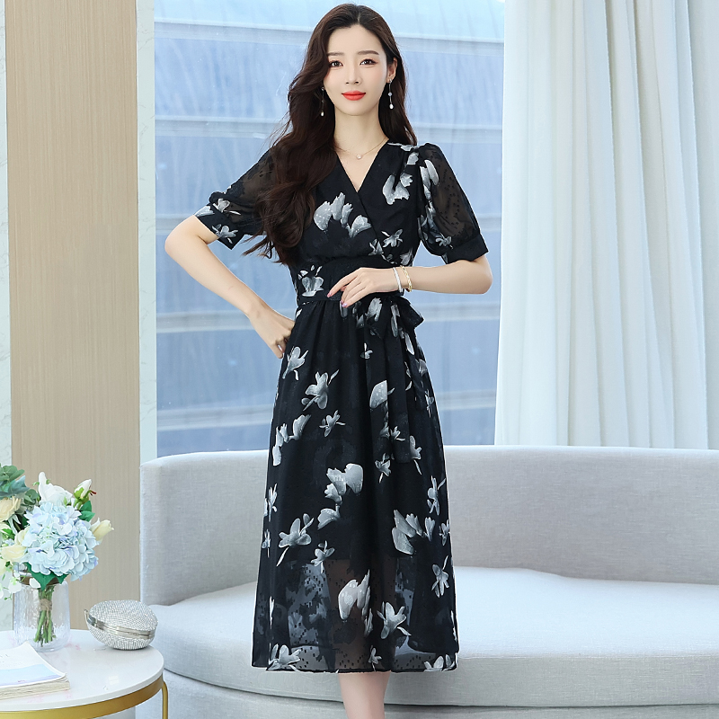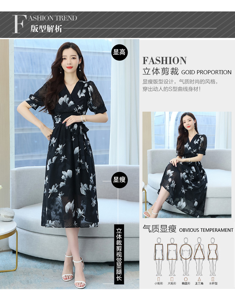 RY41# 实拍黑色碎花连衣裙女夏季新款法式气质收腰显瘦高级感绝美长裙子