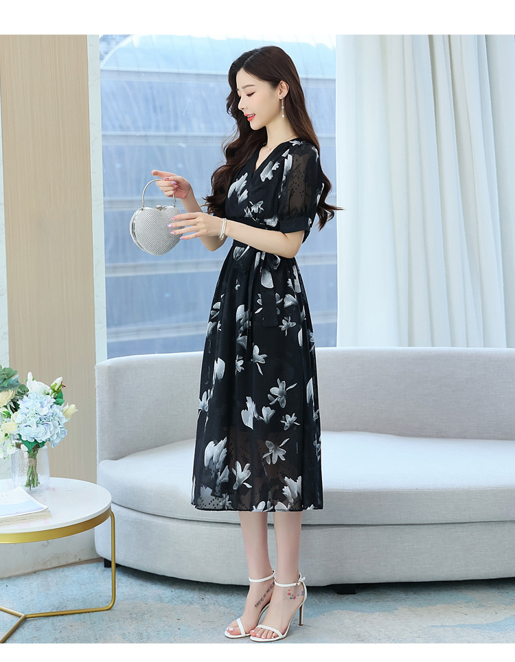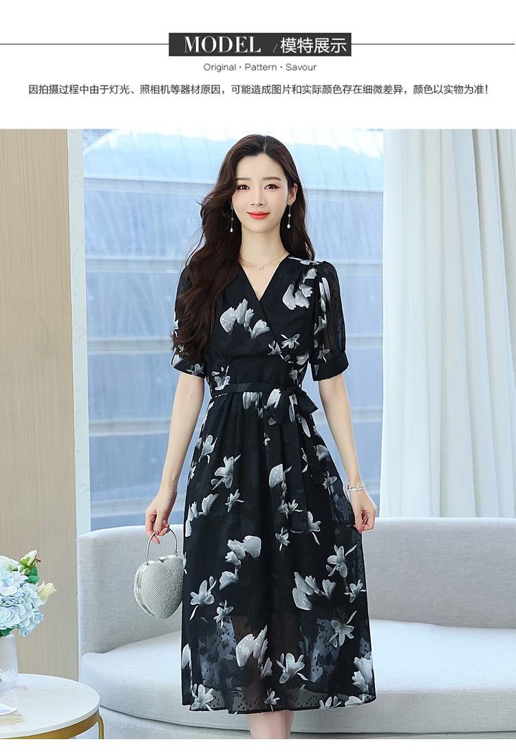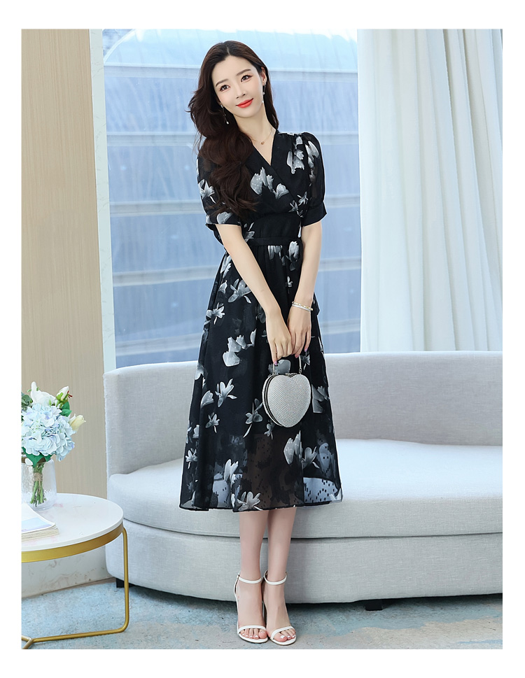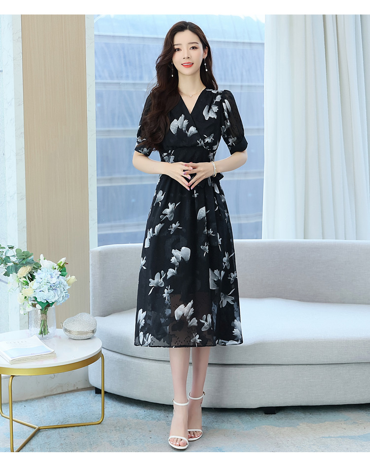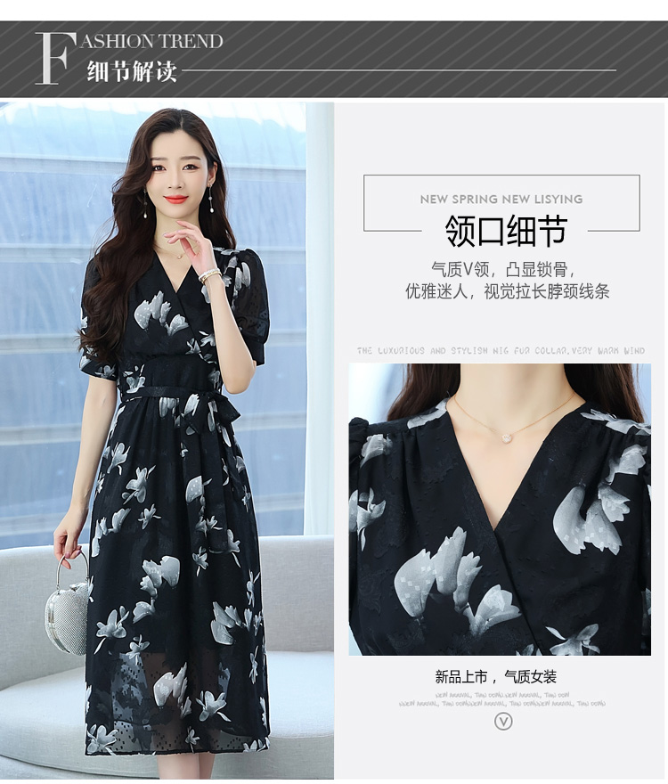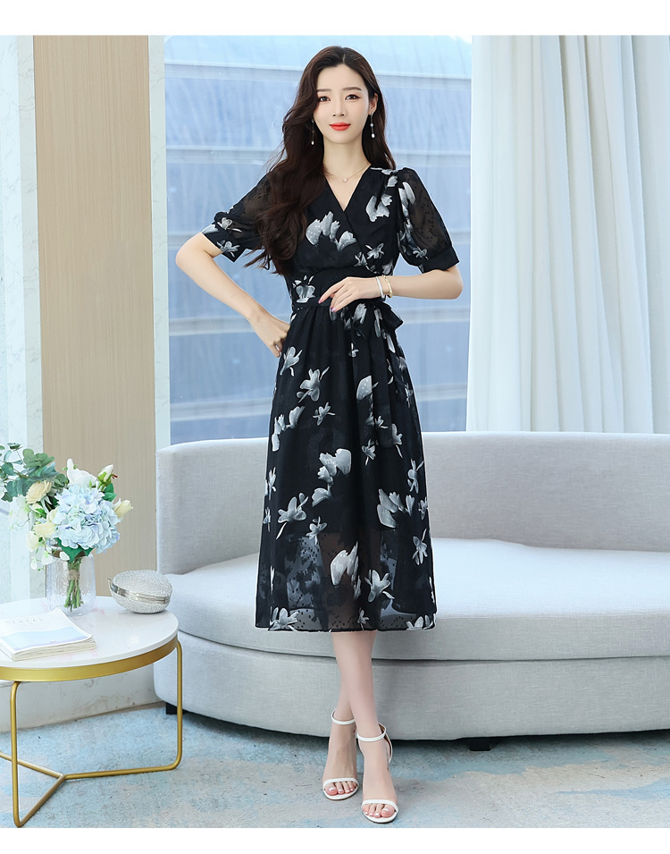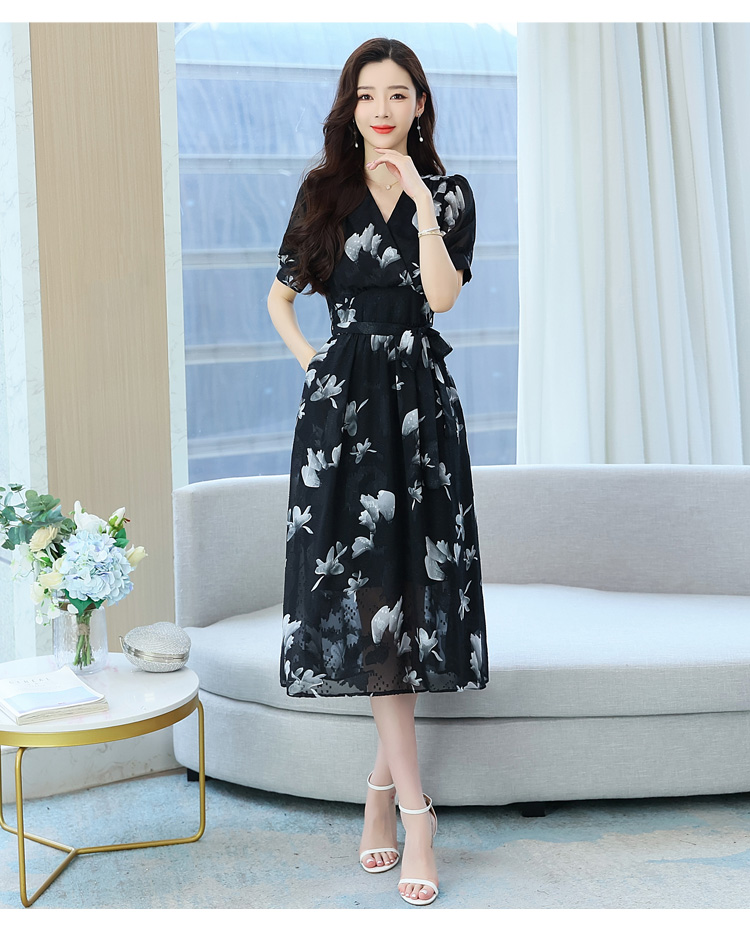 RY41# 实拍黑色碎花连衣裙女夏季新款法式气质收腰显瘦高级感绝美长裙子