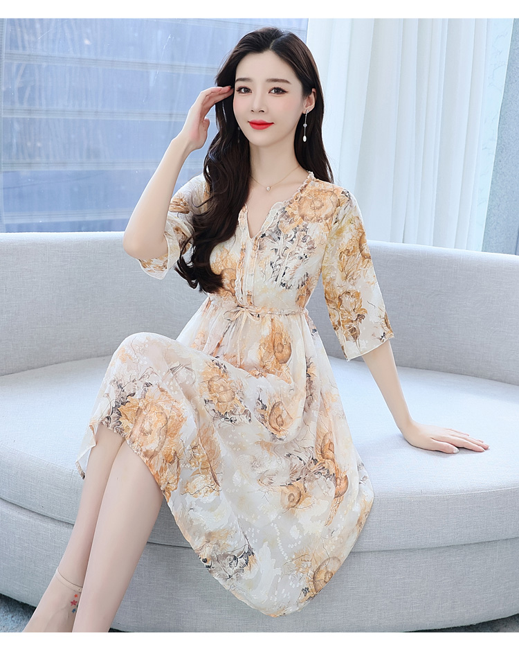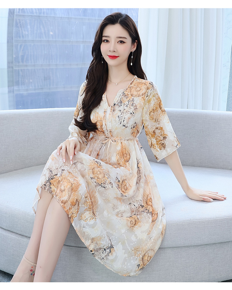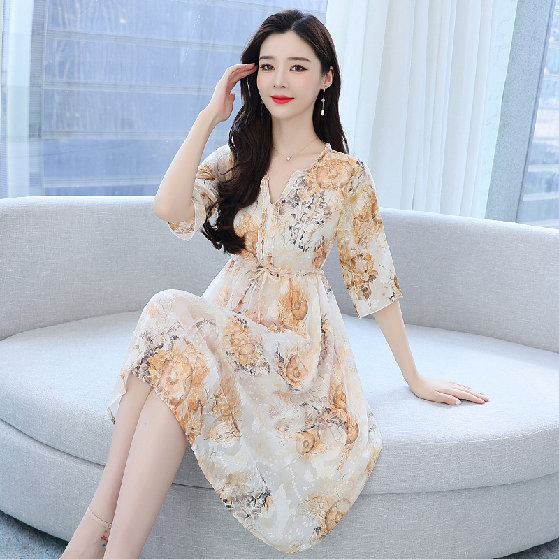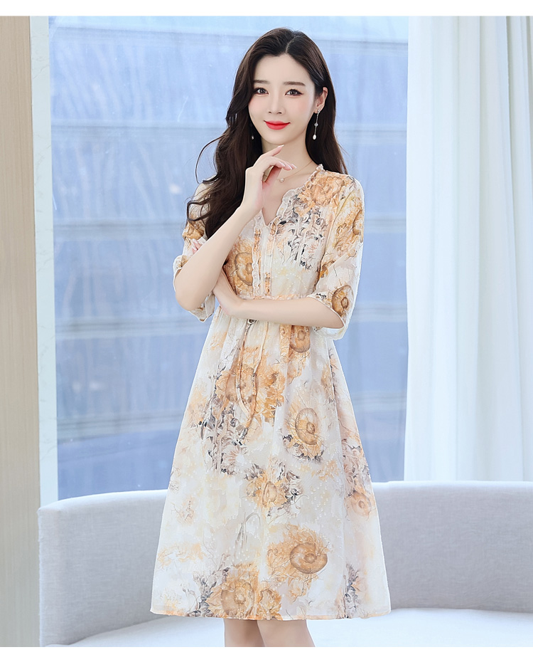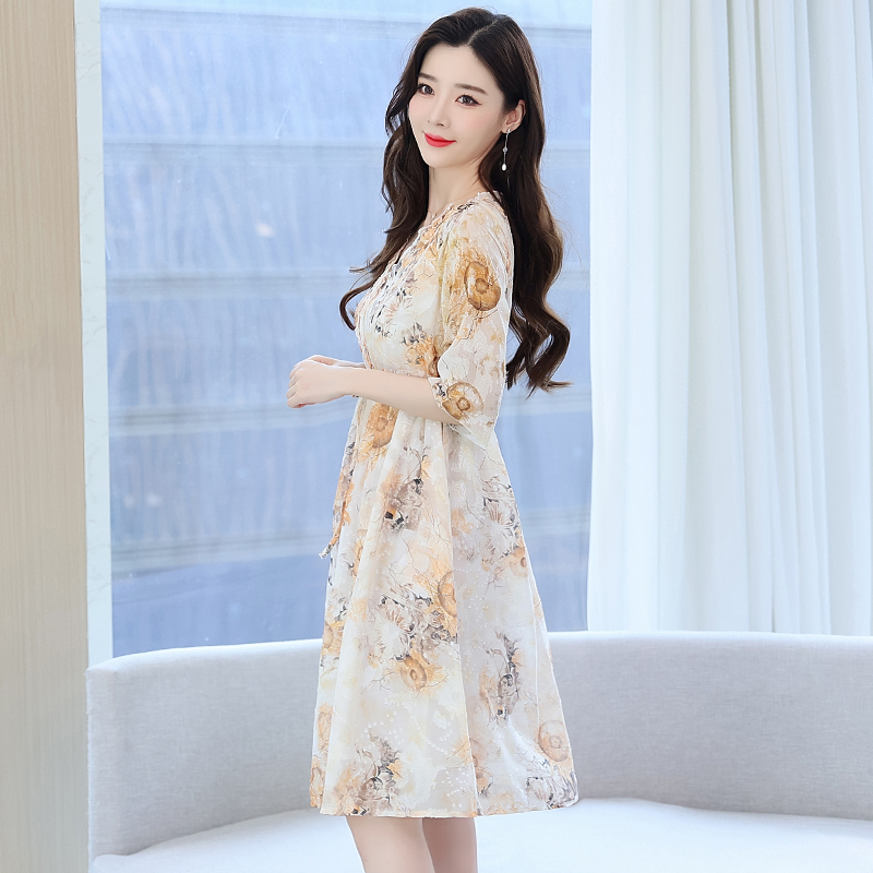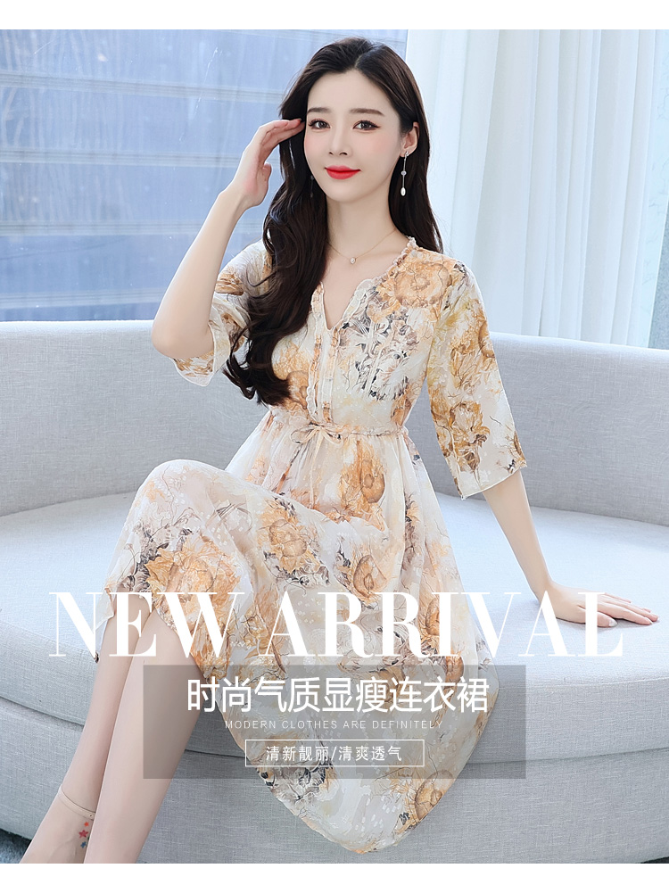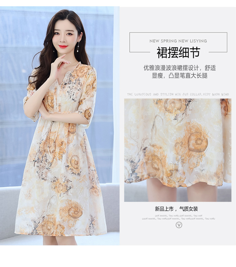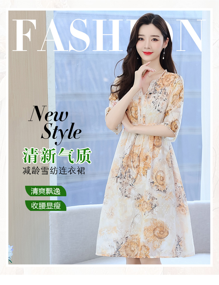 RY50# 实拍妈妈连衣裙夏季气质中老年女装洋气新款阔太太雪纺碎花裙子