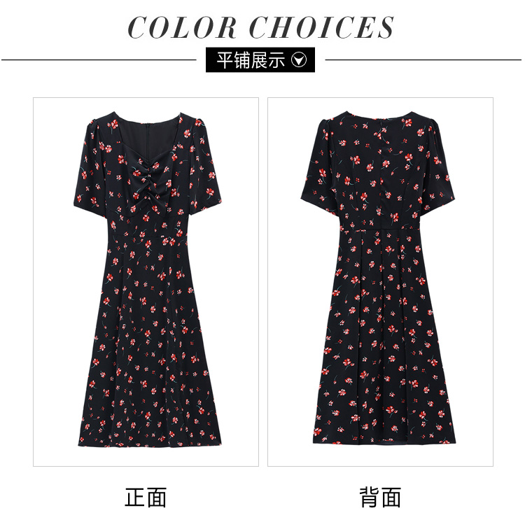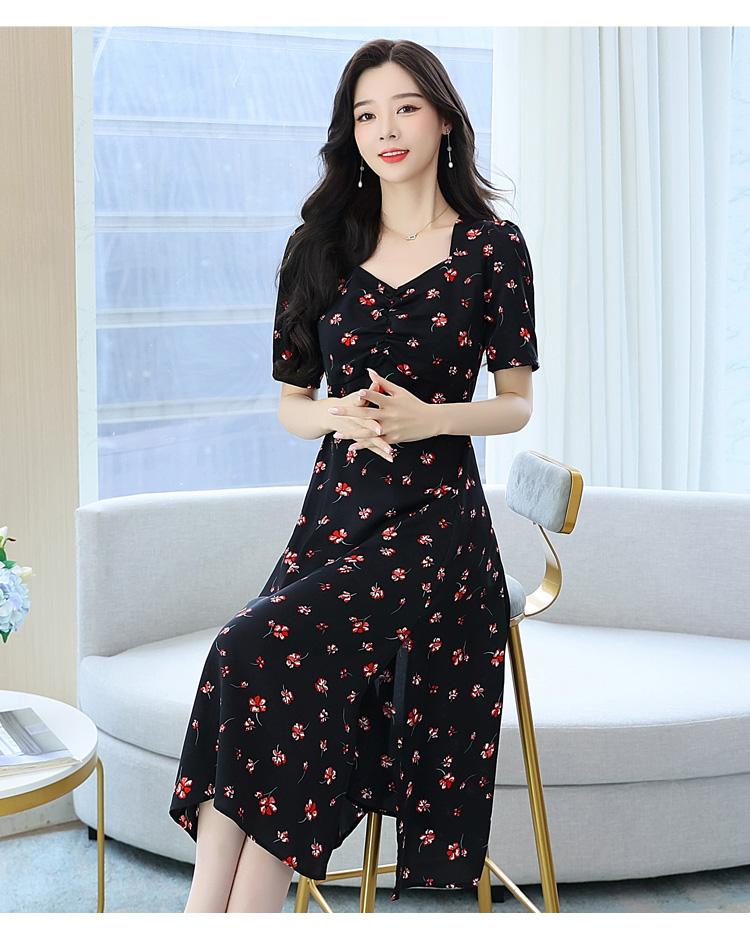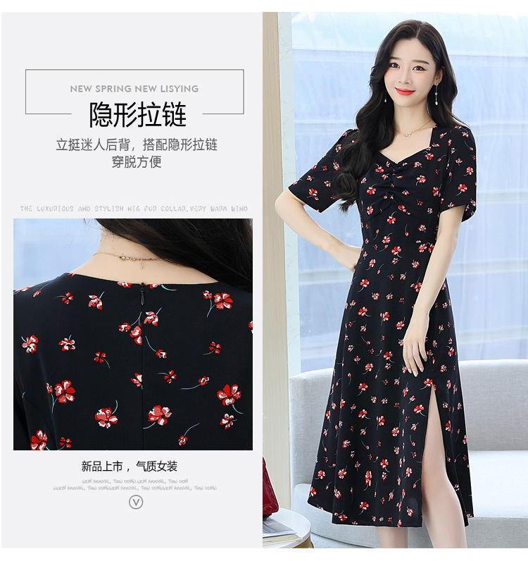 RY51# 实拍大码女装连衣裙2026新款夏装微胖mm遮肚显瘦V领开叉碎花a字裙