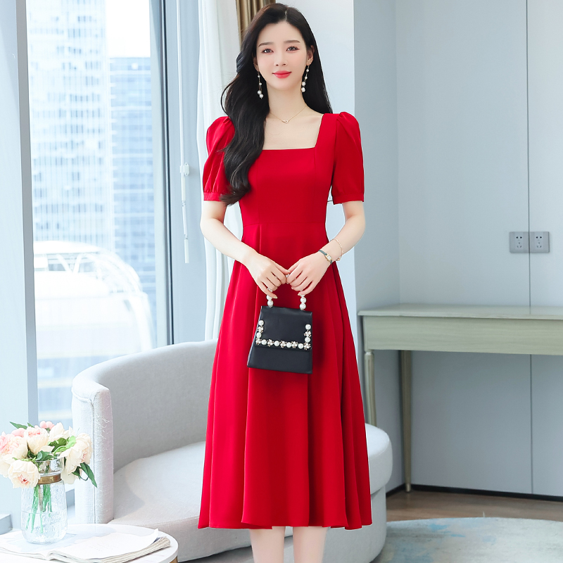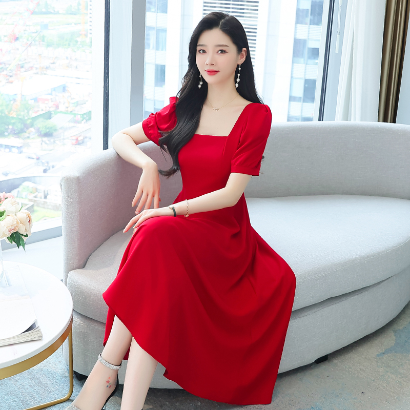 RY61# 实拍红色连衣裙女2026夏装新款方领法式复古气质泡泡袖订婚裙
