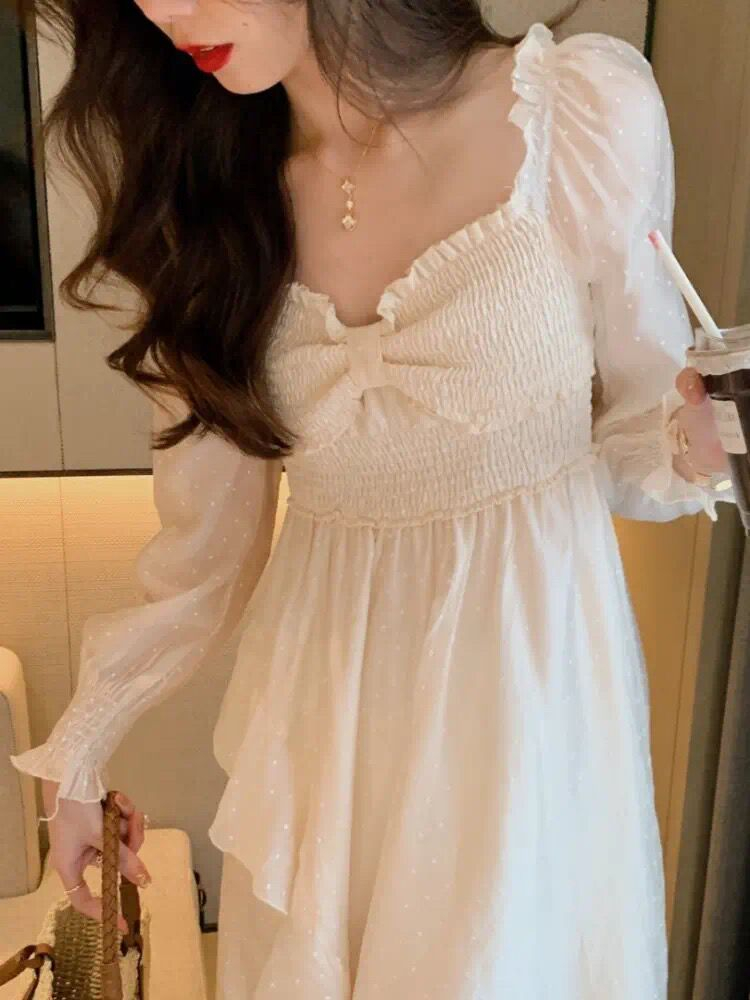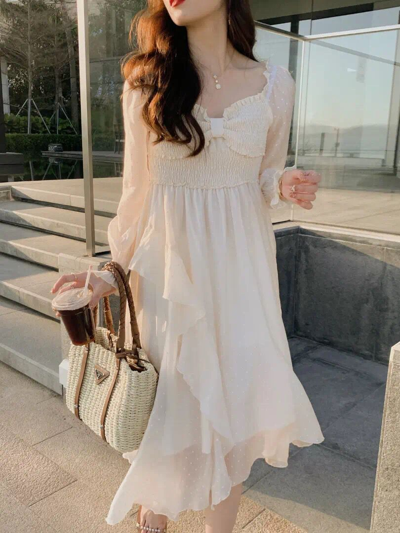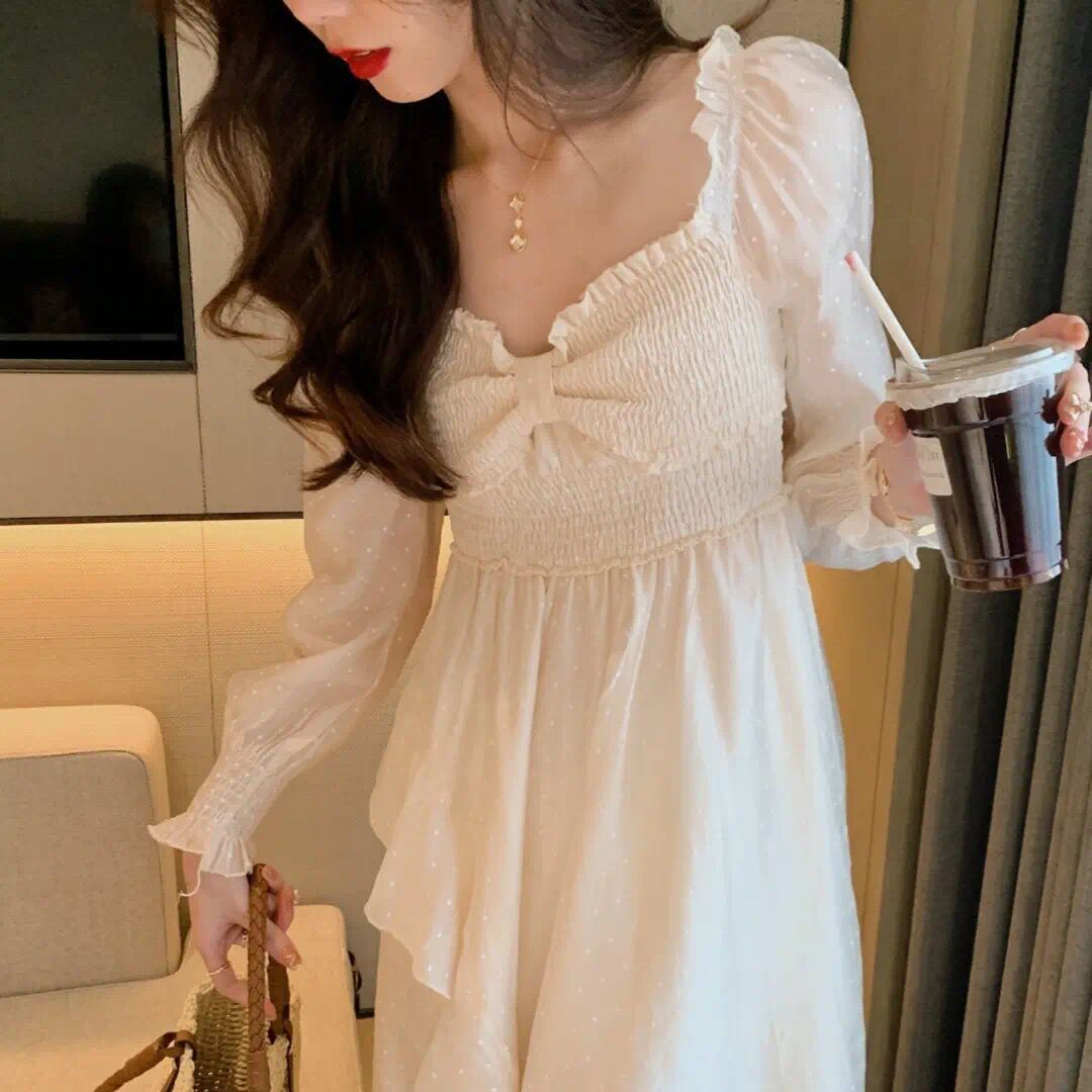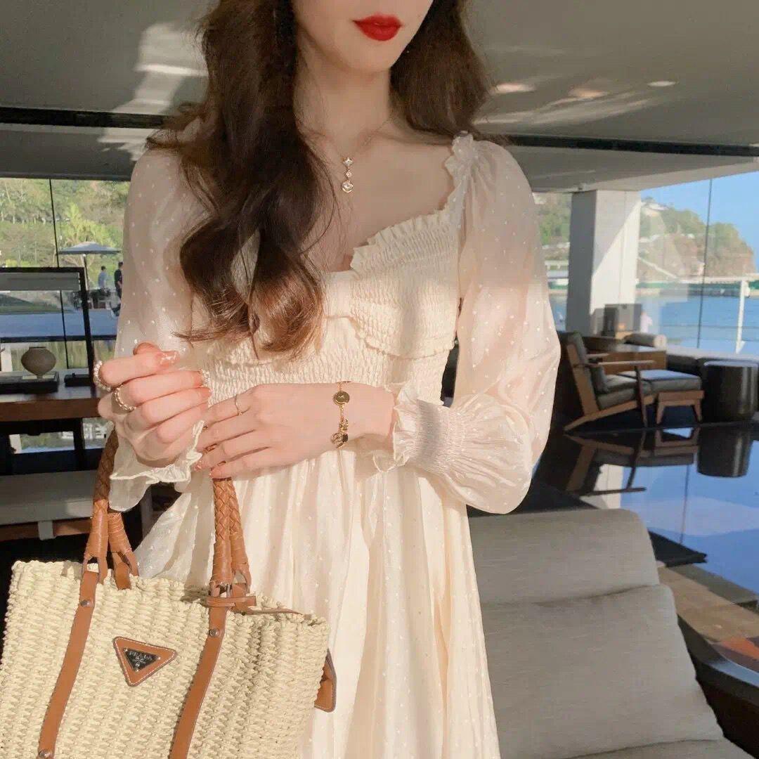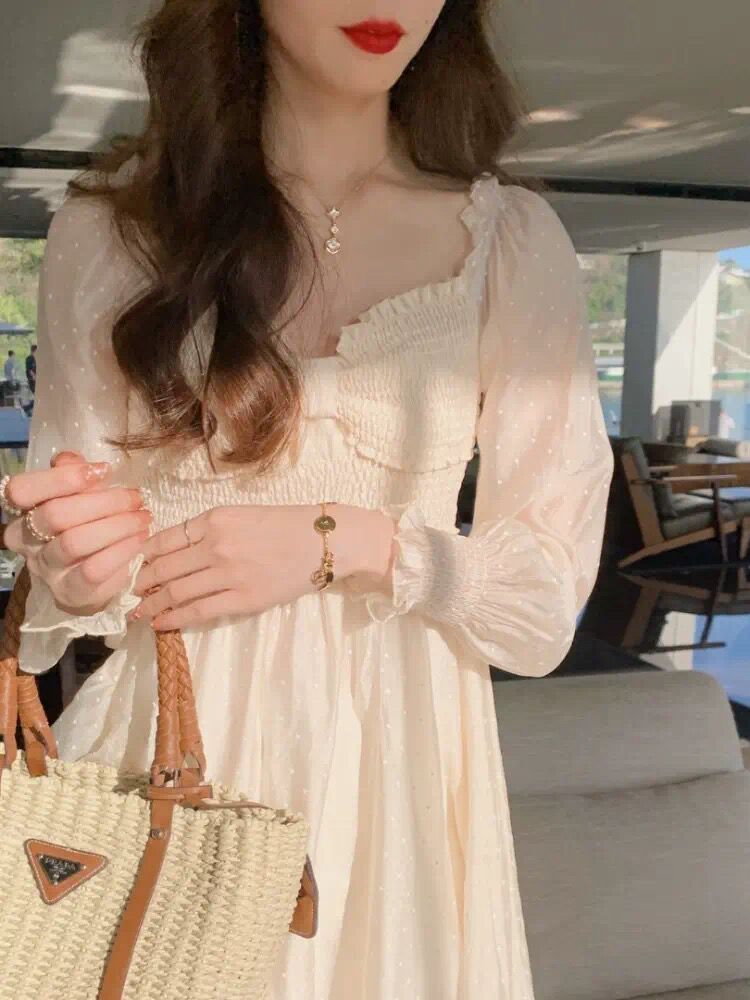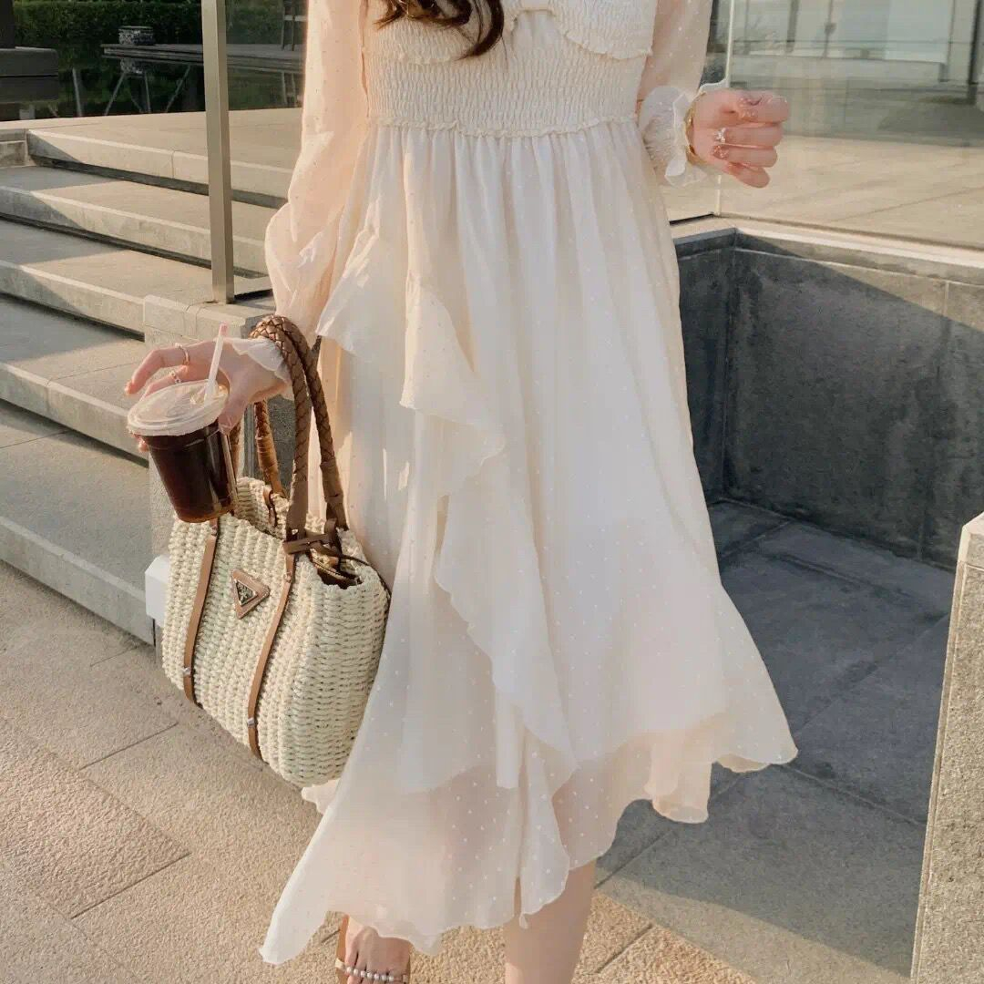 RY63# 法式气质优雅收腰裙子2026年春季新款小众设计感仙气飘飘连衣裙女