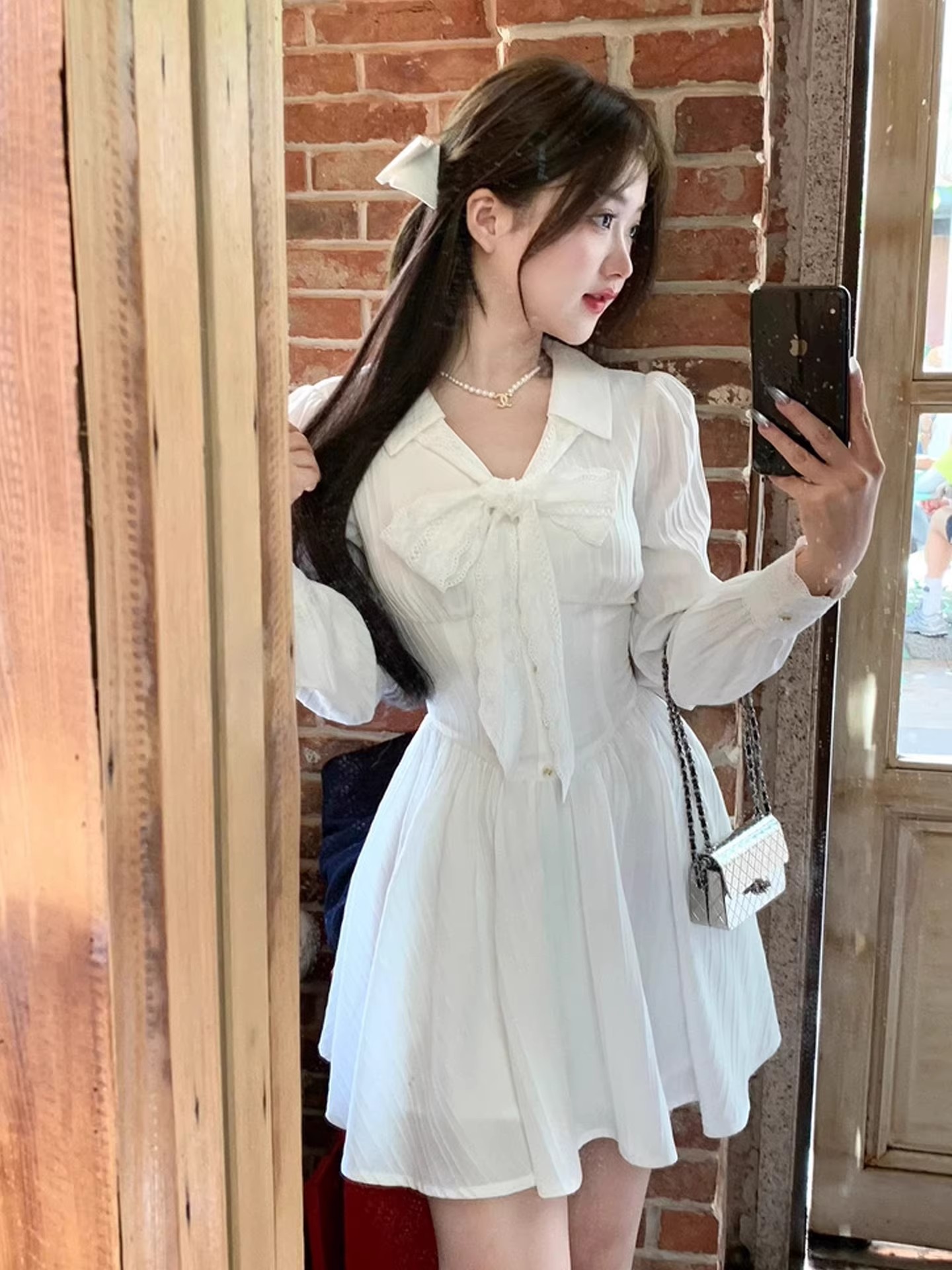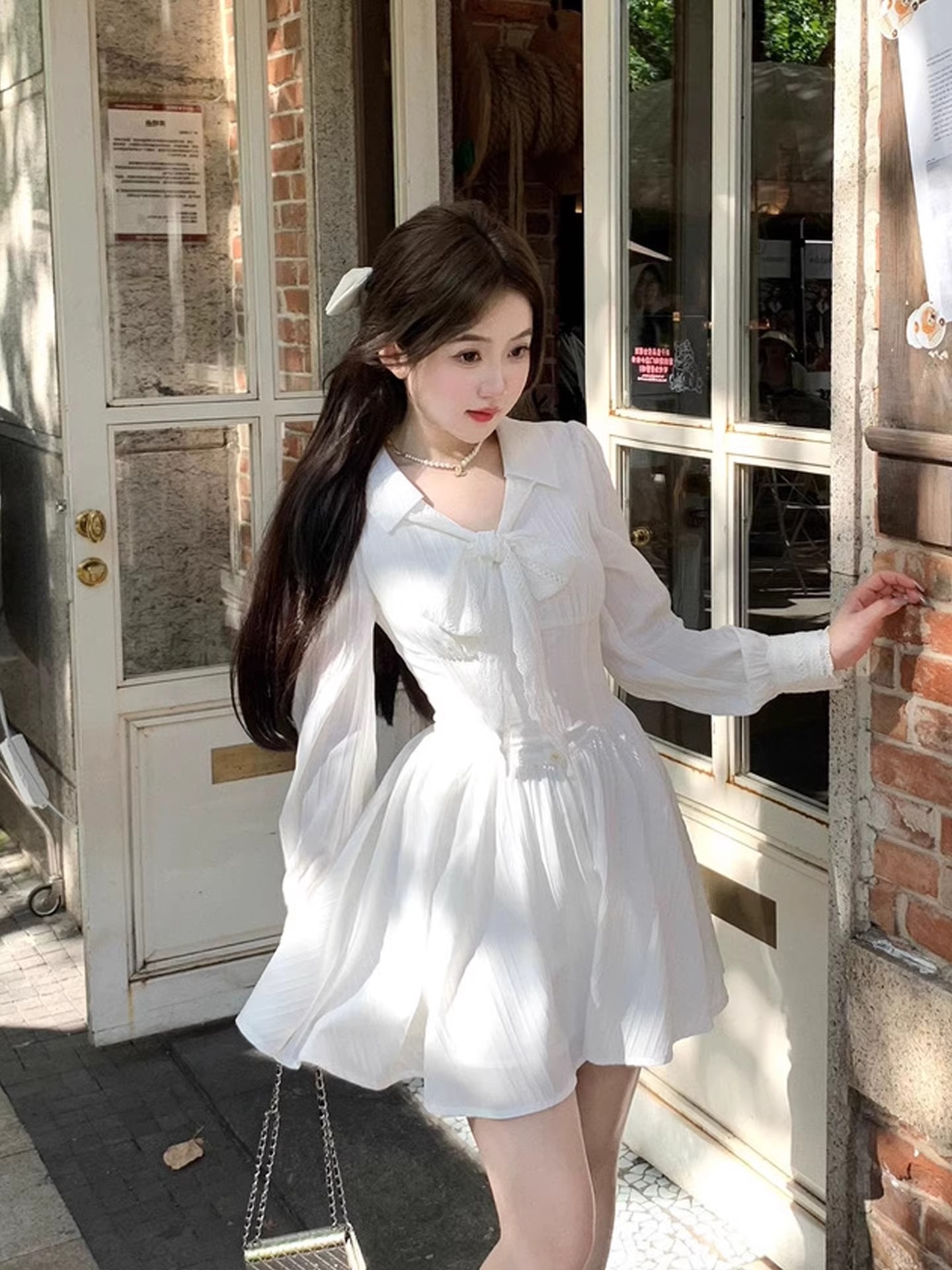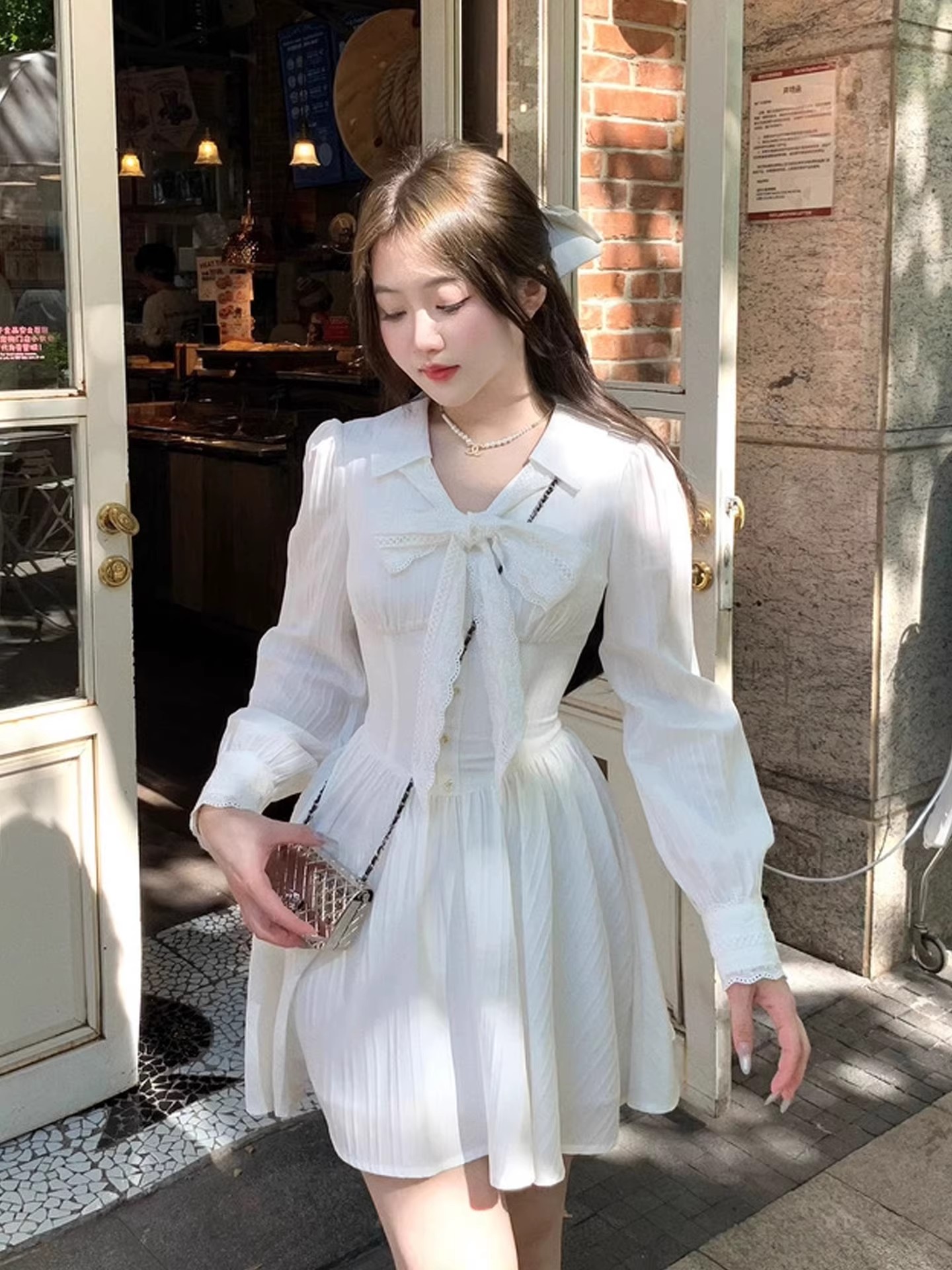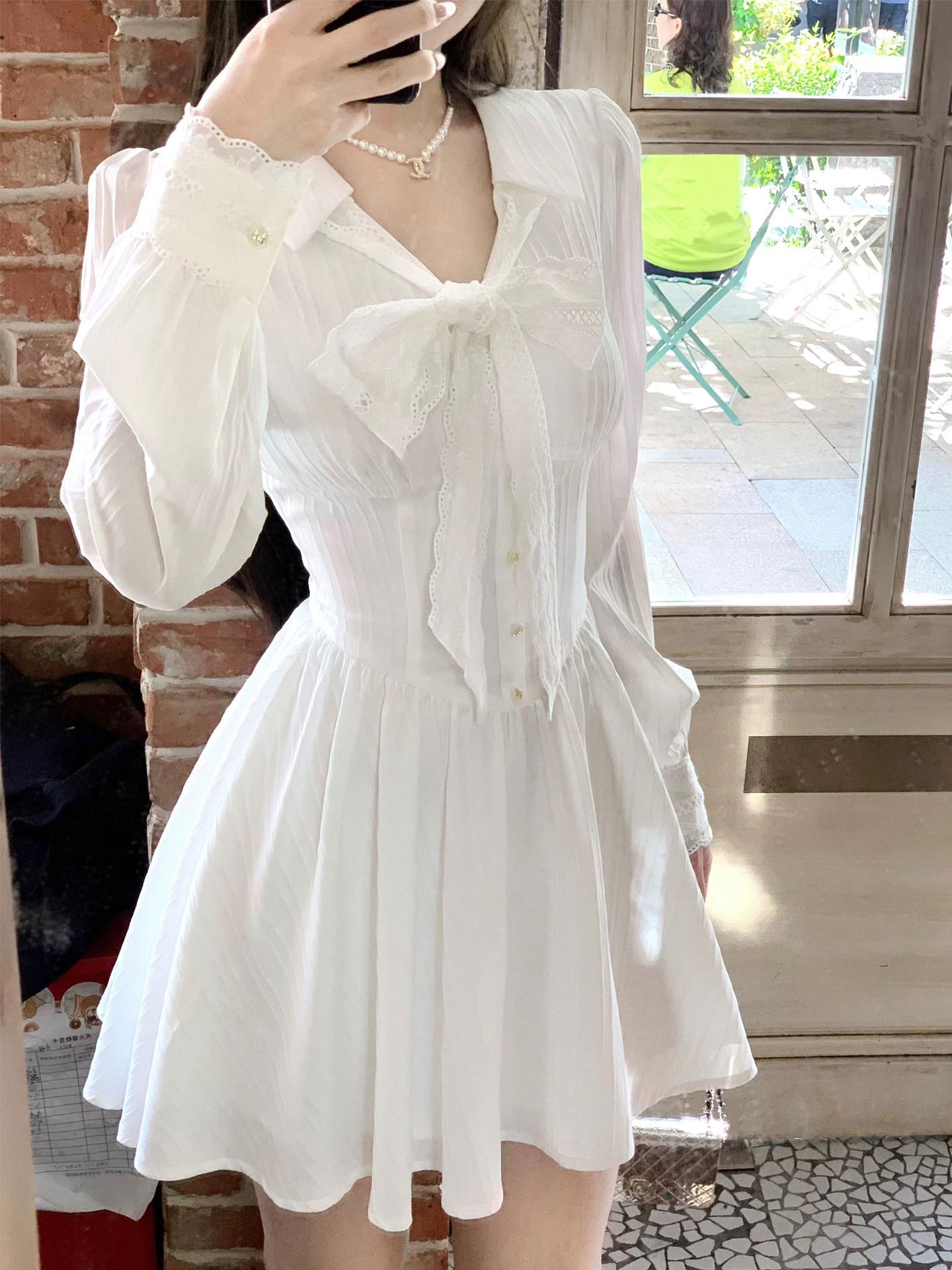 RY84# 双层套里悸动小白裙花边长袖衬衫连衣裙法式绝美白色春夏短裙穿搭