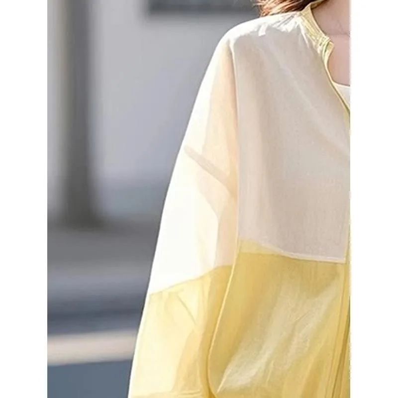 RY93# 2026夏新款设计感撞色拼接防晒衣短外套女松弛感宽松百搭长袖上衣