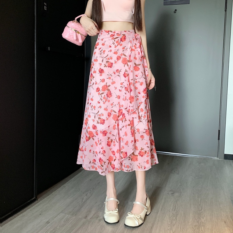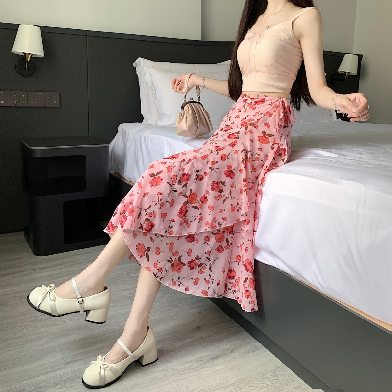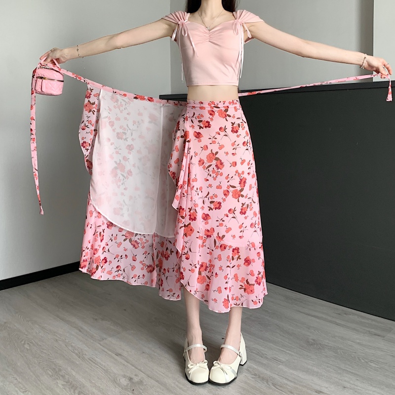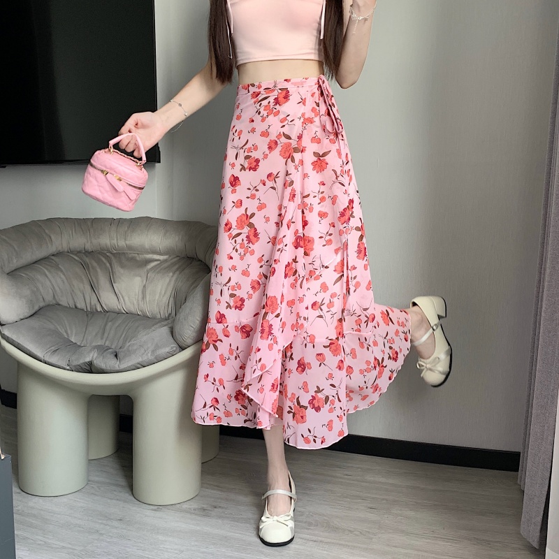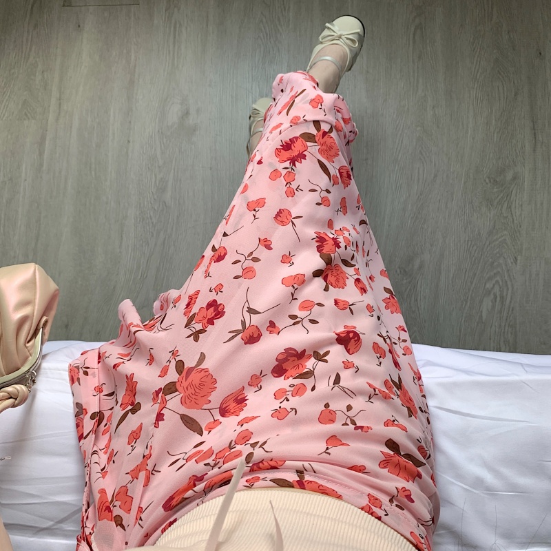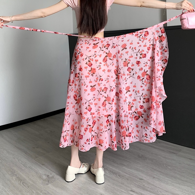 RY108# 实拍甜美温柔风碎花雪纺半身裙一片式荷叶边围裙包臀沙滩裙
