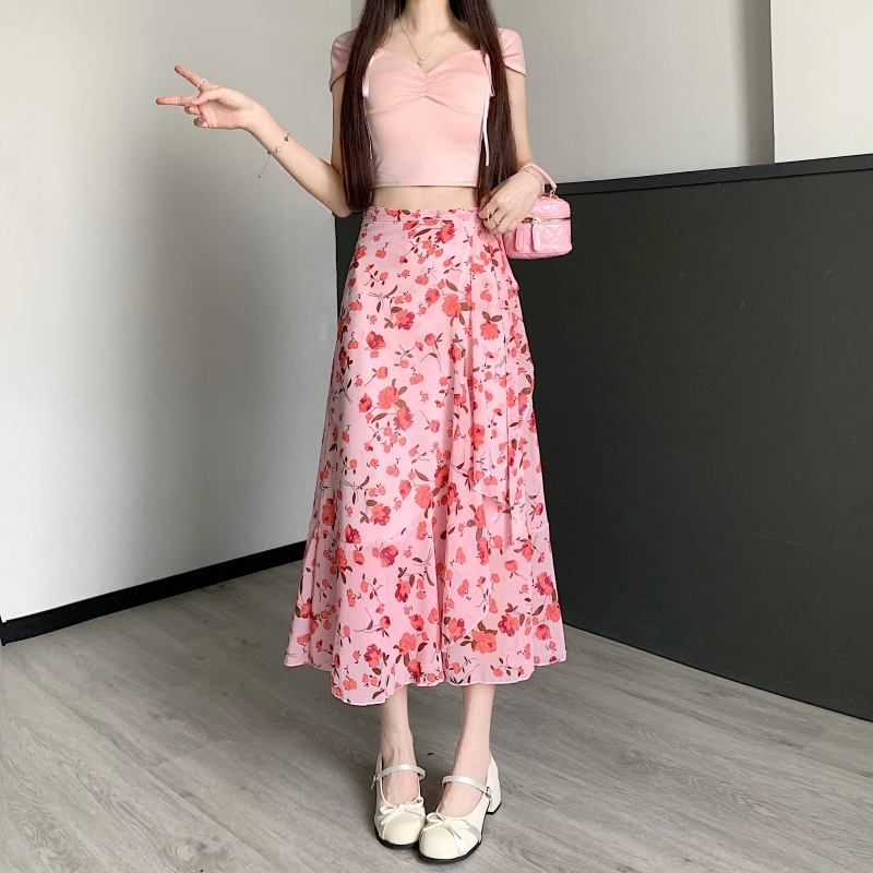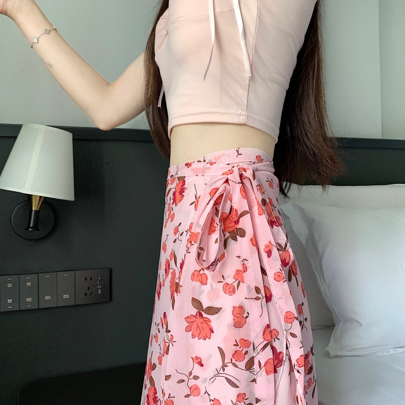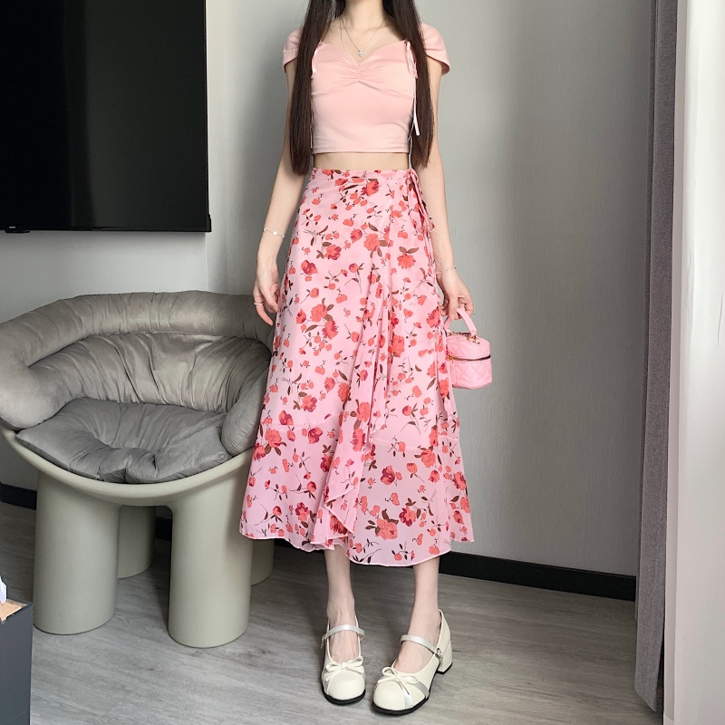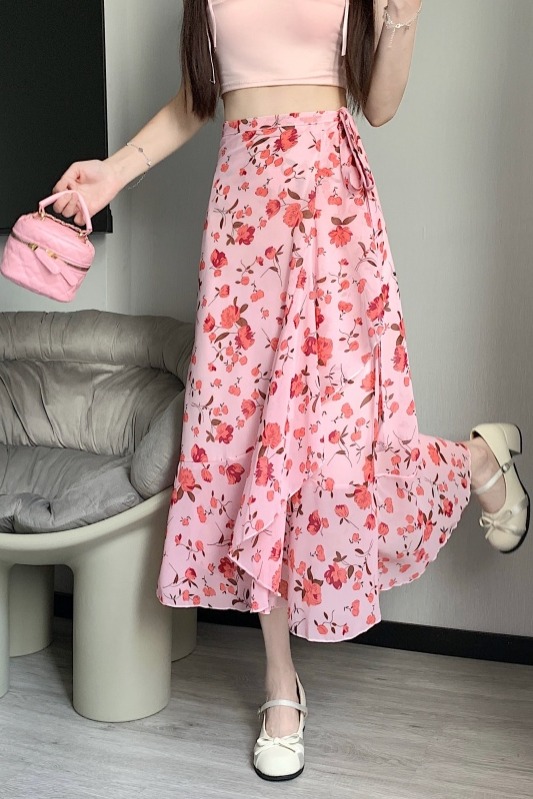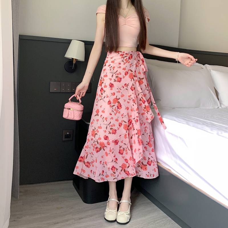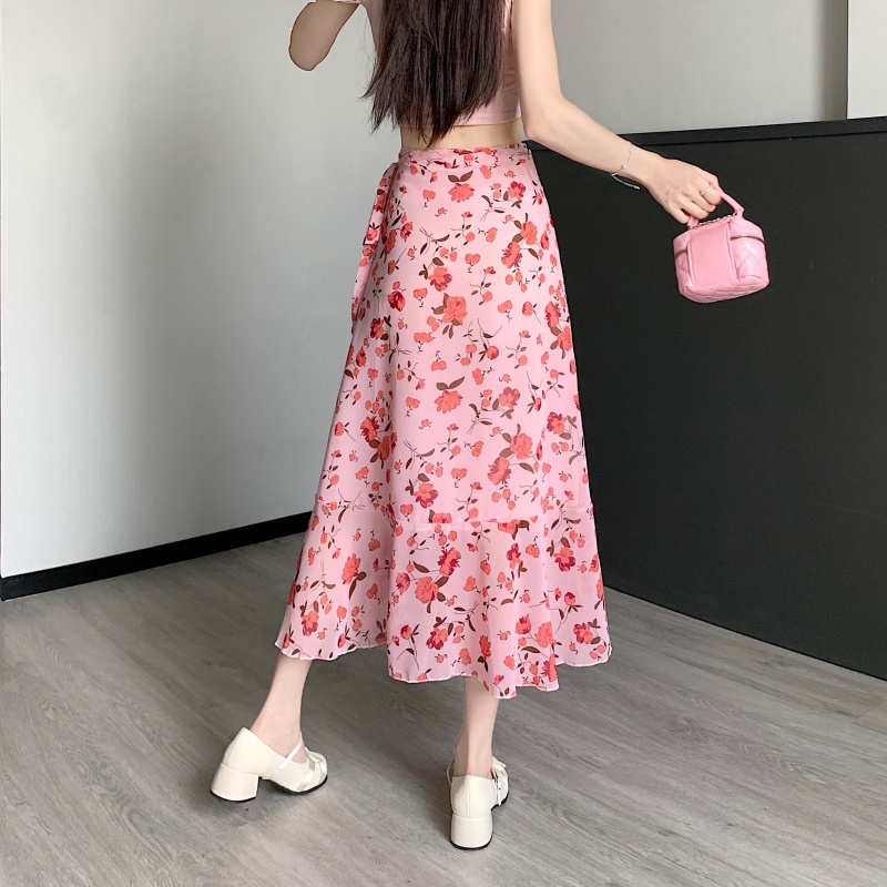 RY108# 实拍甜美温柔风碎花雪纺半身裙一片式荷叶边围裙包臀沙滩裙