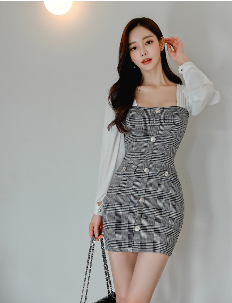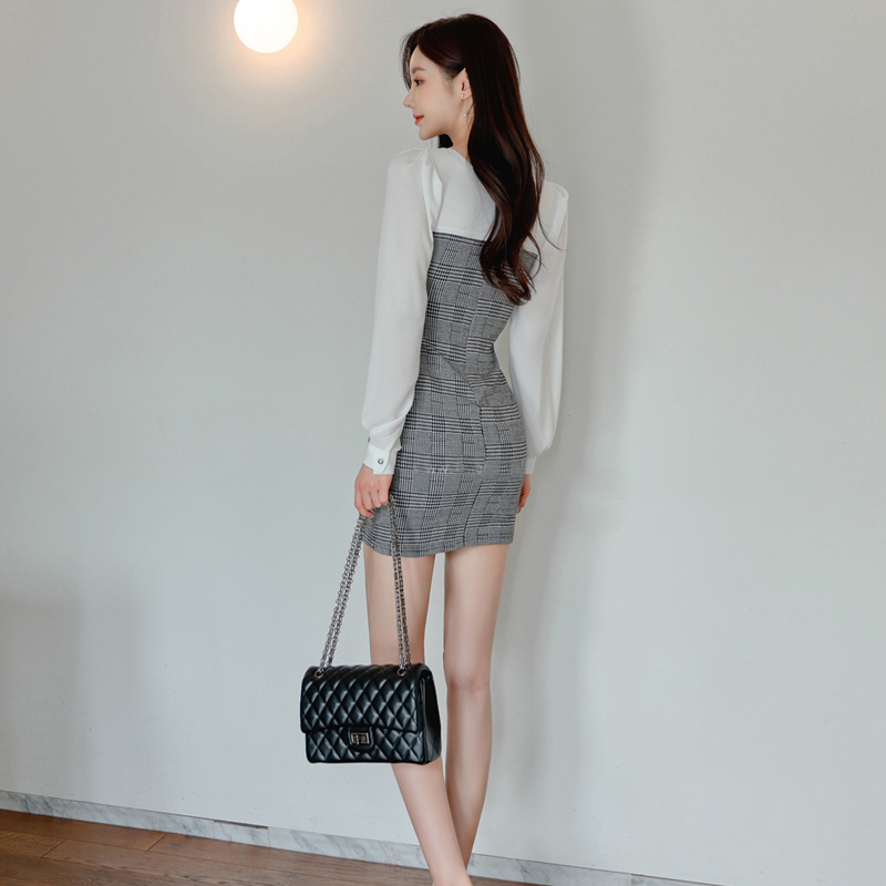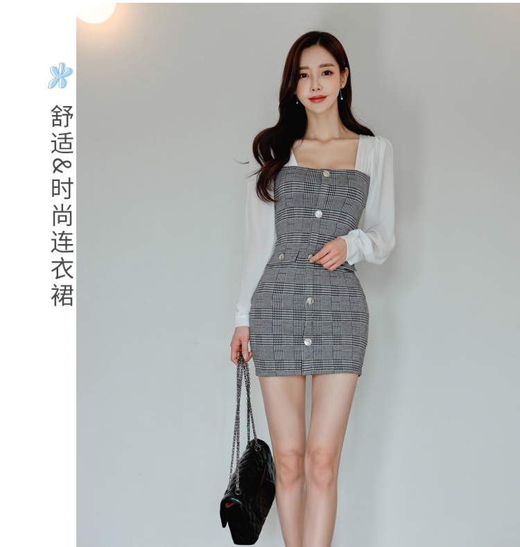 RY117# 2026春秋冬新款韩版时尚气质优雅显瘦性感长袖方领淑女修身连衣裙