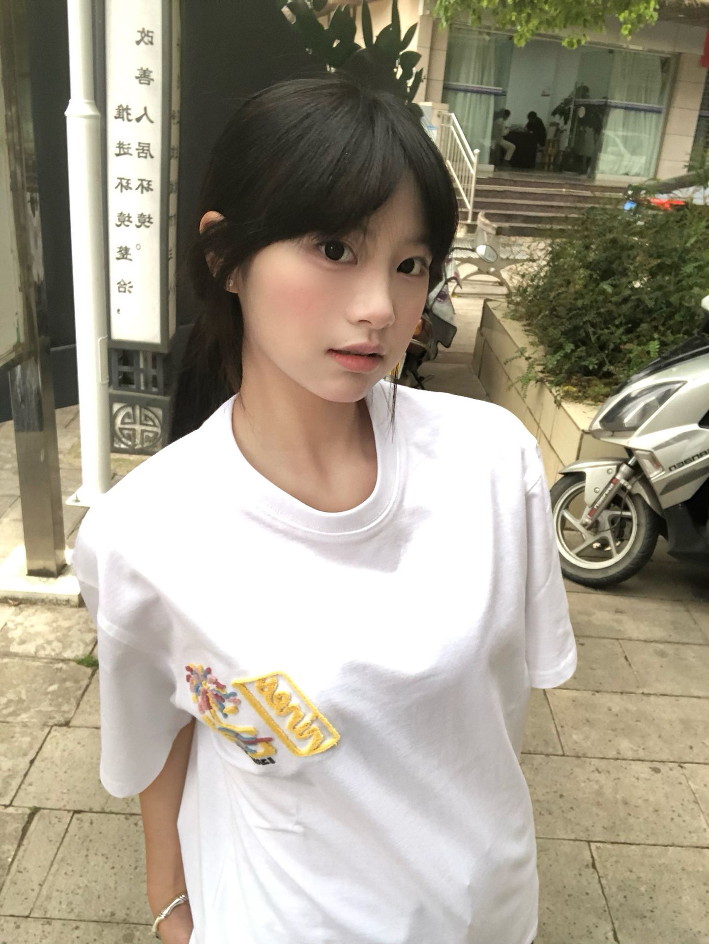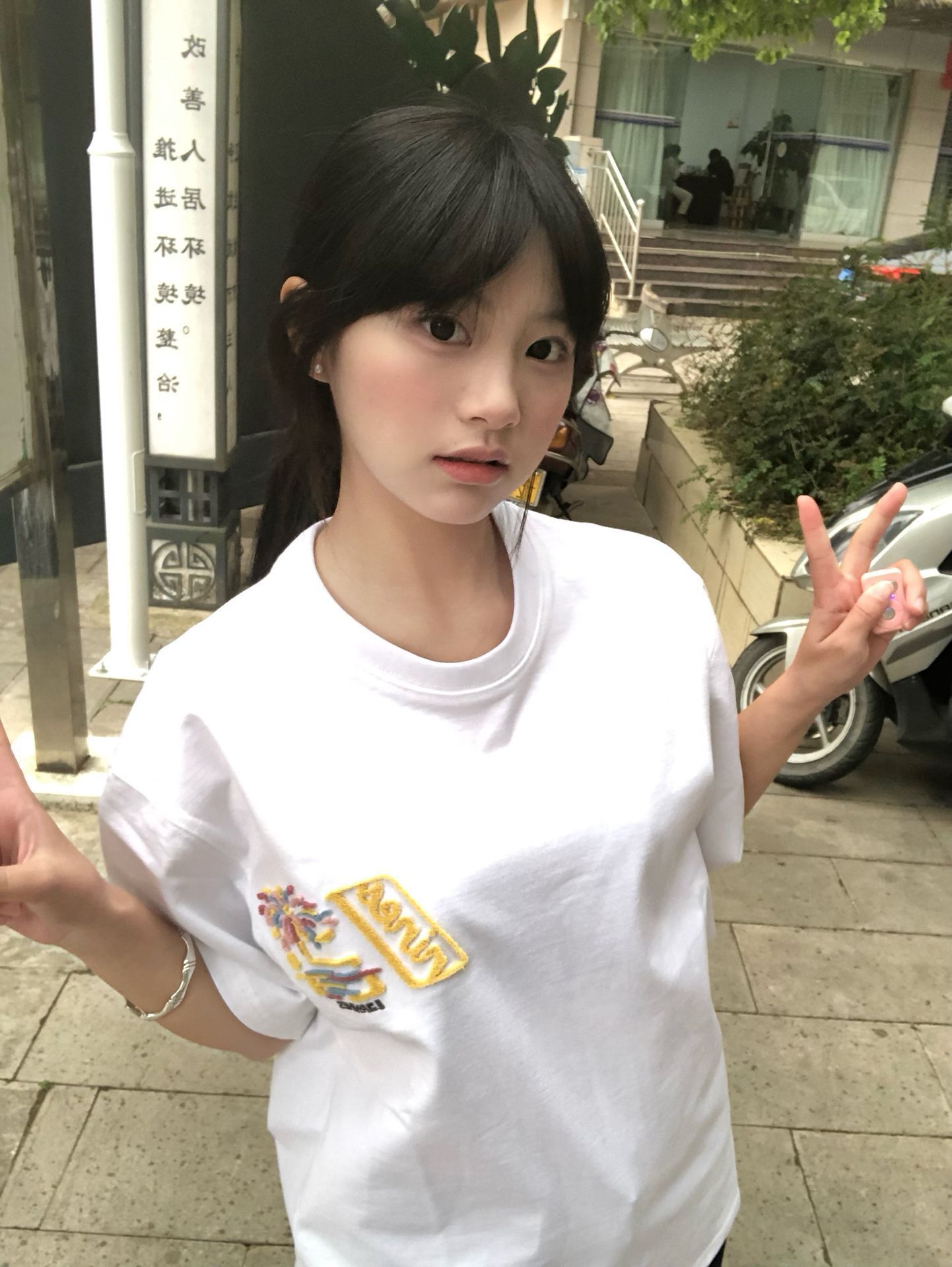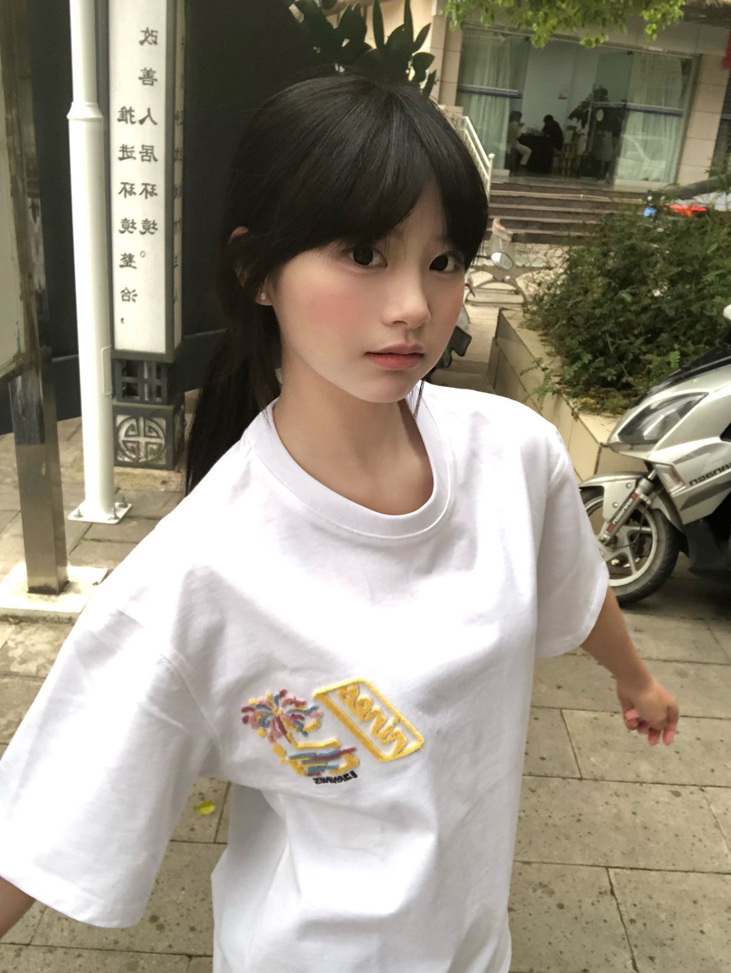 RY123# 纯棉原版刺绣品质升级2026夏季爆款设计烟花字母白色短袖T恤