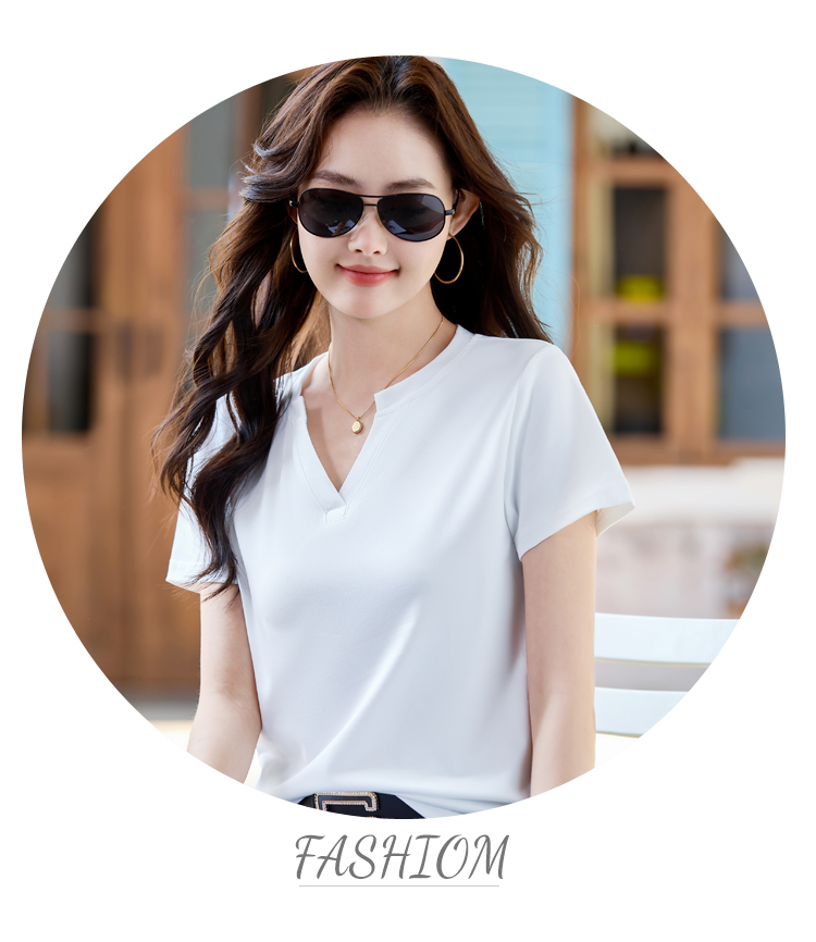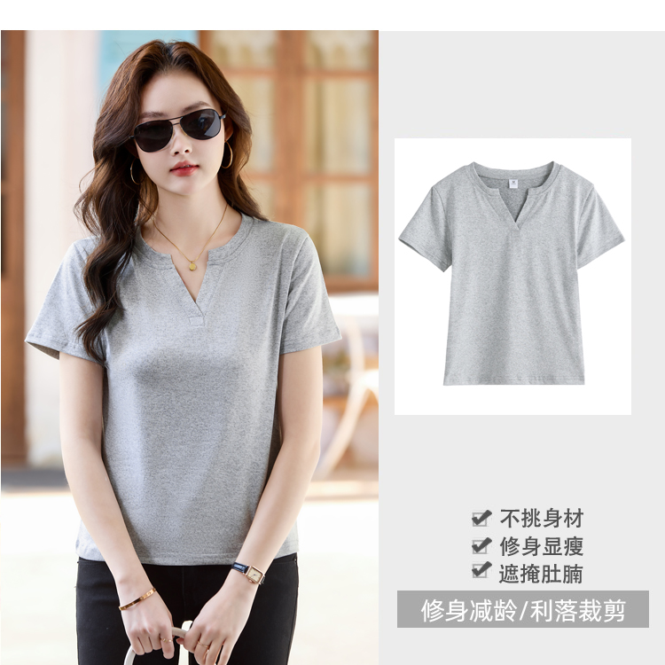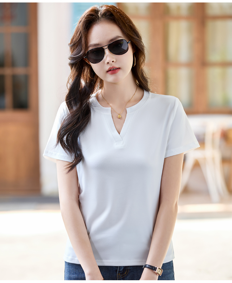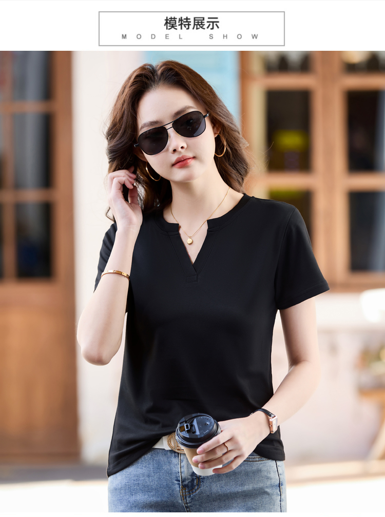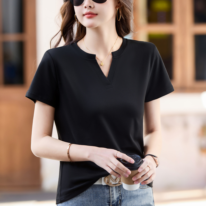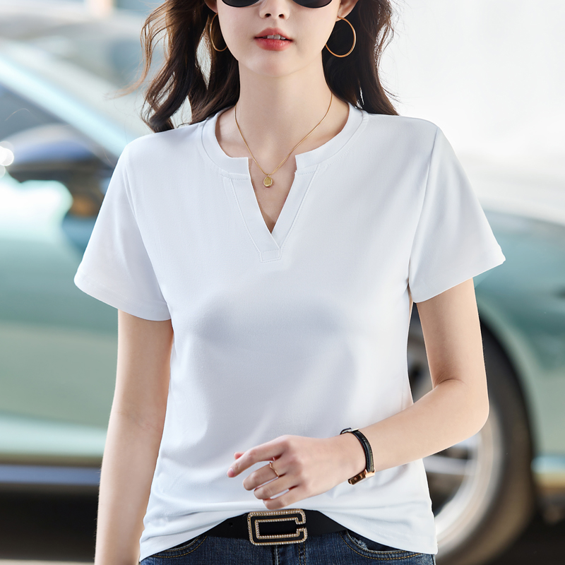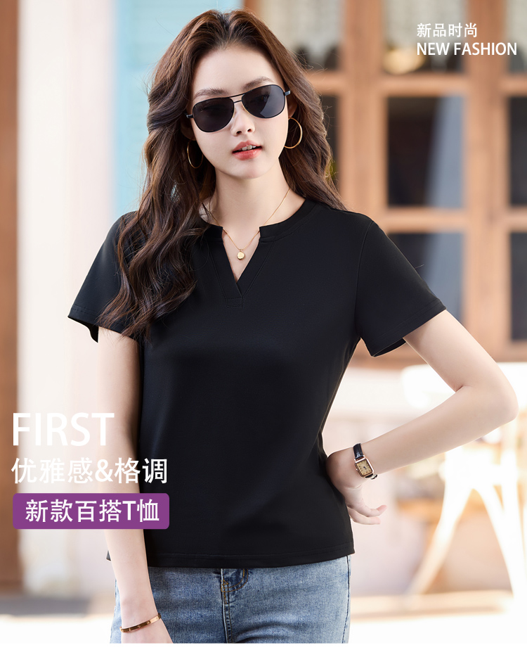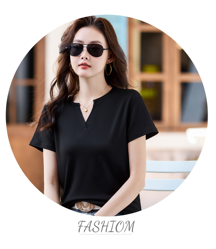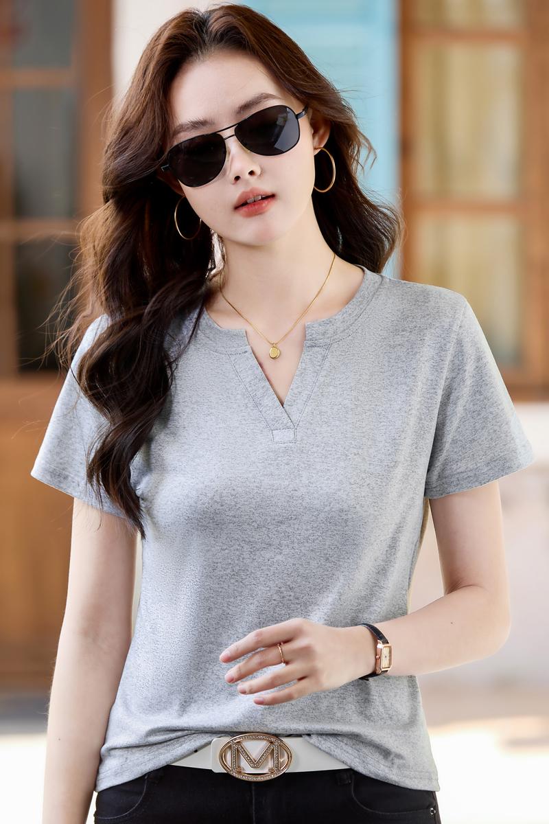 RY160# 夏季纯色简约百搭短袖t恤女V领显瘦上衣女气质韩版网红打底衫体恤