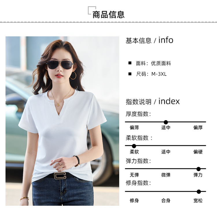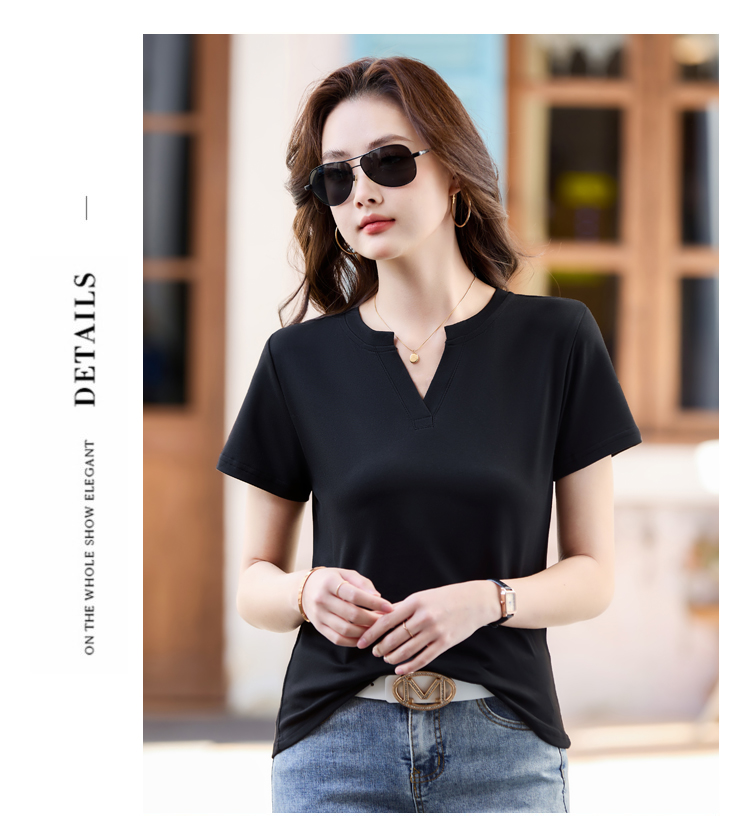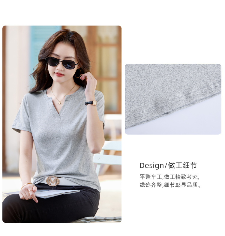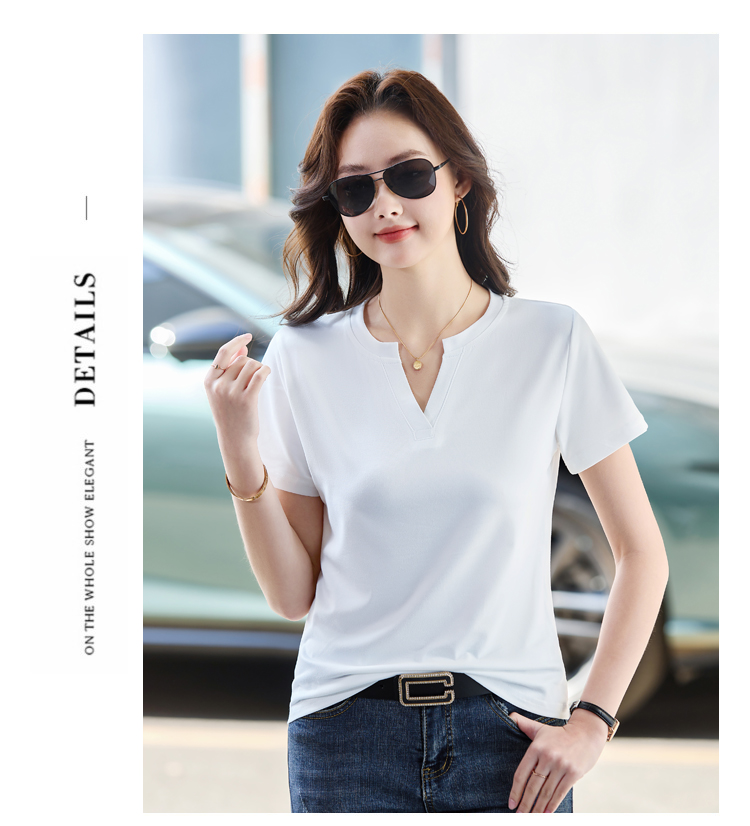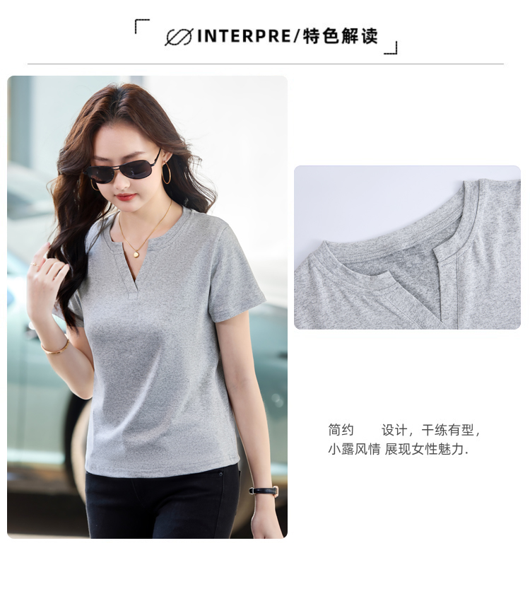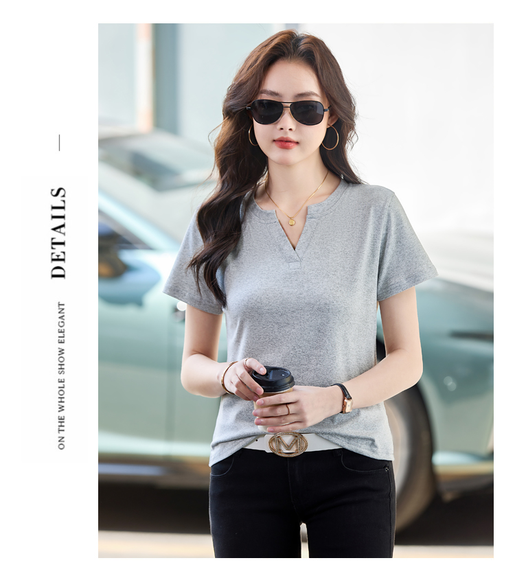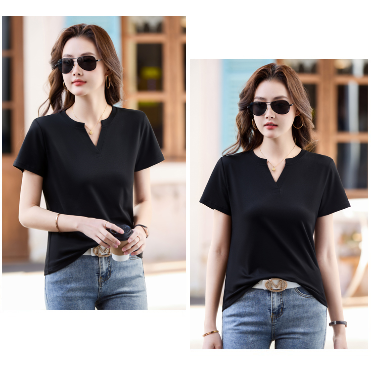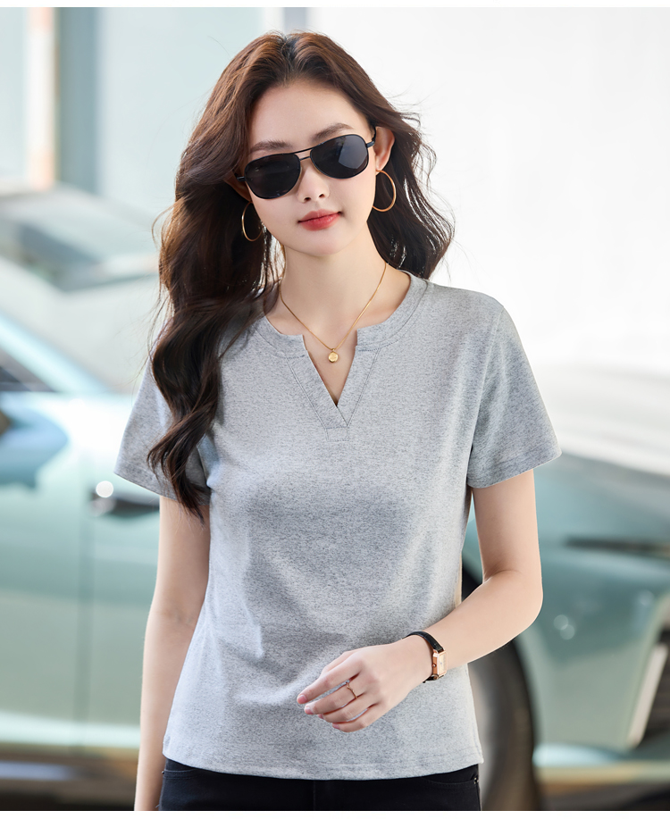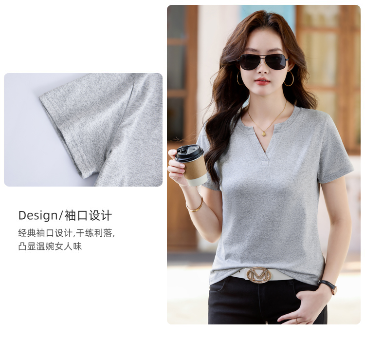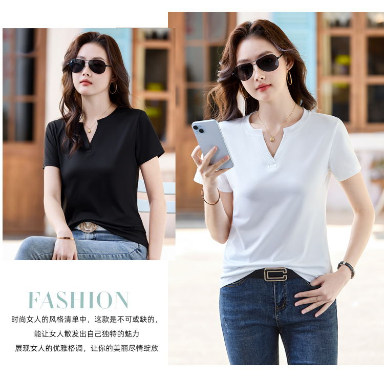 RY160# 夏季纯色简约百搭短袖t恤女V领显瘦上衣女气质韩版网红打底衫体恤