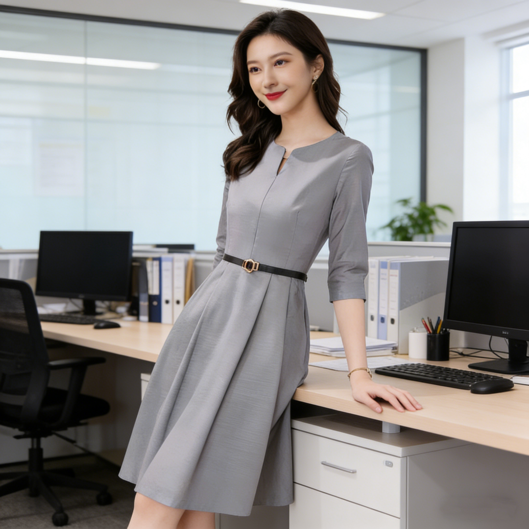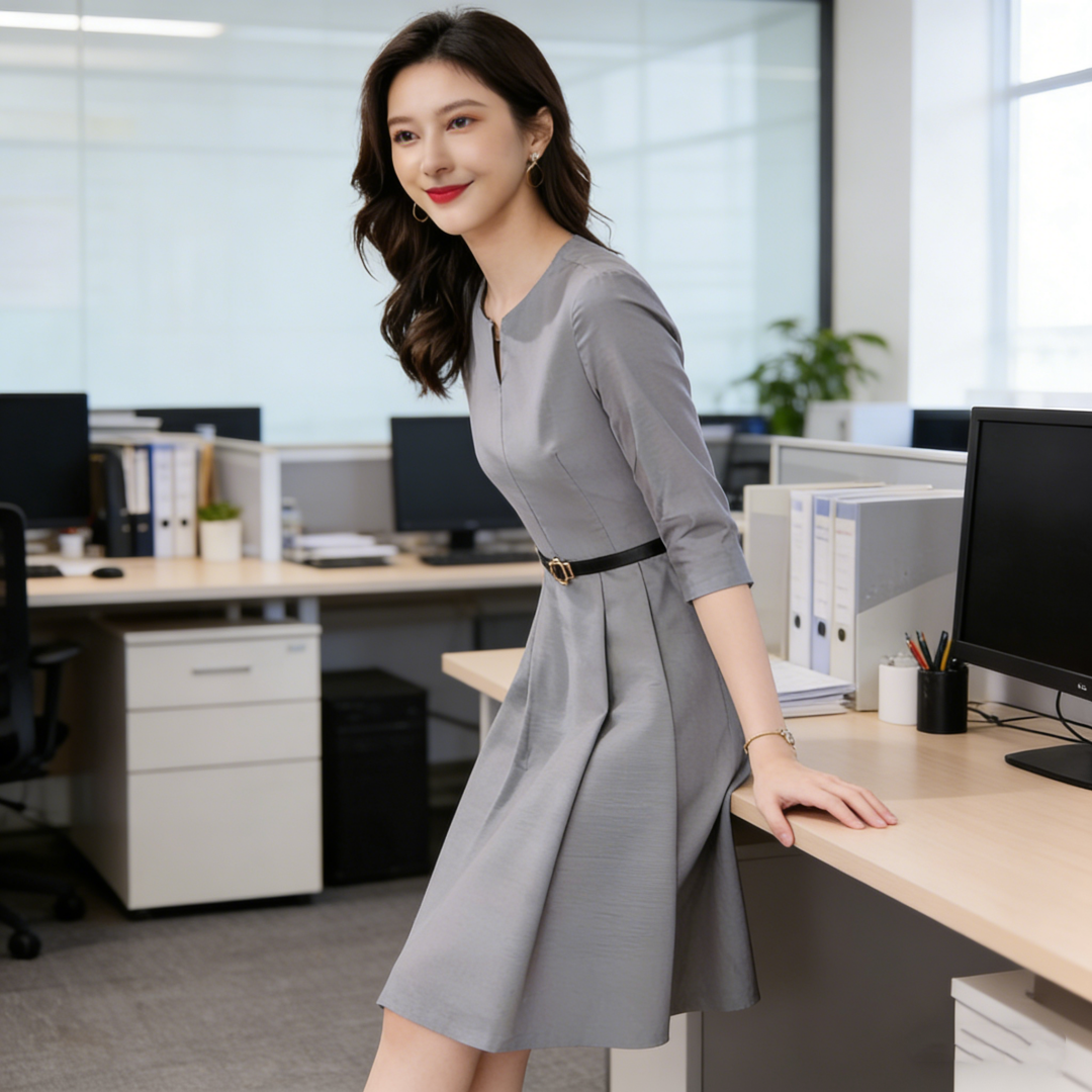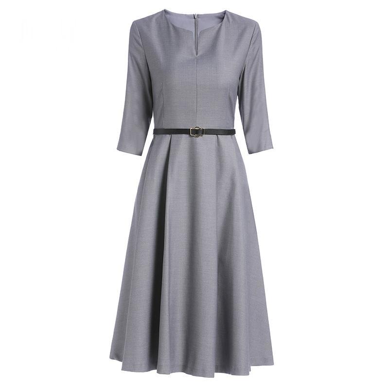 RY424# 赫本风连衣裙女七分袖2026春夏新款气质名媛收腰显瘦中长款桔梗裙