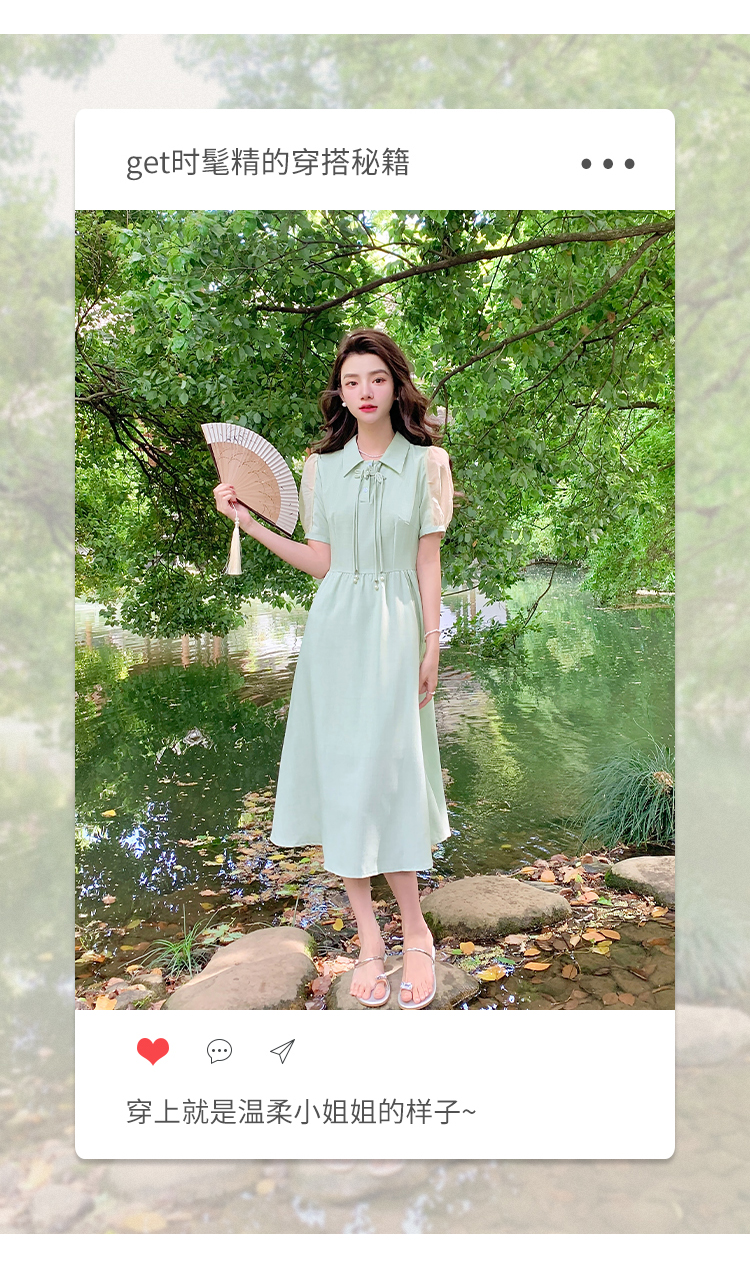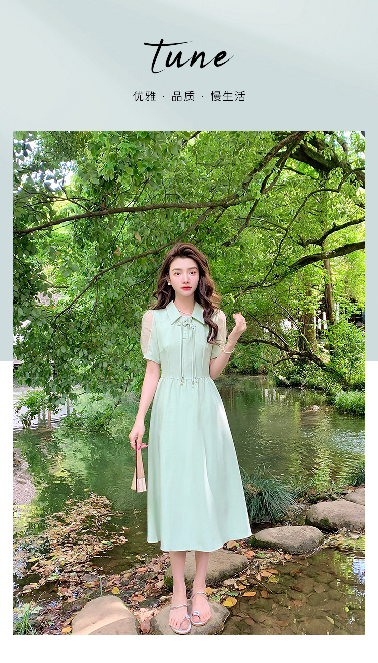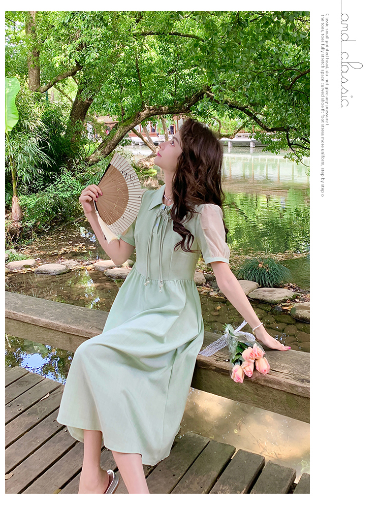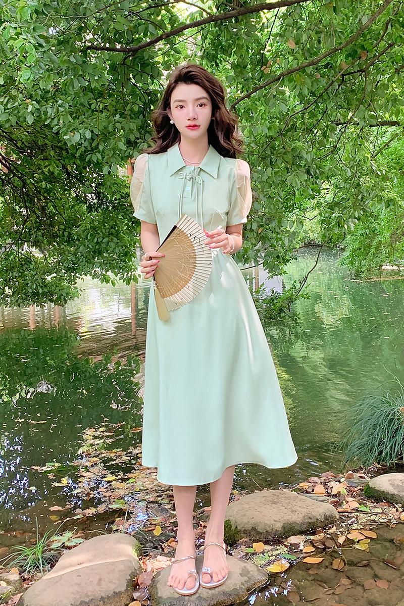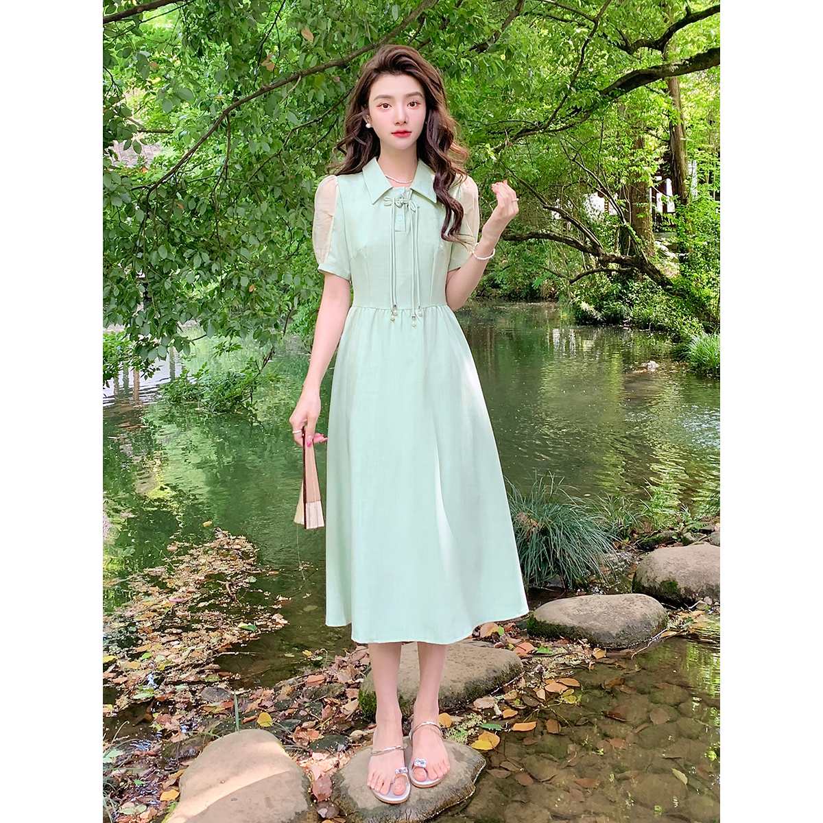 RY459# 实拍茶歇法式显瘦连衣裙夏新款新中式高级感收腰温柔长裙女装