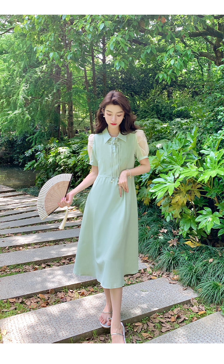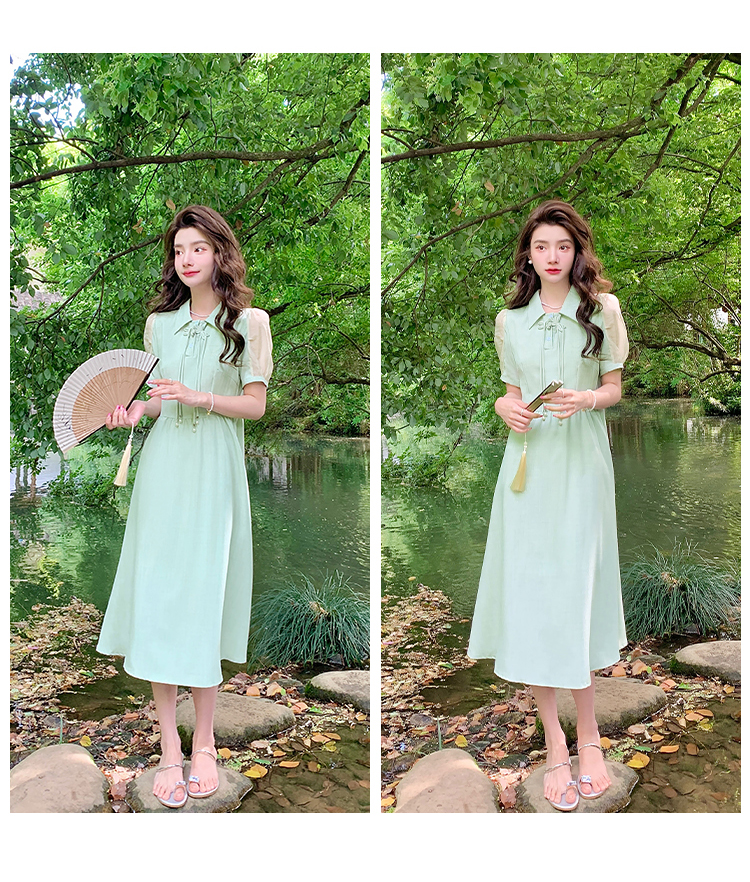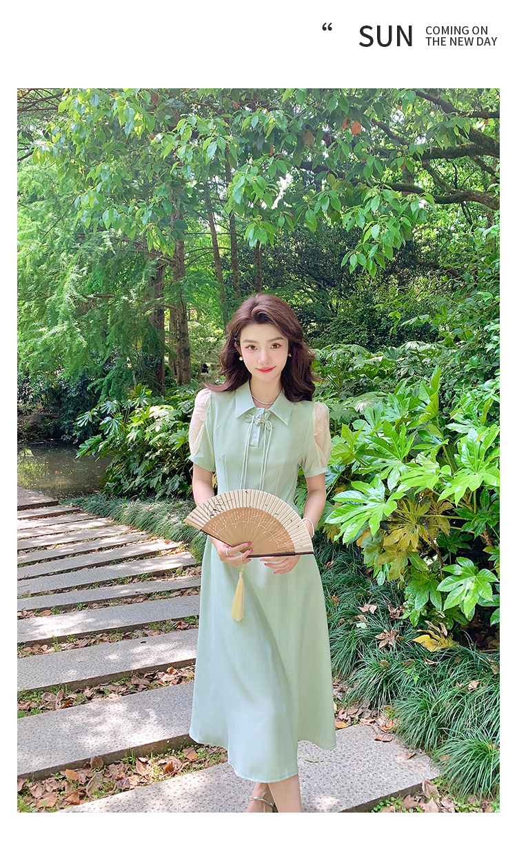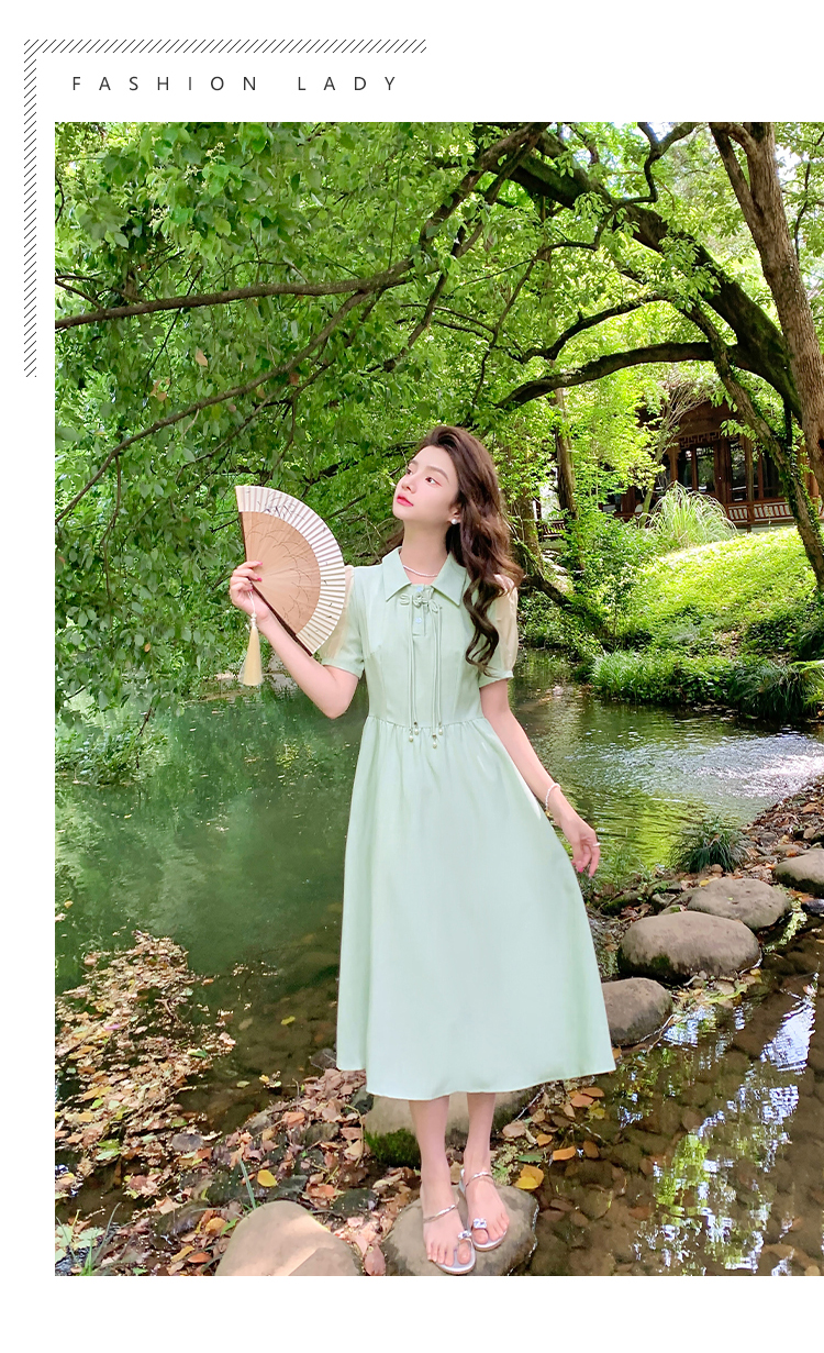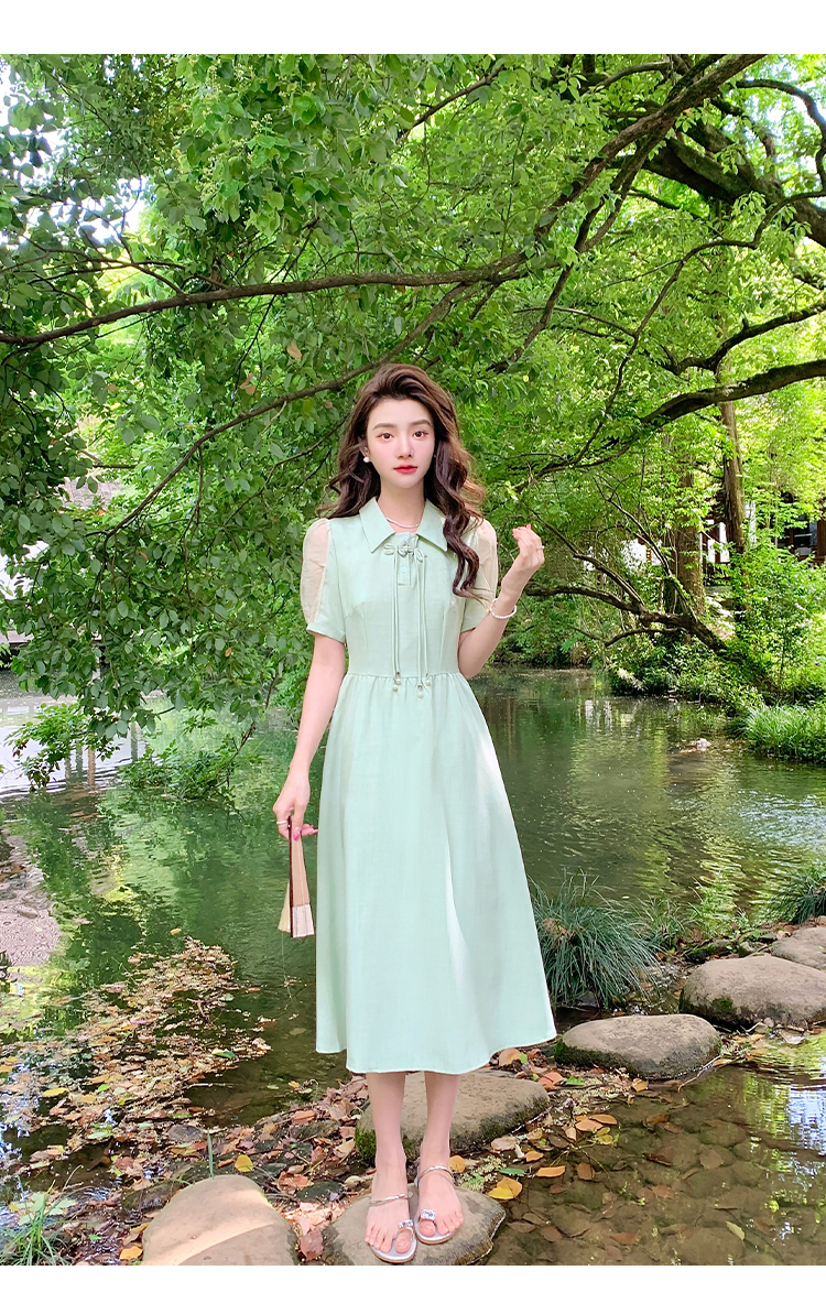RY459# 实拍茶歇法式显瘦连衣裙夏新款新中式高级感收腰温柔长裙女装