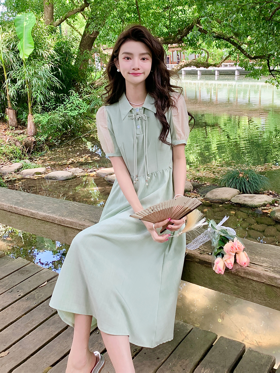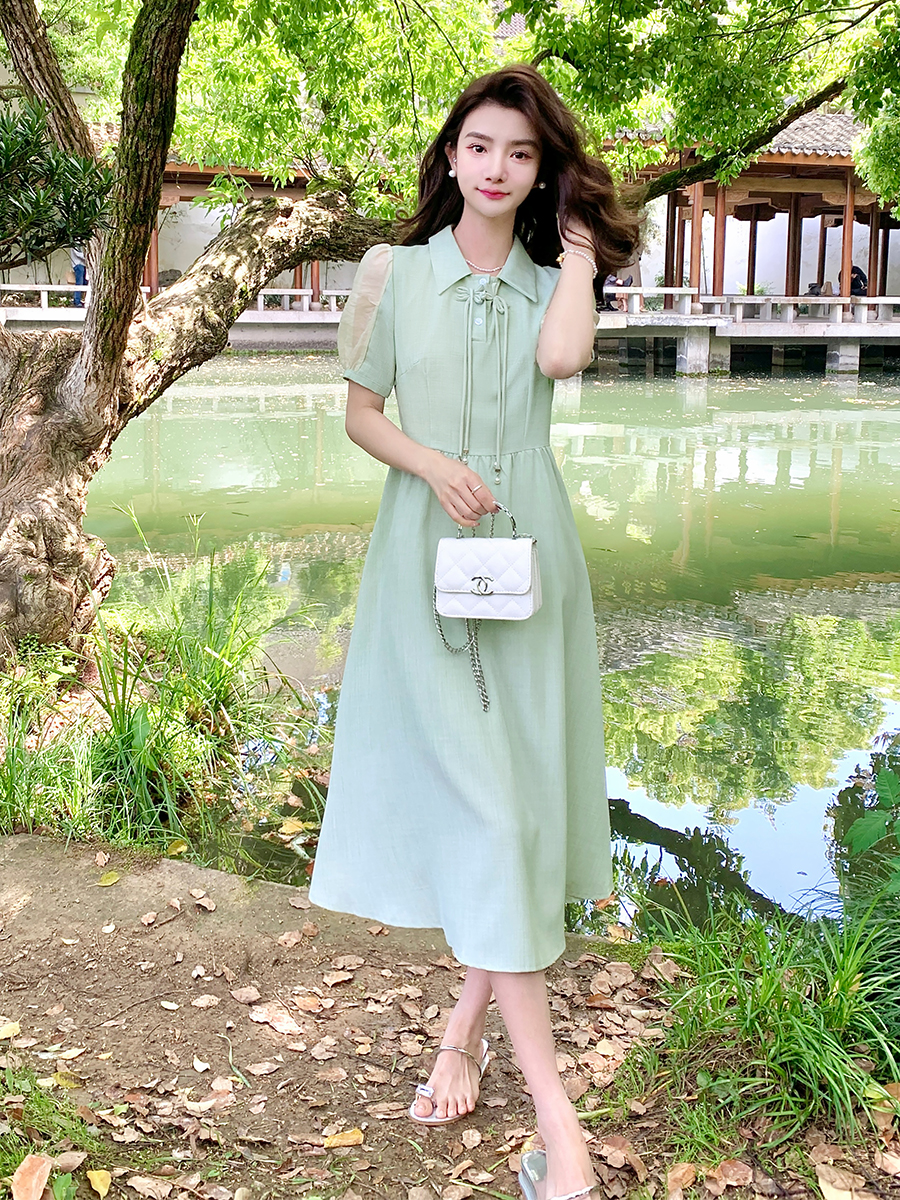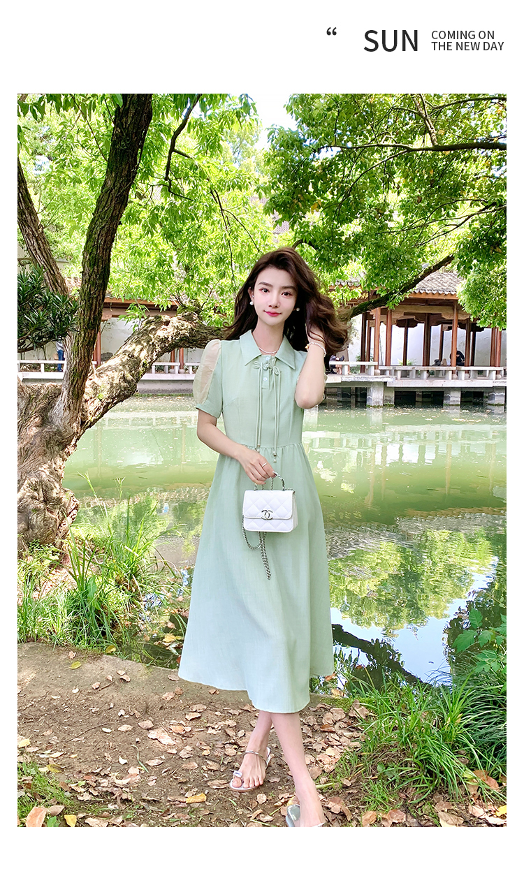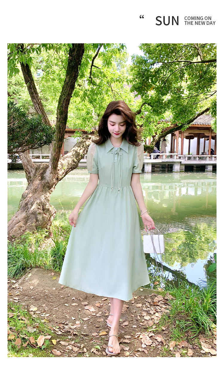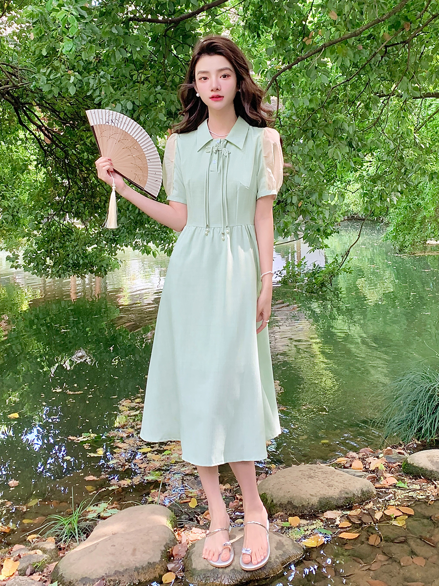 RY459# 实拍茶歇法式显瘦连衣裙夏新款新中式高级感收腰温柔长裙女装