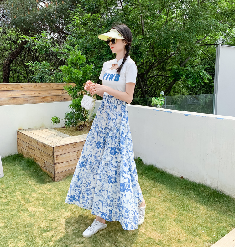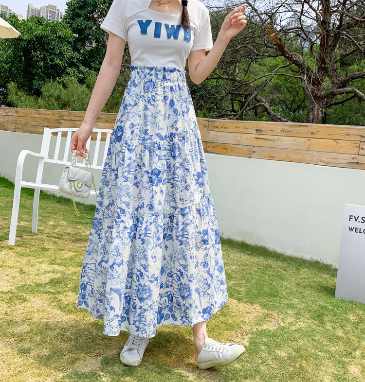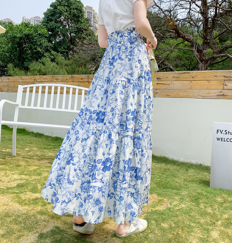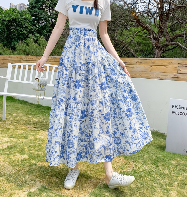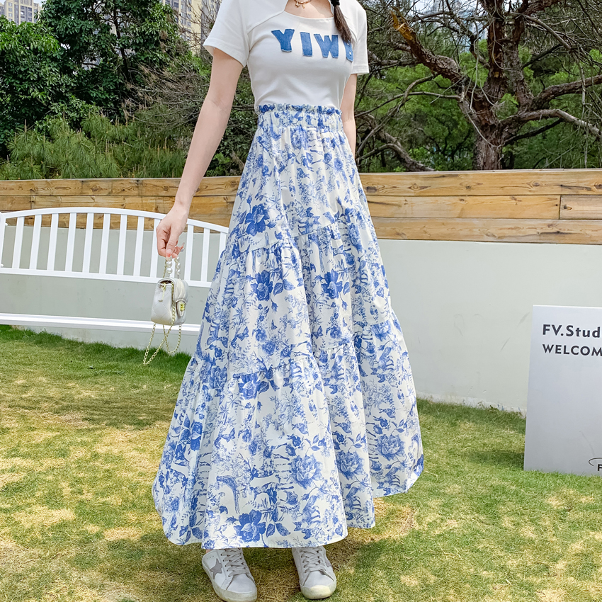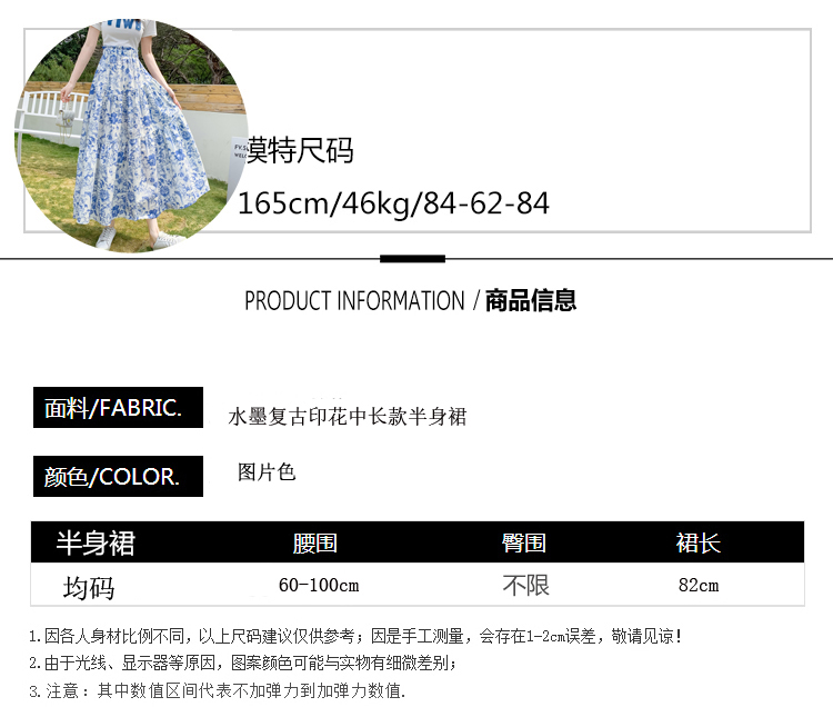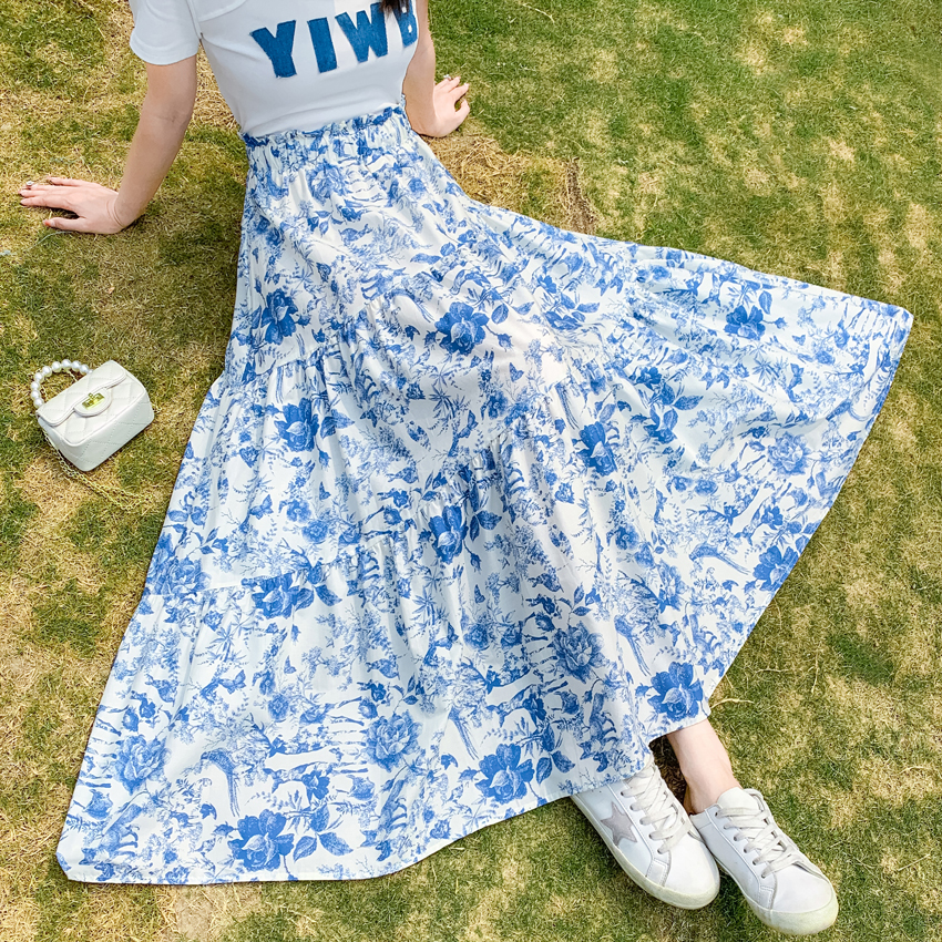 RY476# 小众设计款2026春夏新款水墨印花大高腰显瘦遮跨中长款半身裙
