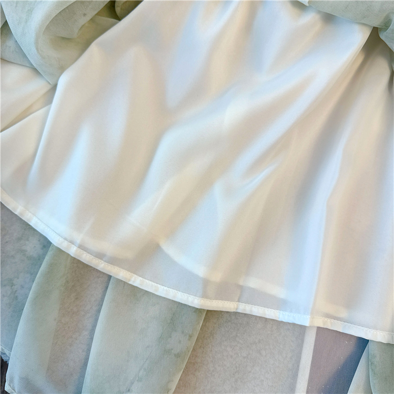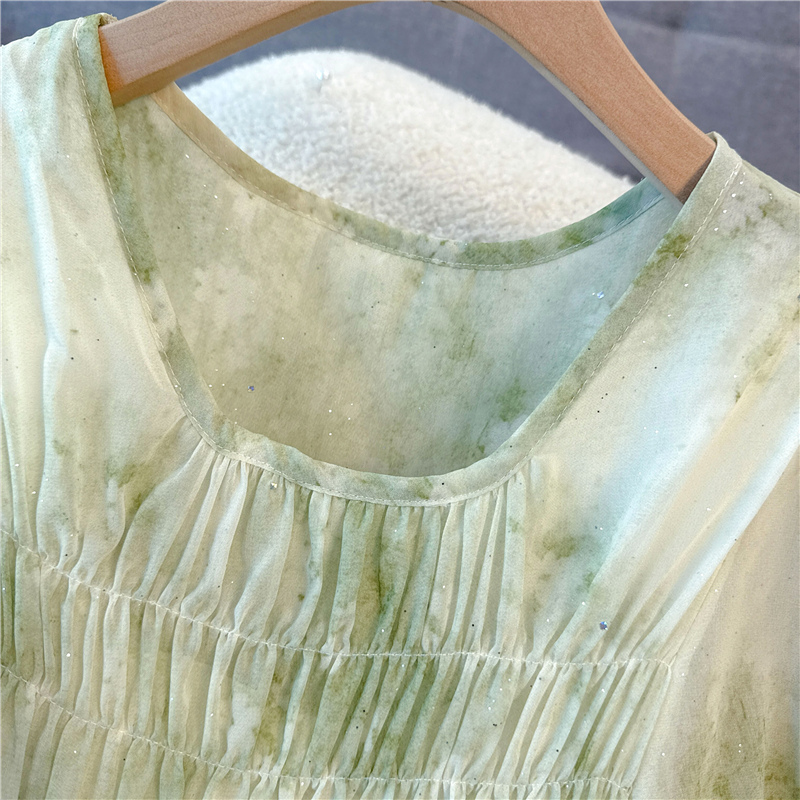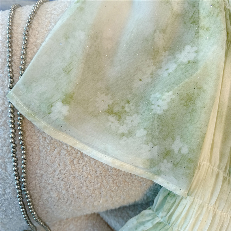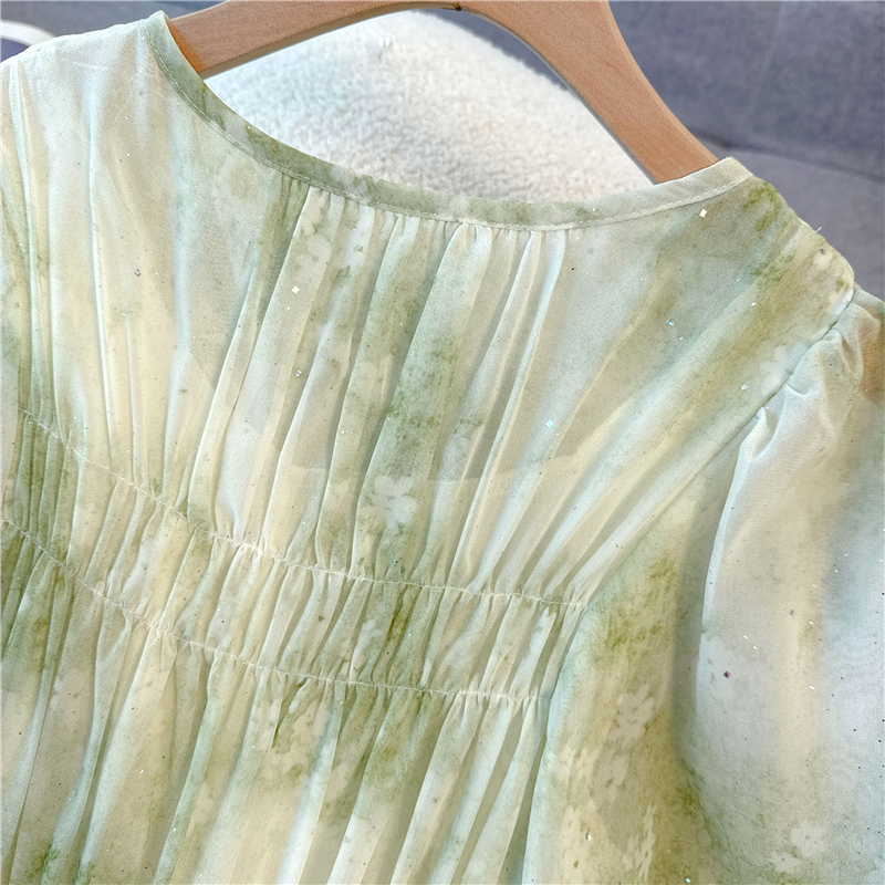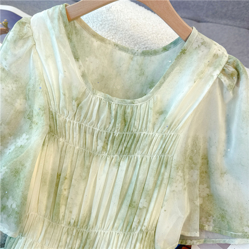 RY484# 实拍~小清新绿色烫金大码胖mm100-220斤显白高腰显瘦中长款连衣裙
