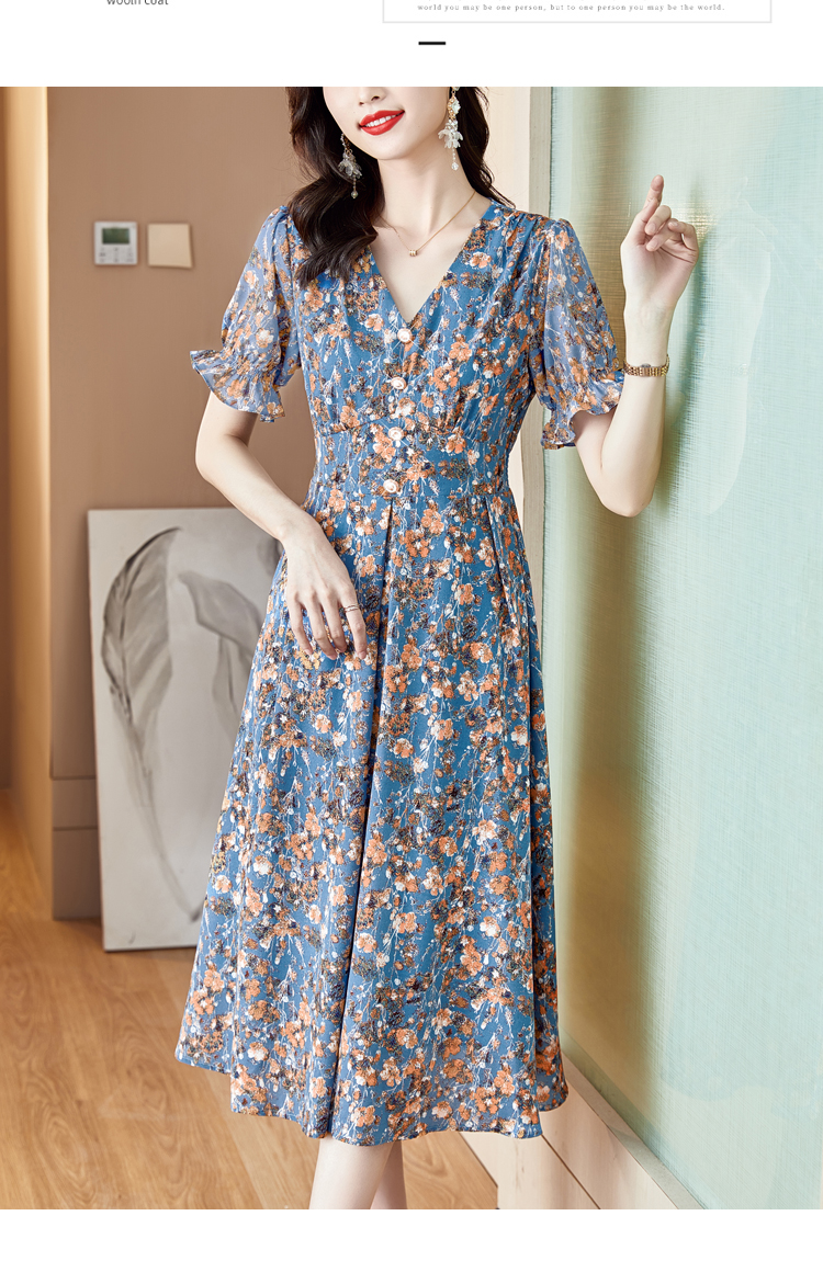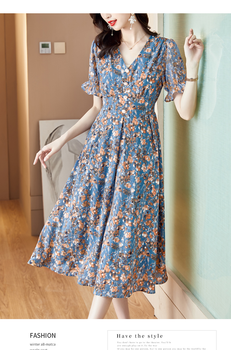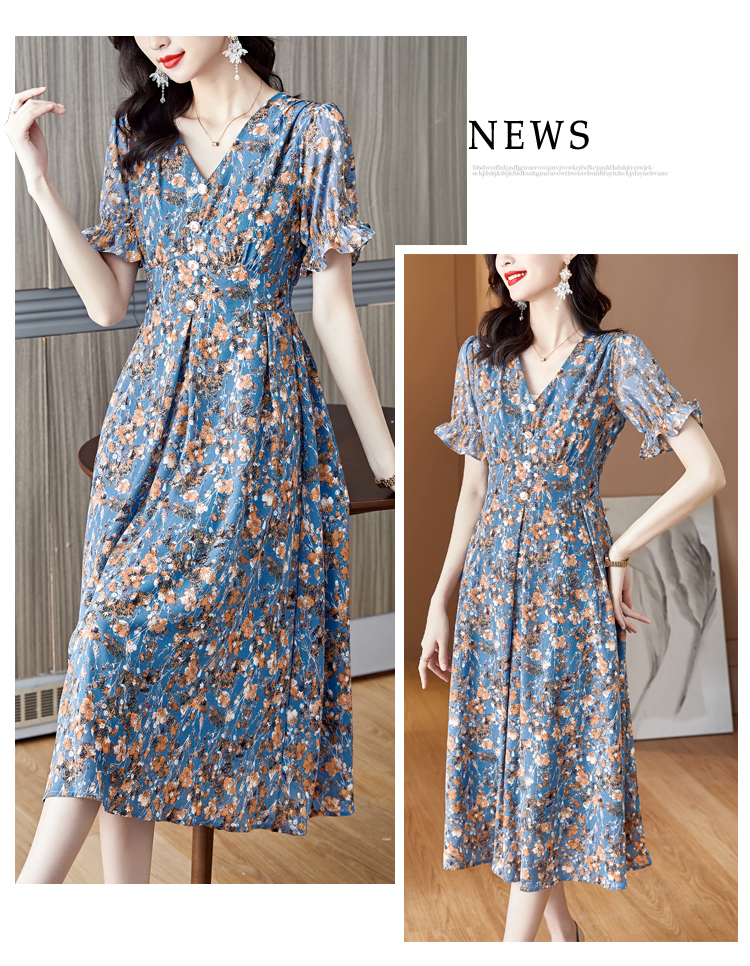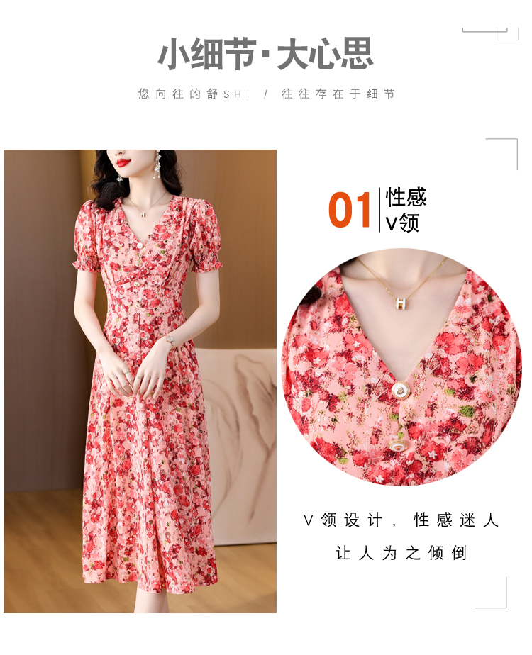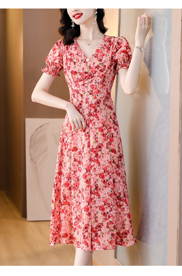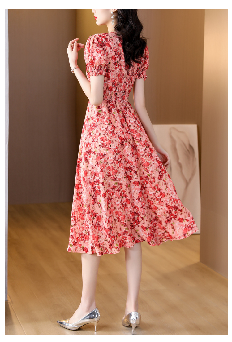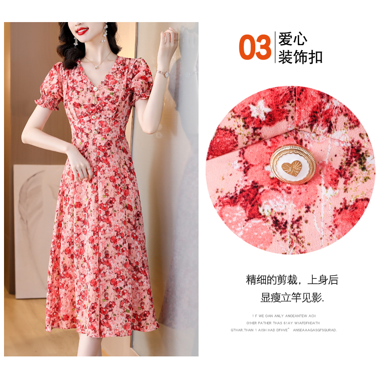 RY490# 碎花雪纺法式连衣裙女夏2026年夏季新款女装名媛气质收腰长裙裙子